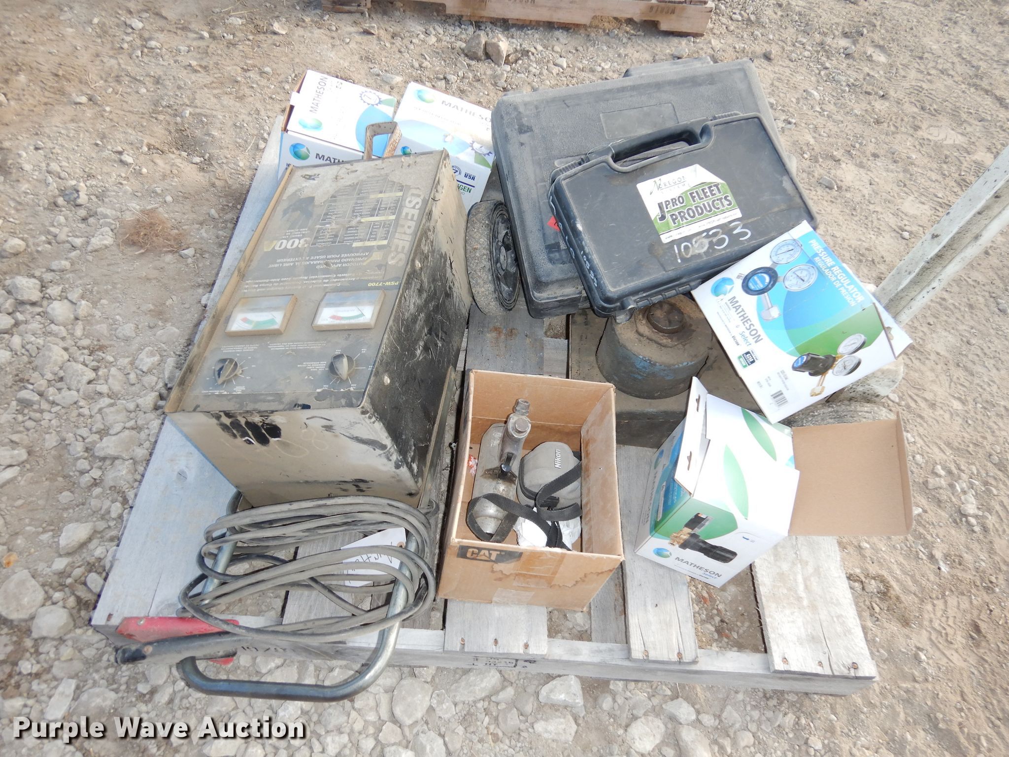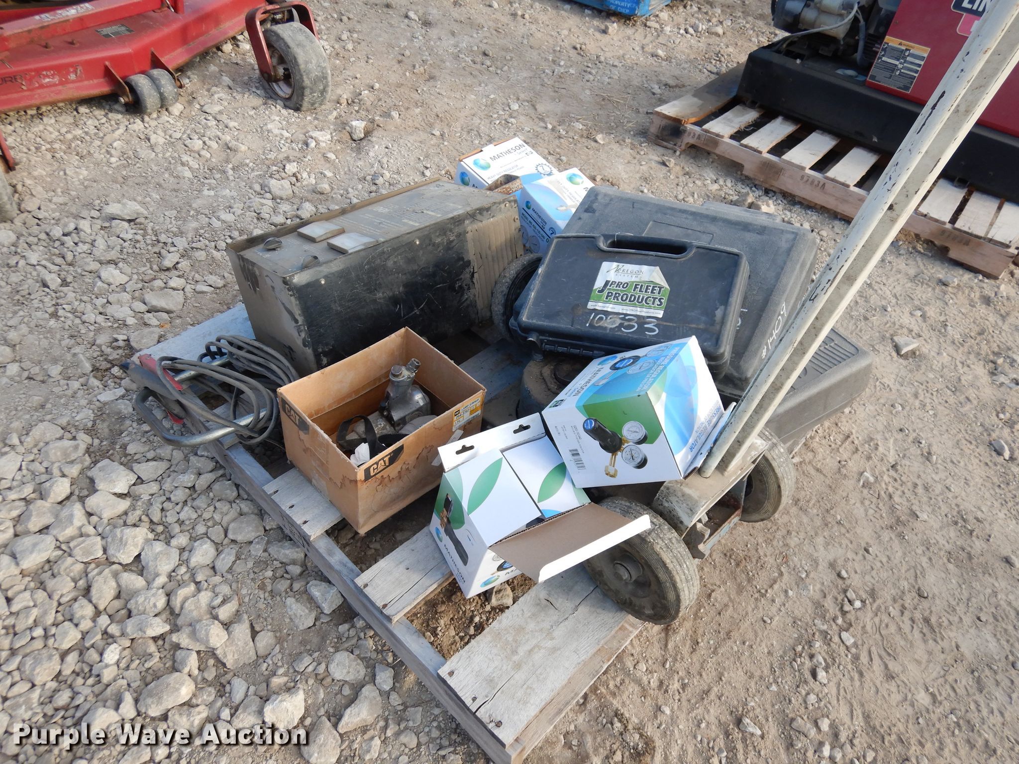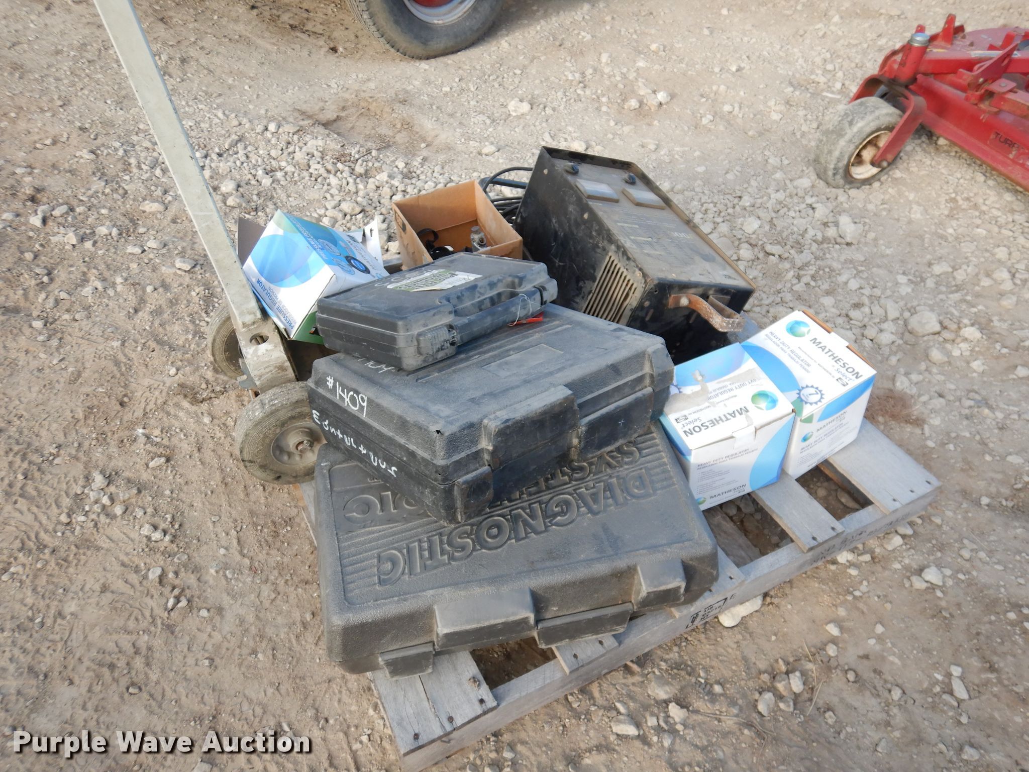Purple Wave is selling a used Tools in Kansas. This item is a Tools with the following: Master Tech, Diagnostic, Regulators, Air jack, Battery charger, Lincoln Ranger 10000 welder, 1,619 hours on meter, Kohler gas engine, Non-operational engine, Non-operational units