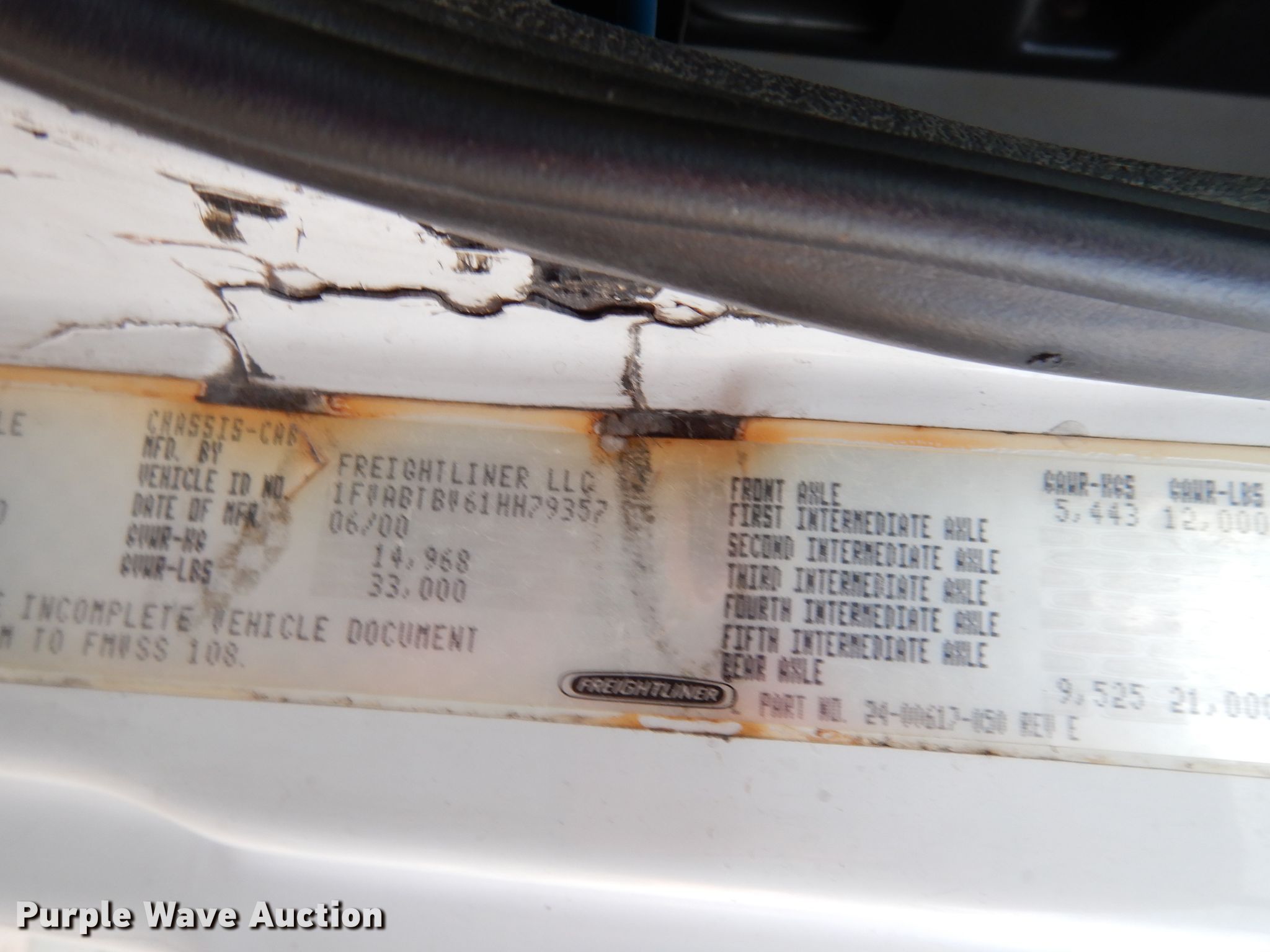 2001 Freightliner FL70 water truck. Unknown miles on odometer. Engine Cummins ISB, Displacement: 5.9L, Cylinders: 6, Fuel type: Diesel, HP: 240. Transmission Manual, Speed: 6. Chassis Axles: Single, Suspension: Spring, Brakes: Air, GVWR: 33,000 lbs FAWR: 12,000 lbs, RAWR: 21,000 lbs, Wheelbase: 188". Interior AC, Heat, Heated mirrors, Cruise control. Operational Bed / tank 2000 Amthor, Capacity: 2,200 gallons, Top fill, Rear drain. Tires Size: 11R22.5, Brand: Bridgestone. Notes Electrical issues, Dead batteries, Master switch issues, Unit must be towed or hauled, Unknown operating condition. Kansas title. Mileage has not been verified. Exempt will be written in the odometer disclosure on the title. 1FVABTBV61HH79357. Pottawatomie County Noxious Weed Department. 405 Campbell St. Westmoreland, KS 66549