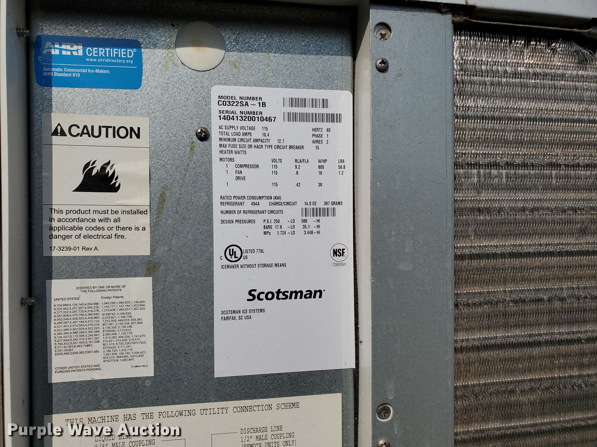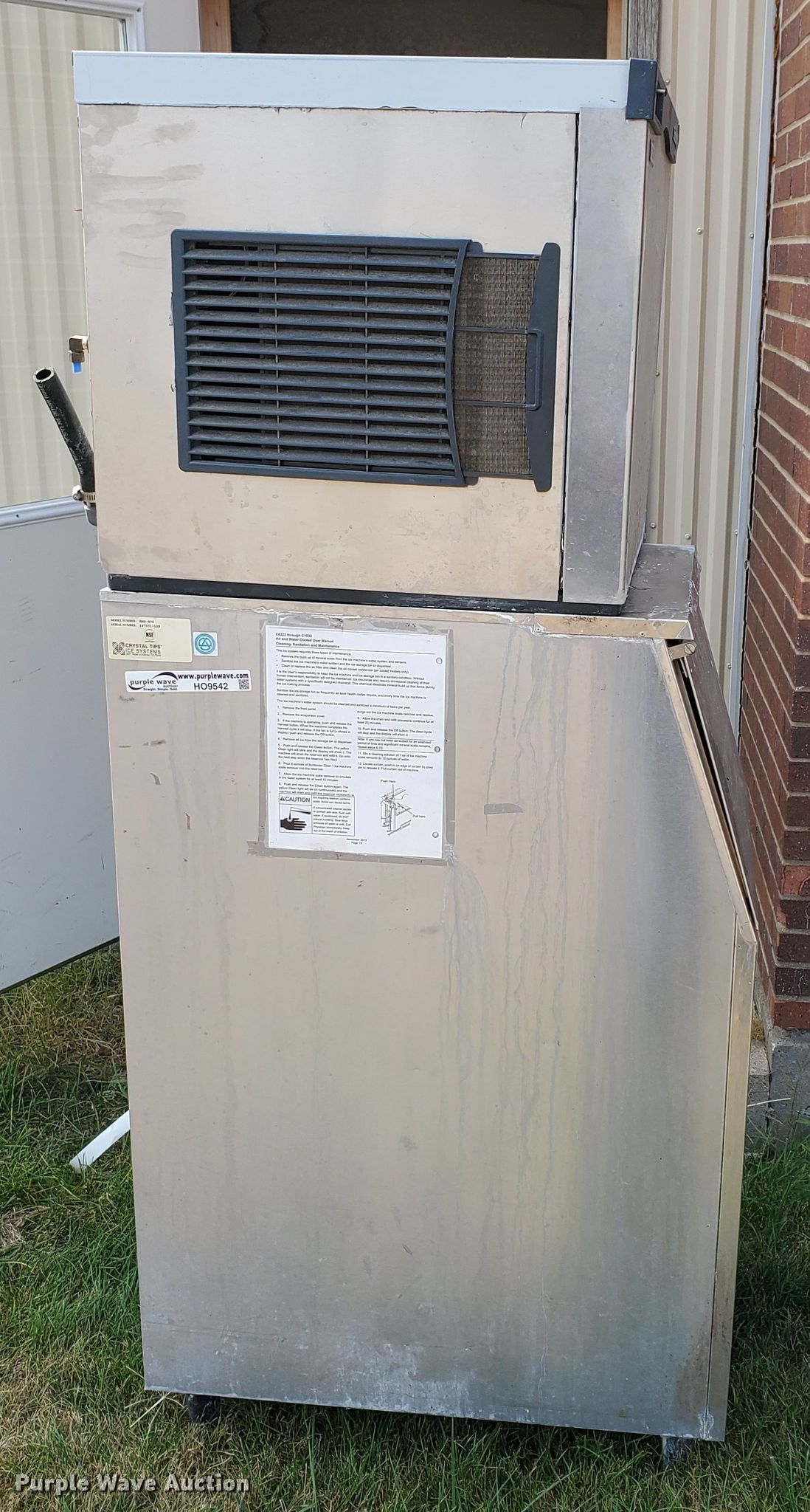 Purple Wave is selling a used Appliances in Kansas. This item is a Scotsman C0322SA-B ice machine with the following: 115V, Water leak