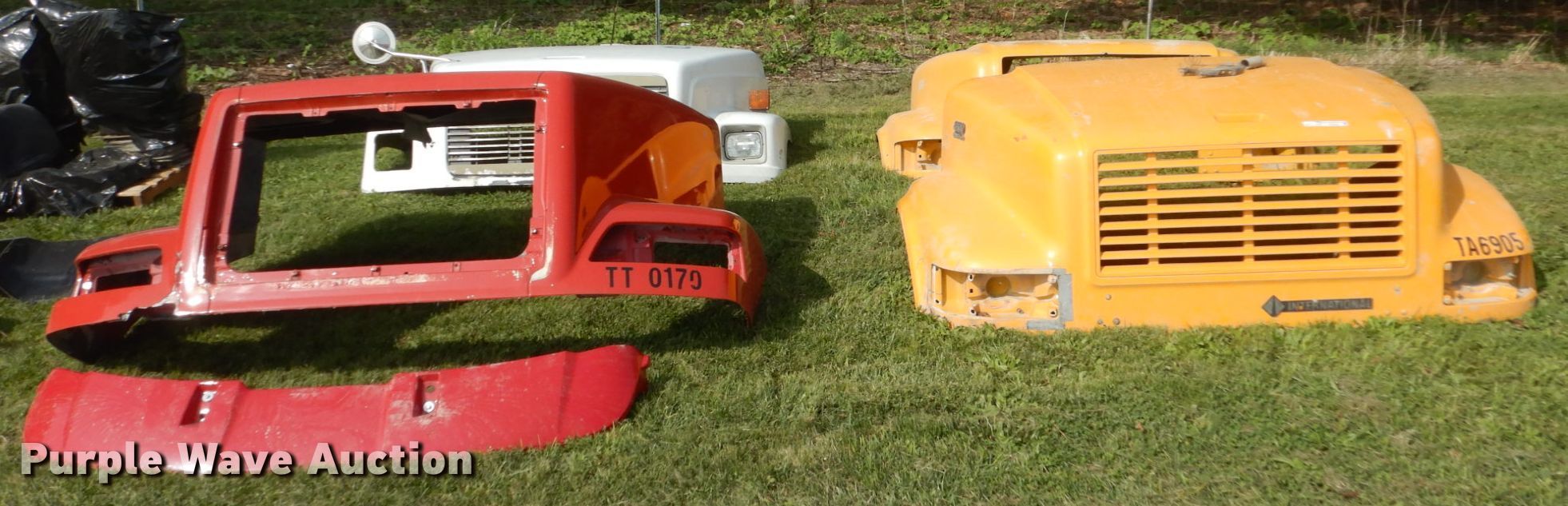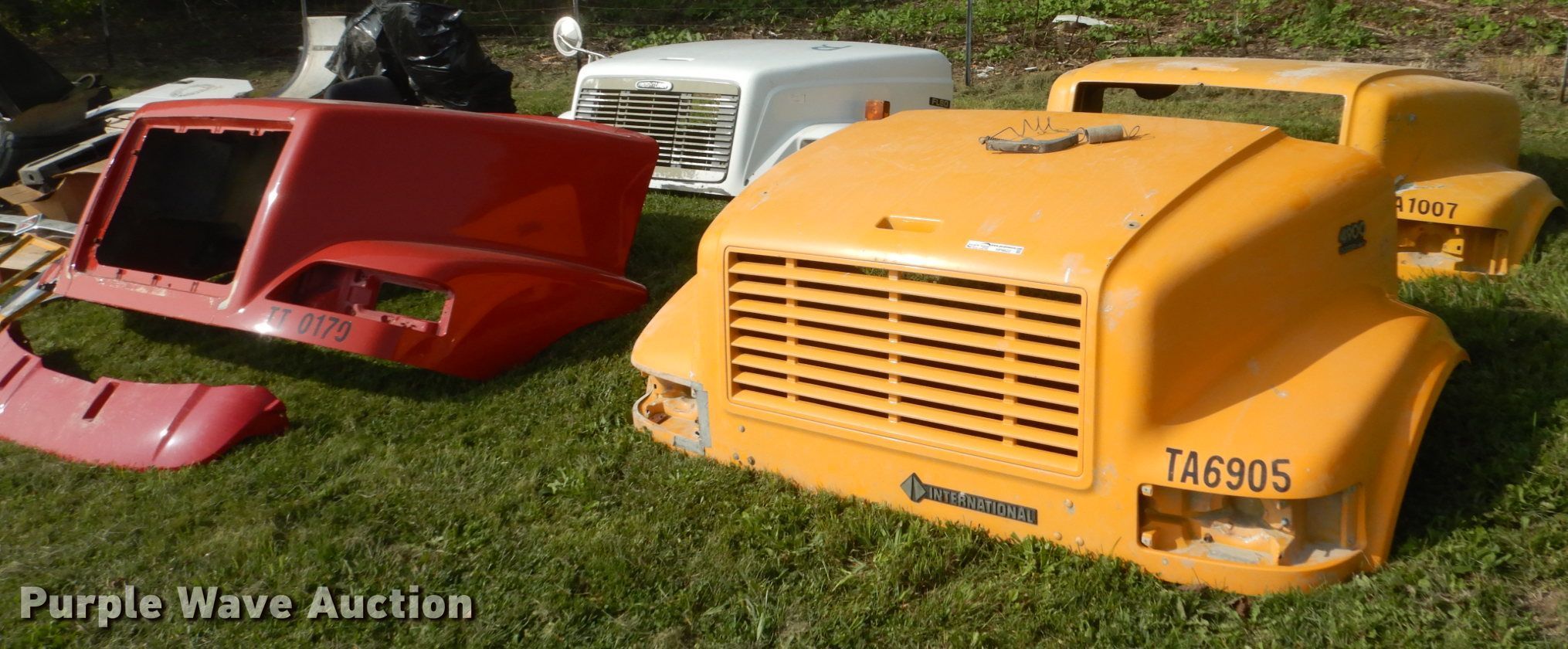 Purple Wave is selling a used Truck Part and Attach. in Iowa. This item is a (4) hoods with the following: (2) International, One model 4900, Volvo, Freightliner FL80