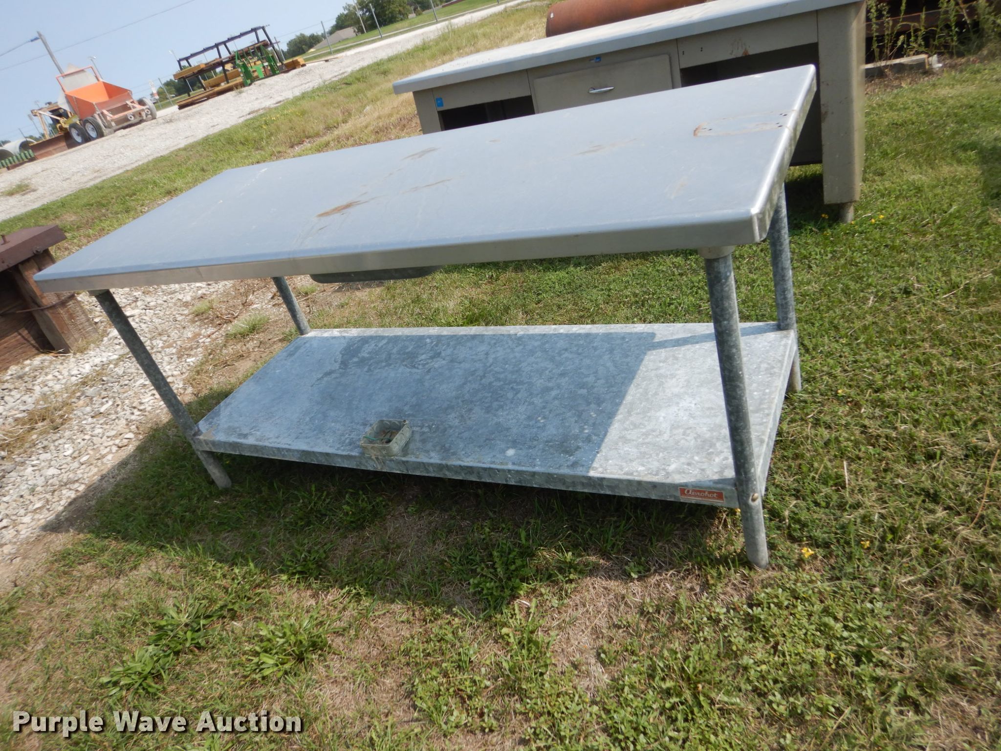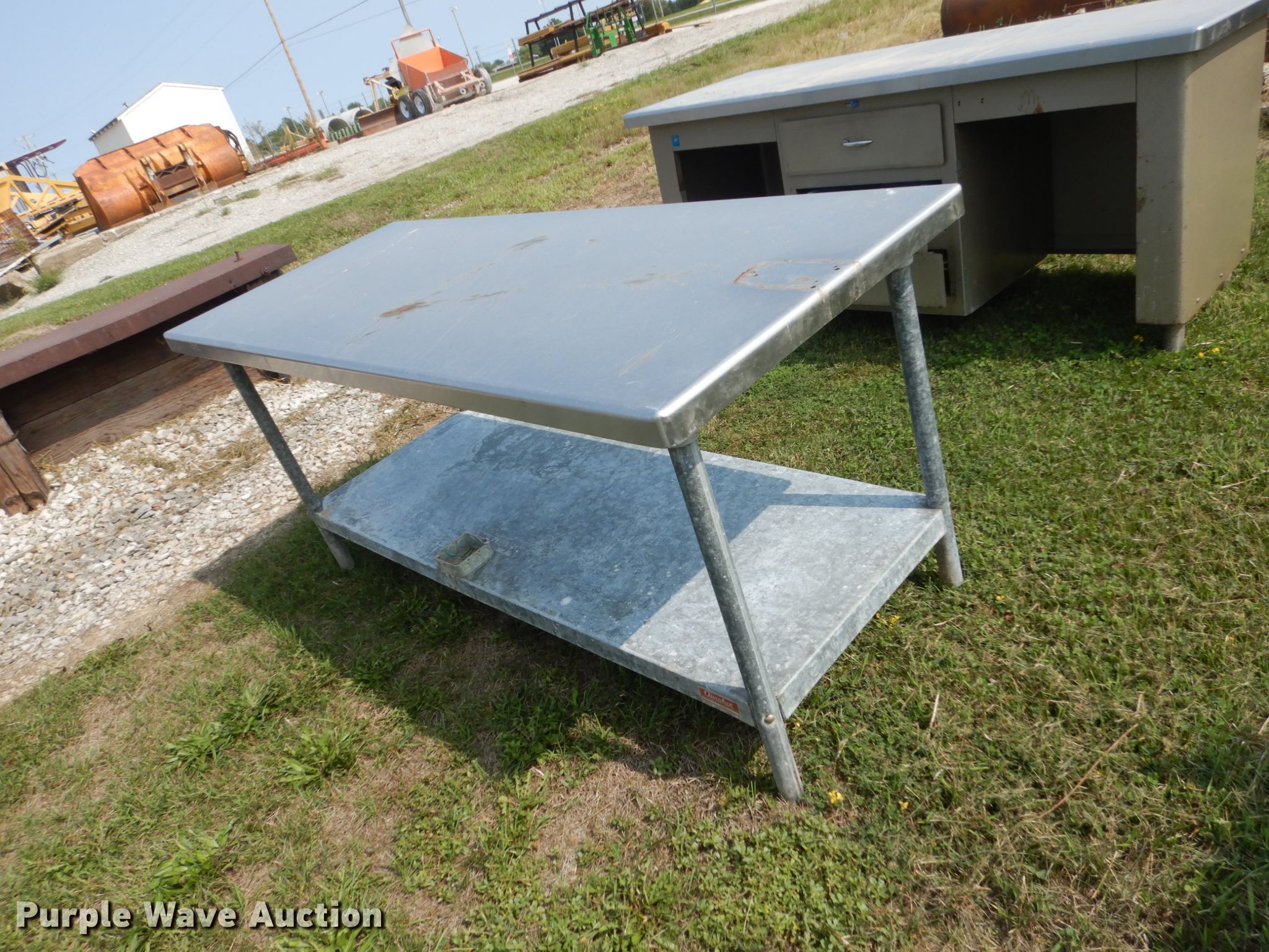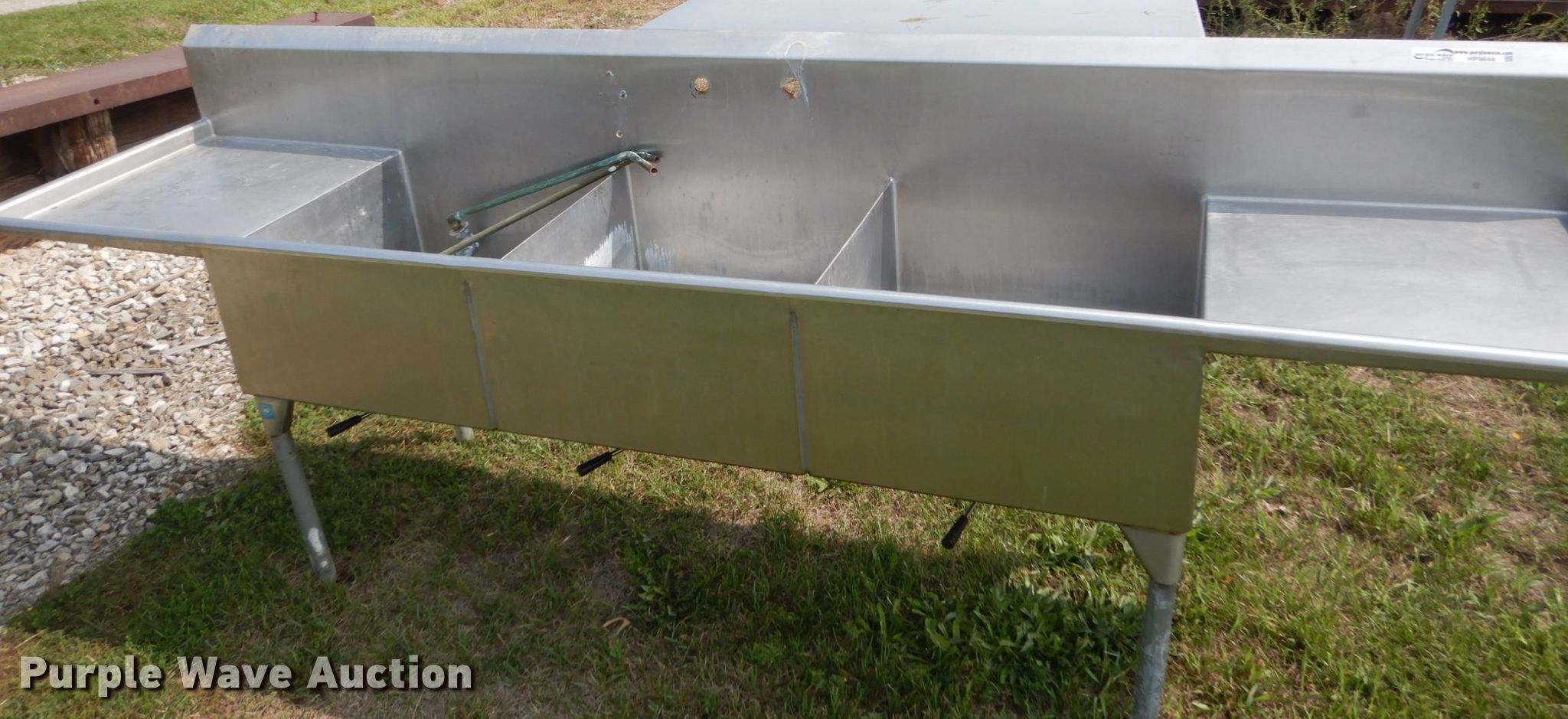 Purple Wave is selling a used Furniture in Iowa. This item is a Furniture with the following: (3) stainless steel sinks, 10' x 27", Stainless steel table, 6'L x 30"W x 33"H, Desk