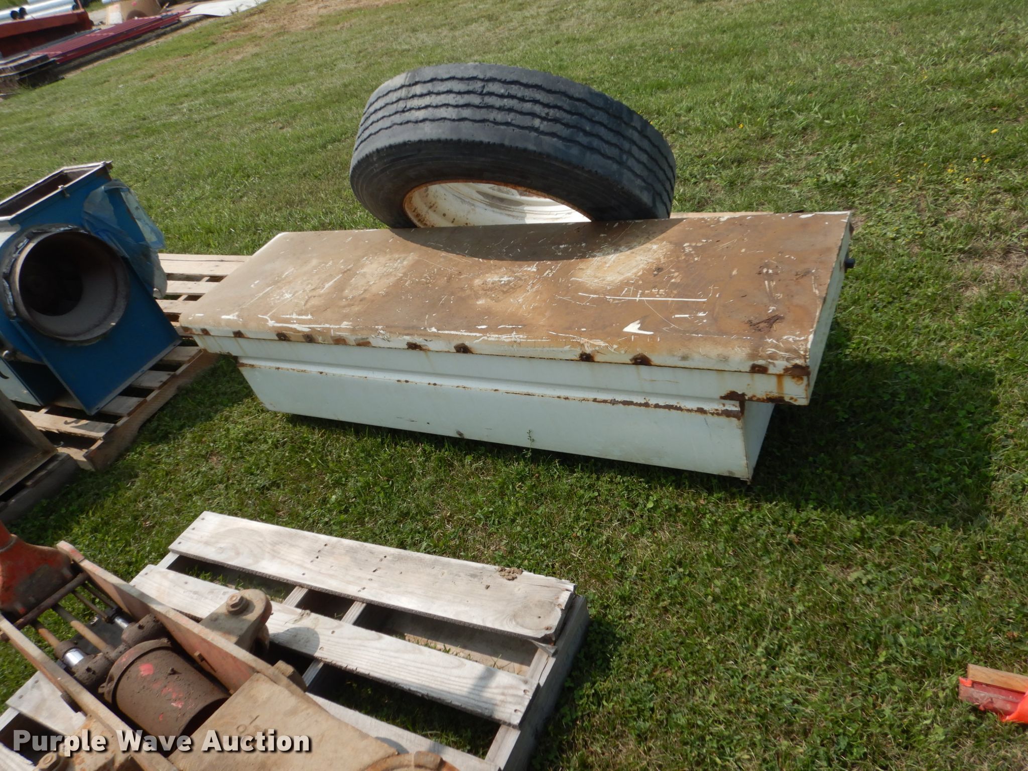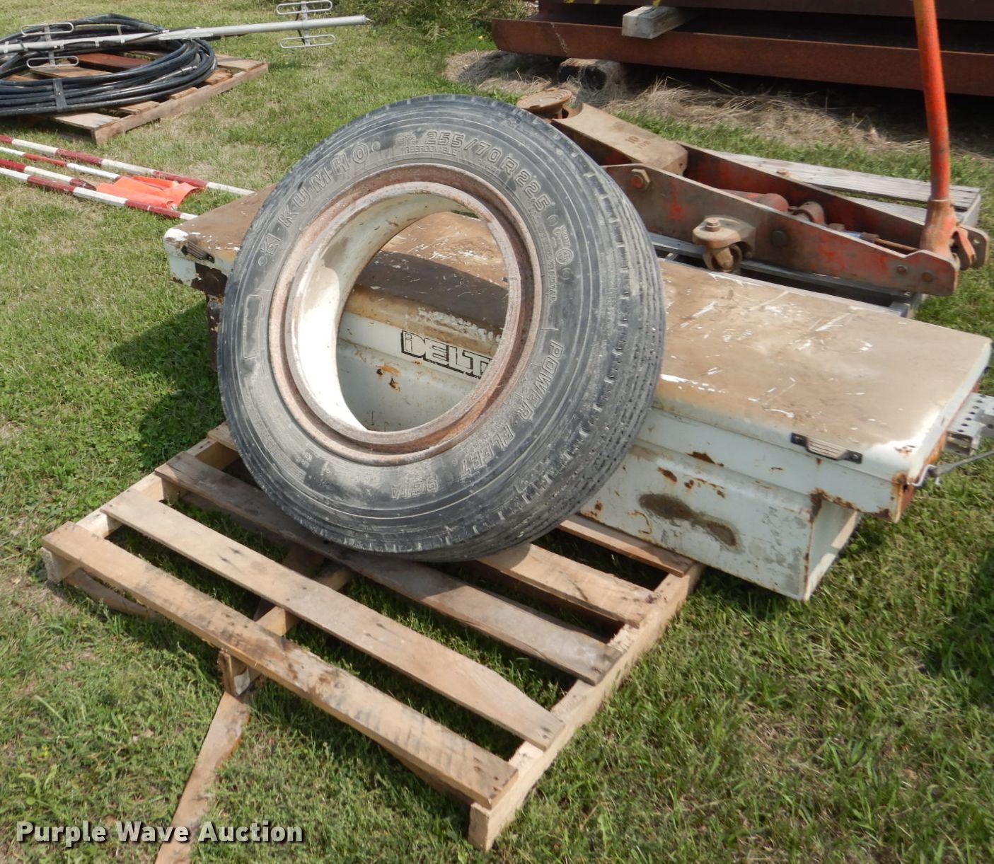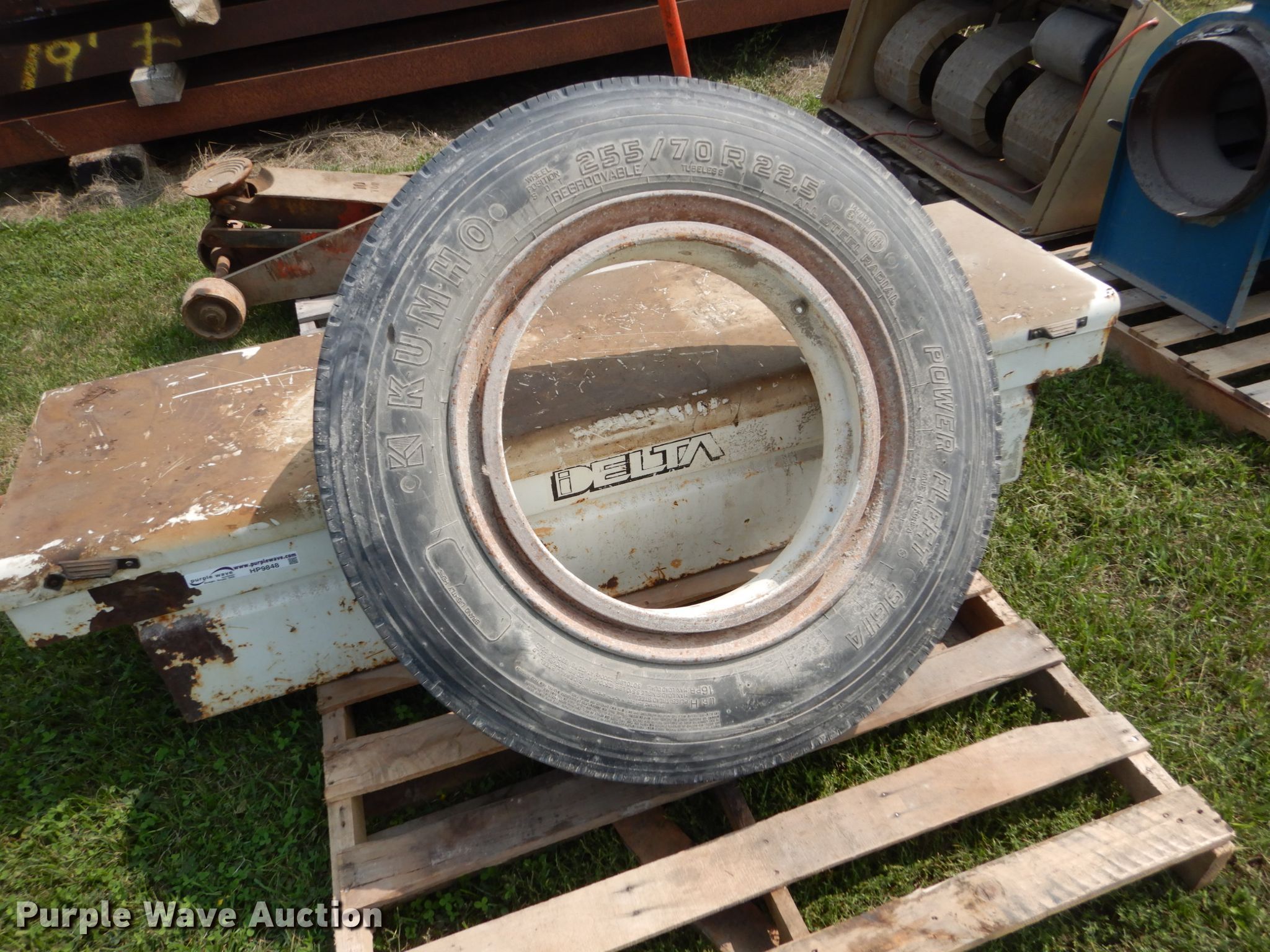 Purple Wave is selling a used Tools in Iowa. This item is a Tools with the following: 255/70R22.5 tire and wheel, Toolbox, 10 ton floor jack, Coaxial cable, Surveying stakes, Antenna