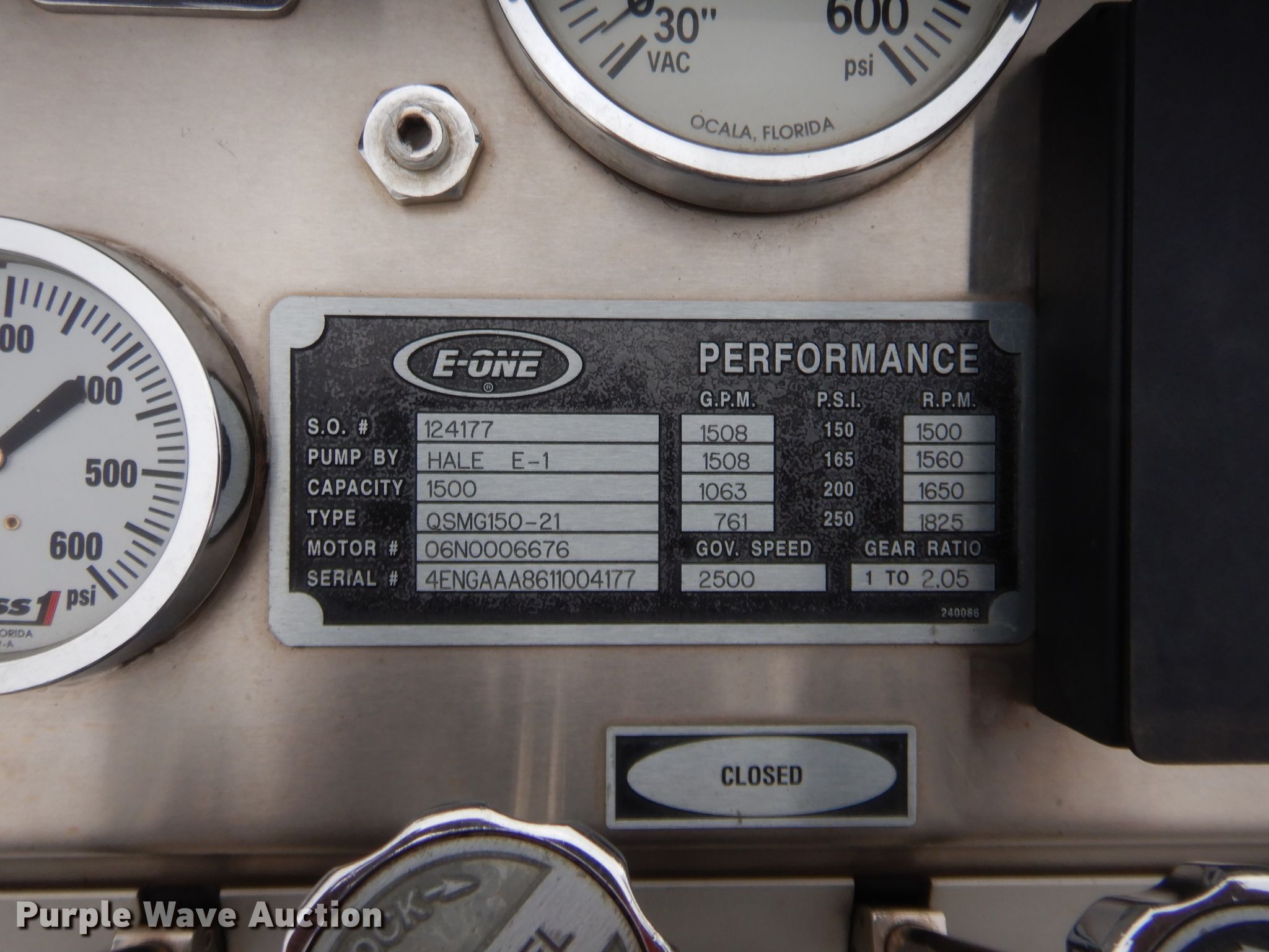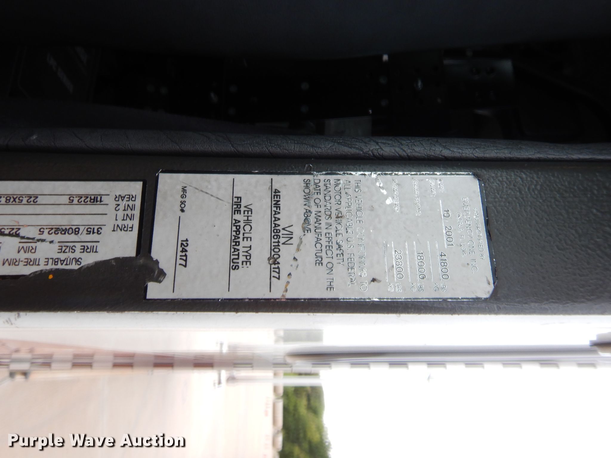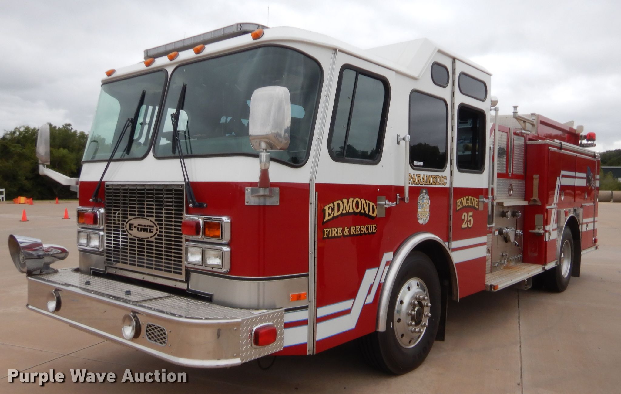 2001 E-one pumper fire truck. 11,200 miles on odometer, Unit #: 25. Engine Detroit Diesel Series 40, Displacement: 8.7L, Cylinders: 6, Fuel type: Diesel. Transmission Automatic. Chassis Axles: Single, Suspension: Spring, Brakes: Air, GVWR: 41,800 lbs. Interior AC, Heat, Auxiliary controls. Operational Pump 1,508 gpm, Serial 4ENGAAA8611004177. Tires Front: 315/80R22.5, Rear: 11R22.5 14PR, Brand: Firestone. Oklahoma title. Seller is a government entity who will be assigning and distributing the title. Please contact the seller for distribution questions. 4ENFAAA8611004177. City of Edmond - Open inspection Oct. 19. 5300 E Covell Rd. Edmond, OK 73034