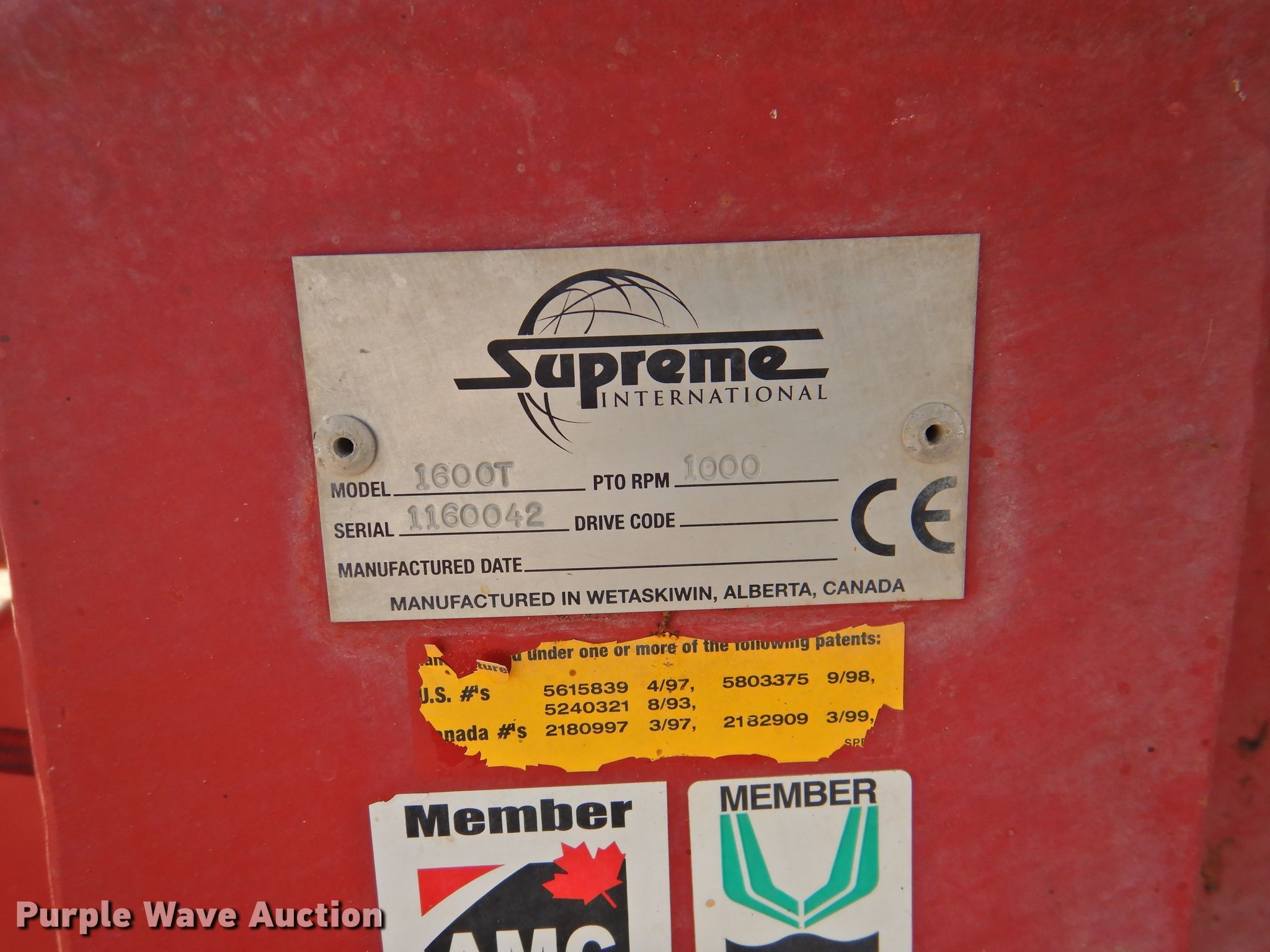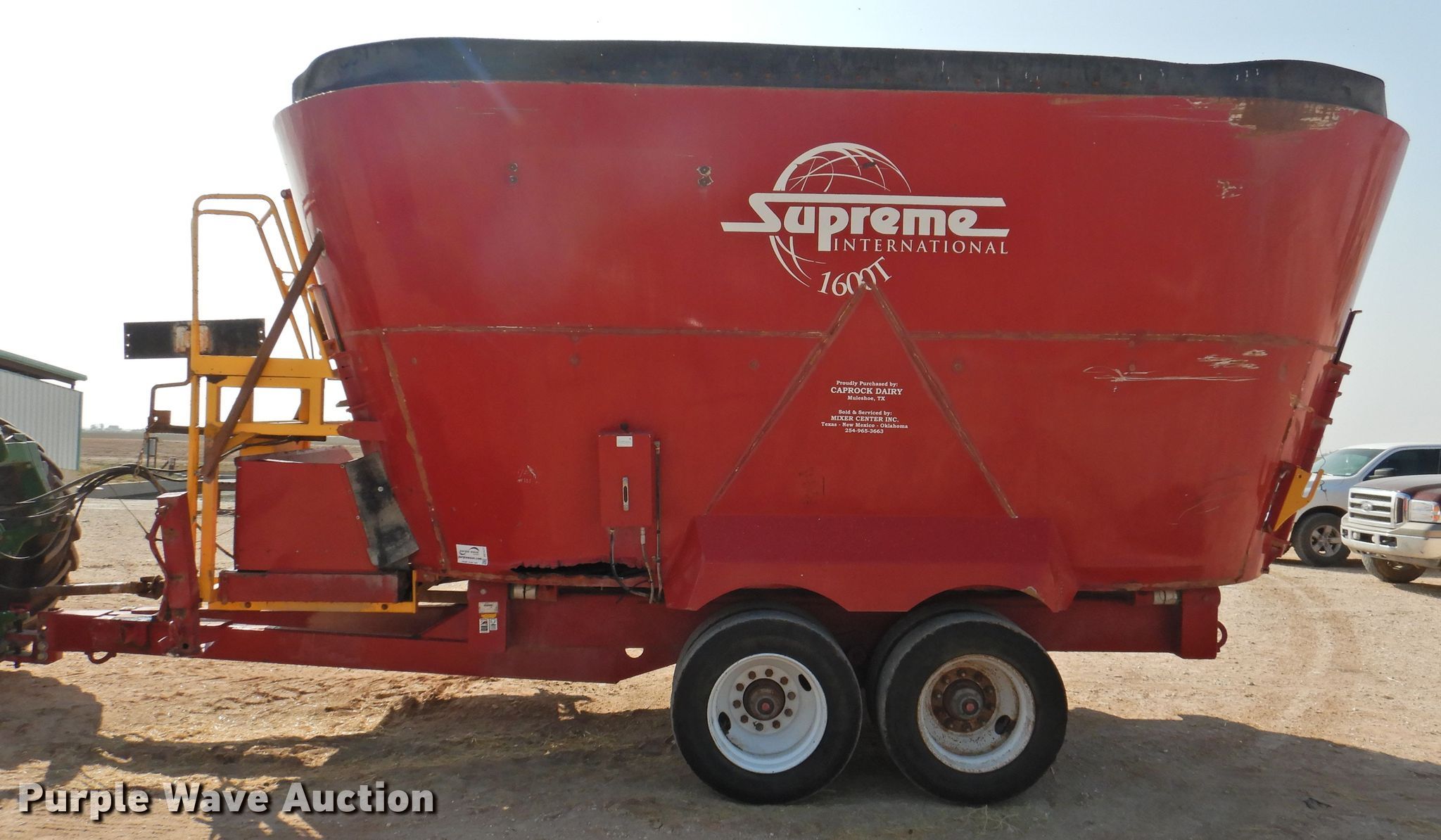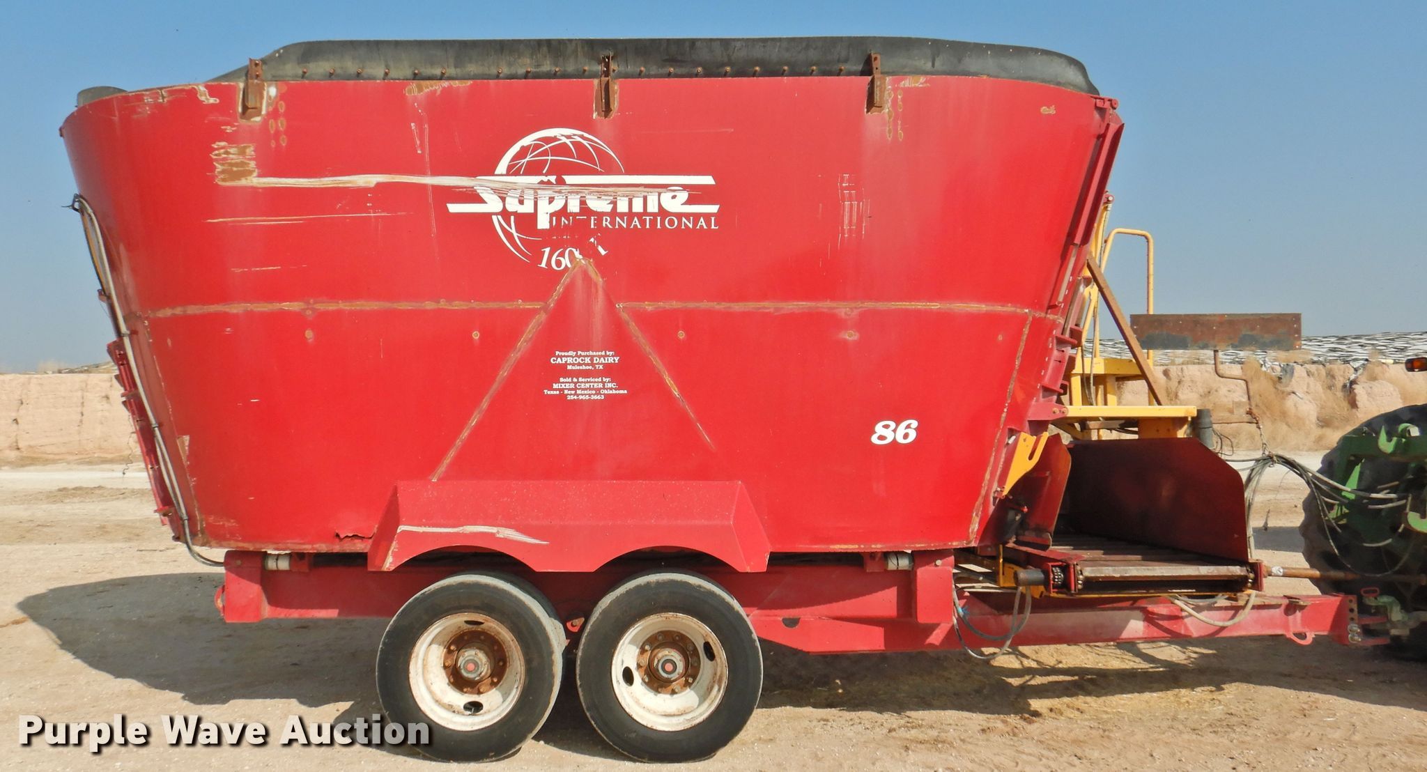 Purple Wave is selling a used Feed Mixer or Bale Processor in Texas. This item is a Supreme International 1600T feed mixer with the following: Serial: 1160042
