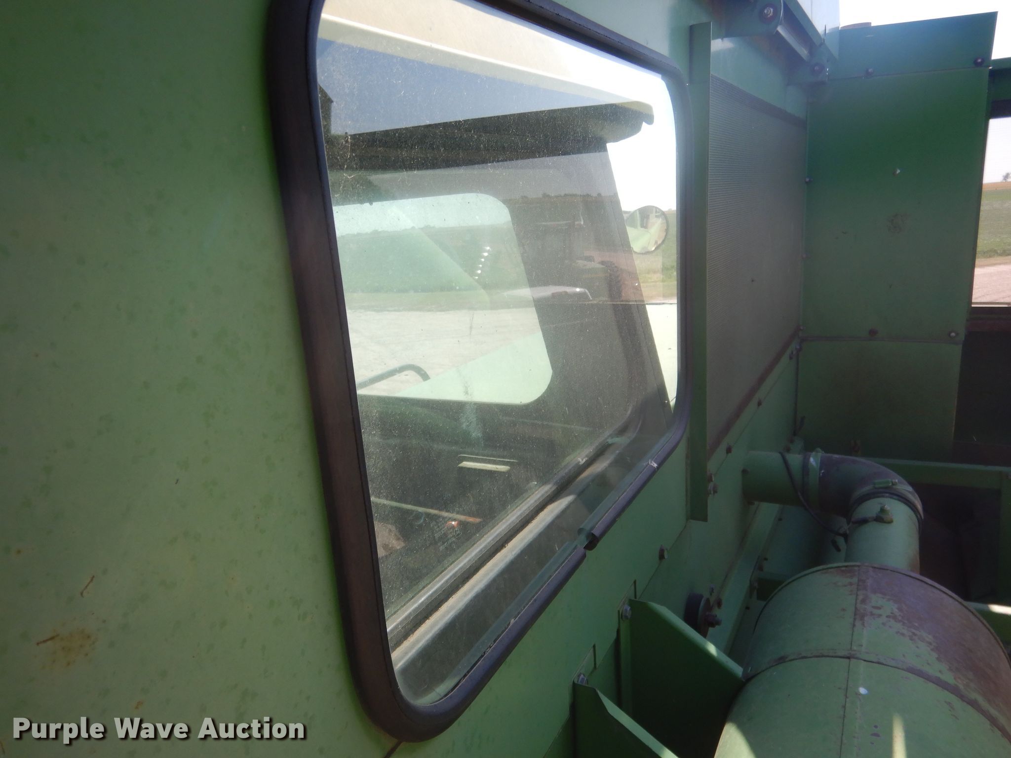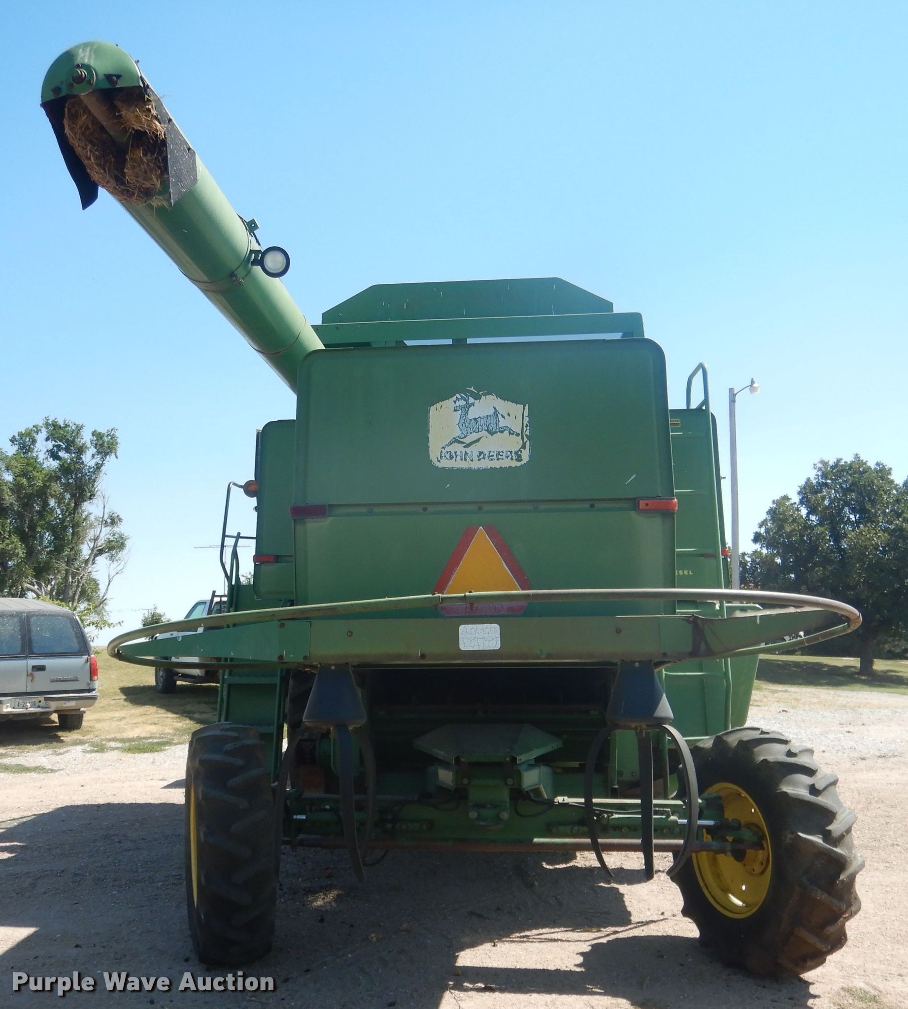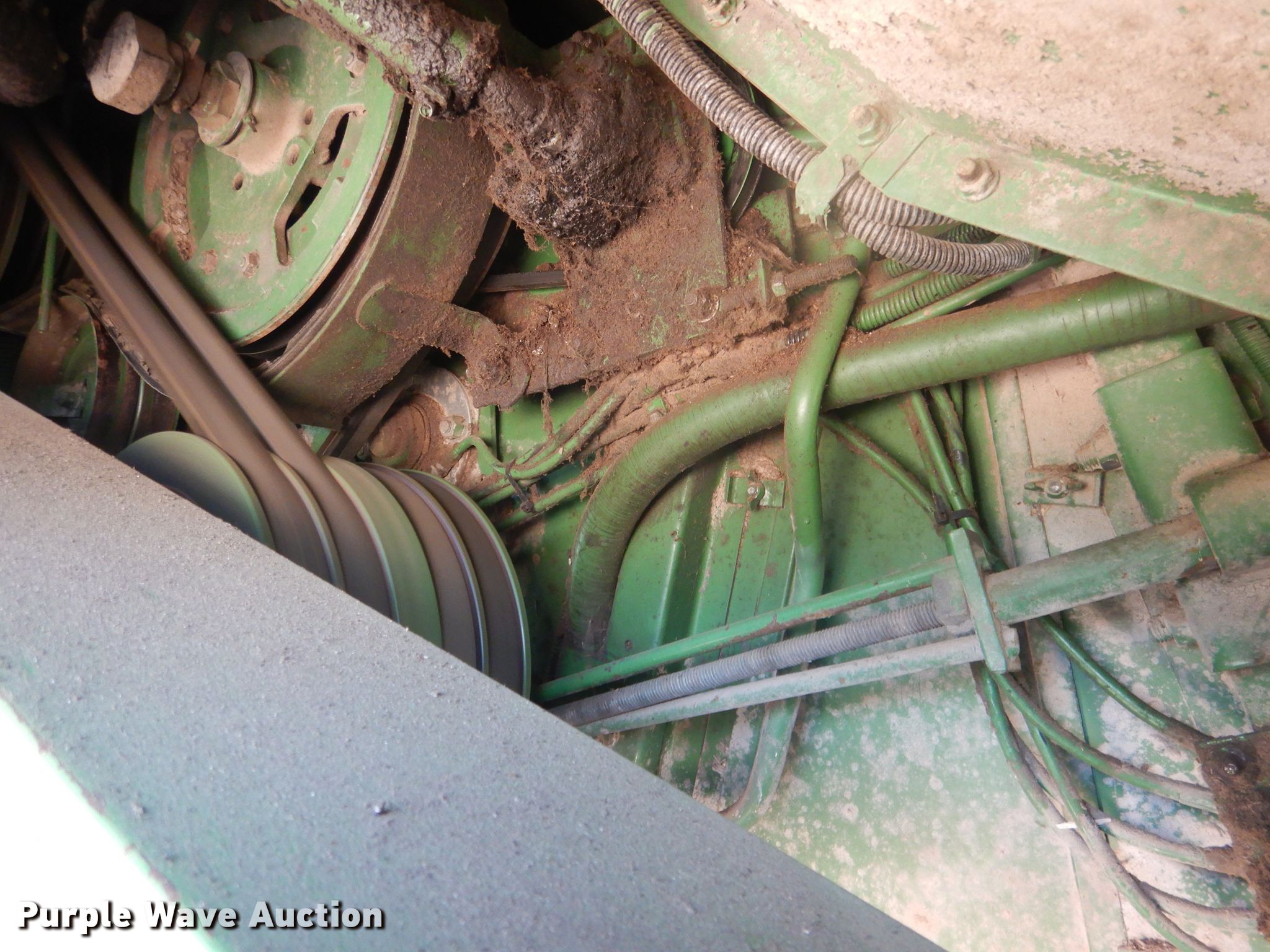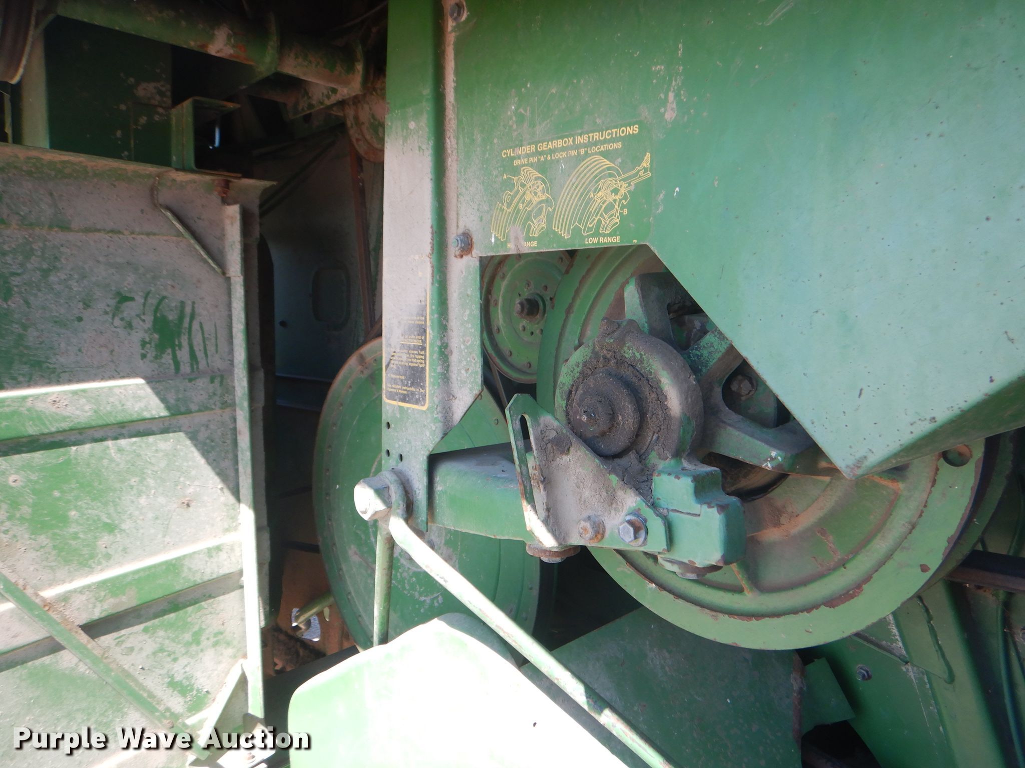 Purple Wave is selling a used Combine in Nebraska. This item is a John Deere 7720 combine with the following: 3,474 engine hours on meter, John Deere 6466TH-02 six cylinder diesel engine, Serial RG6466T240661, Hydrostatic transmission, 4F-4R gears, Feederhouse, Lateral tilt, Variable speed, Reverser, AC and heat, Round concaves, Two speed rotor, Chaff spreader, 12'L unloading auger, Operator manual, John Deere corn head, Five rows, 36" row spacing, Dual drivelines, Serial 142119H, 24.5-32 front tires, 14.9-24 rear tires, Tire spacer, Spreader drive belt is off wheel, Serial H07720X557089