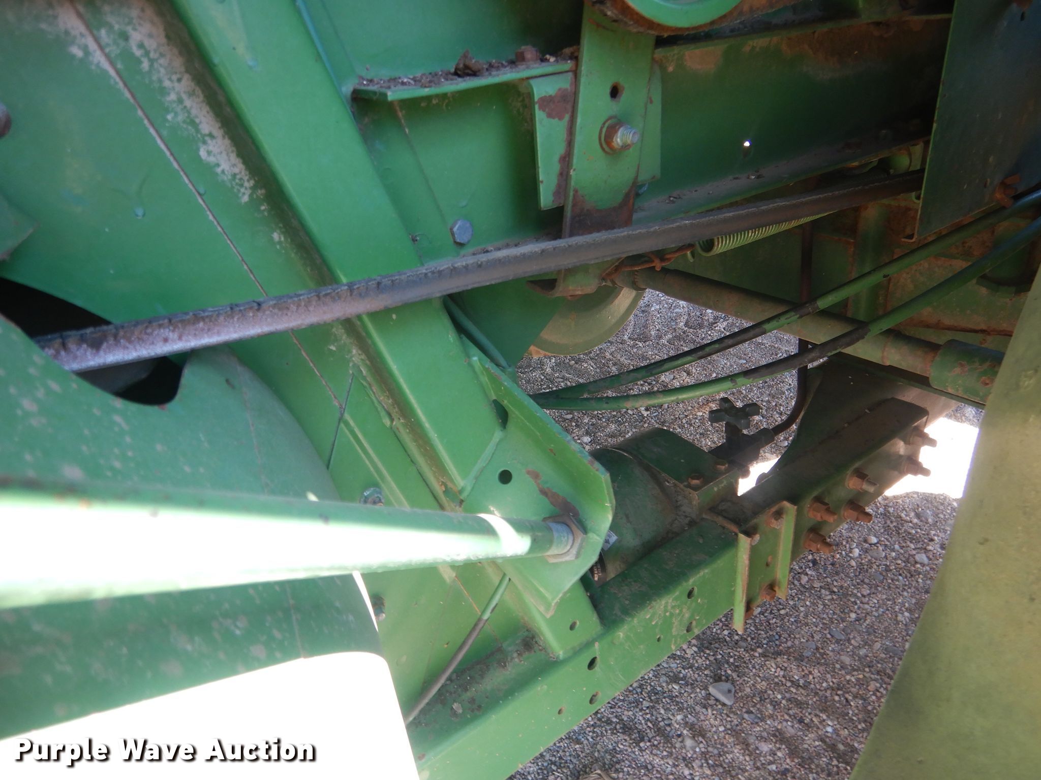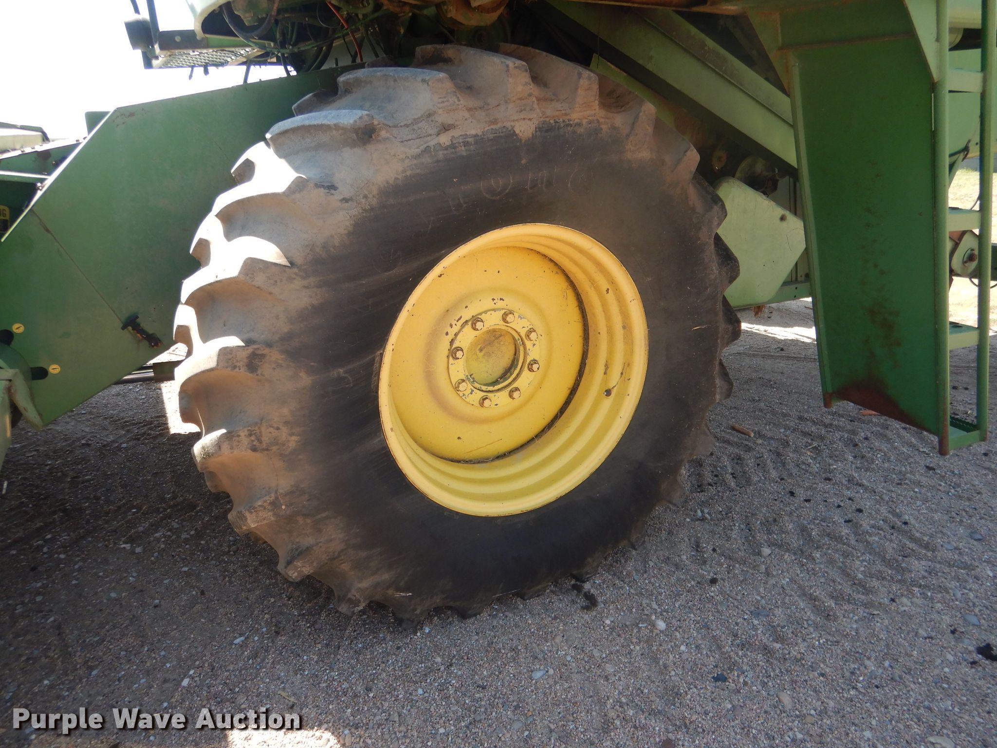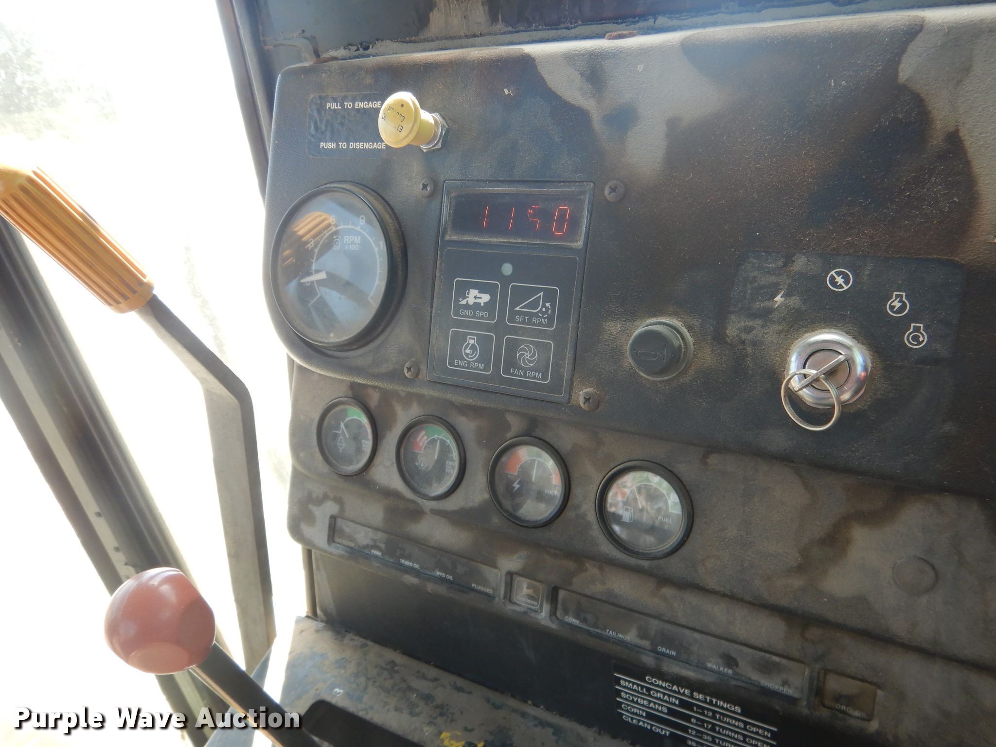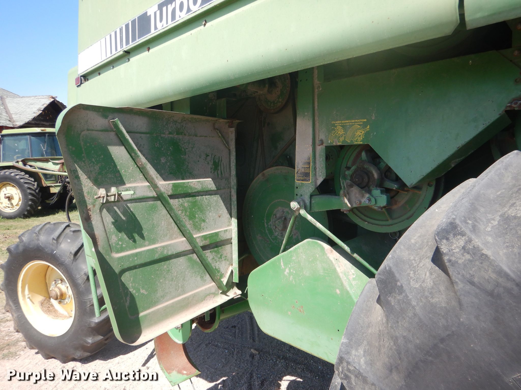 Purple Wave is selling a used Combine in Nebraska. This item is a John Deere 7720 combine with the following: 3,474 engine hours on meter, John Deere 6466TH-02 six cylinder diesel engine, Serial RG6466T240661, Hydrostatic transmission, 4F-4R gears, Feederhouse, Lateral tilt, Variable speed, Reverser, AC and heat, Round concaves, Two speed rotor, Chaff spreader, 12'L unloading auger, Operator manual, John Deere corn head, Five rows, 36" row spacing, Dual drivelines, Serial 142119H, 24.5-32 front tires, 14.9-24 rear tires, Tire spacer, Spreader drive belt is off wheel, Serial H07720X557089