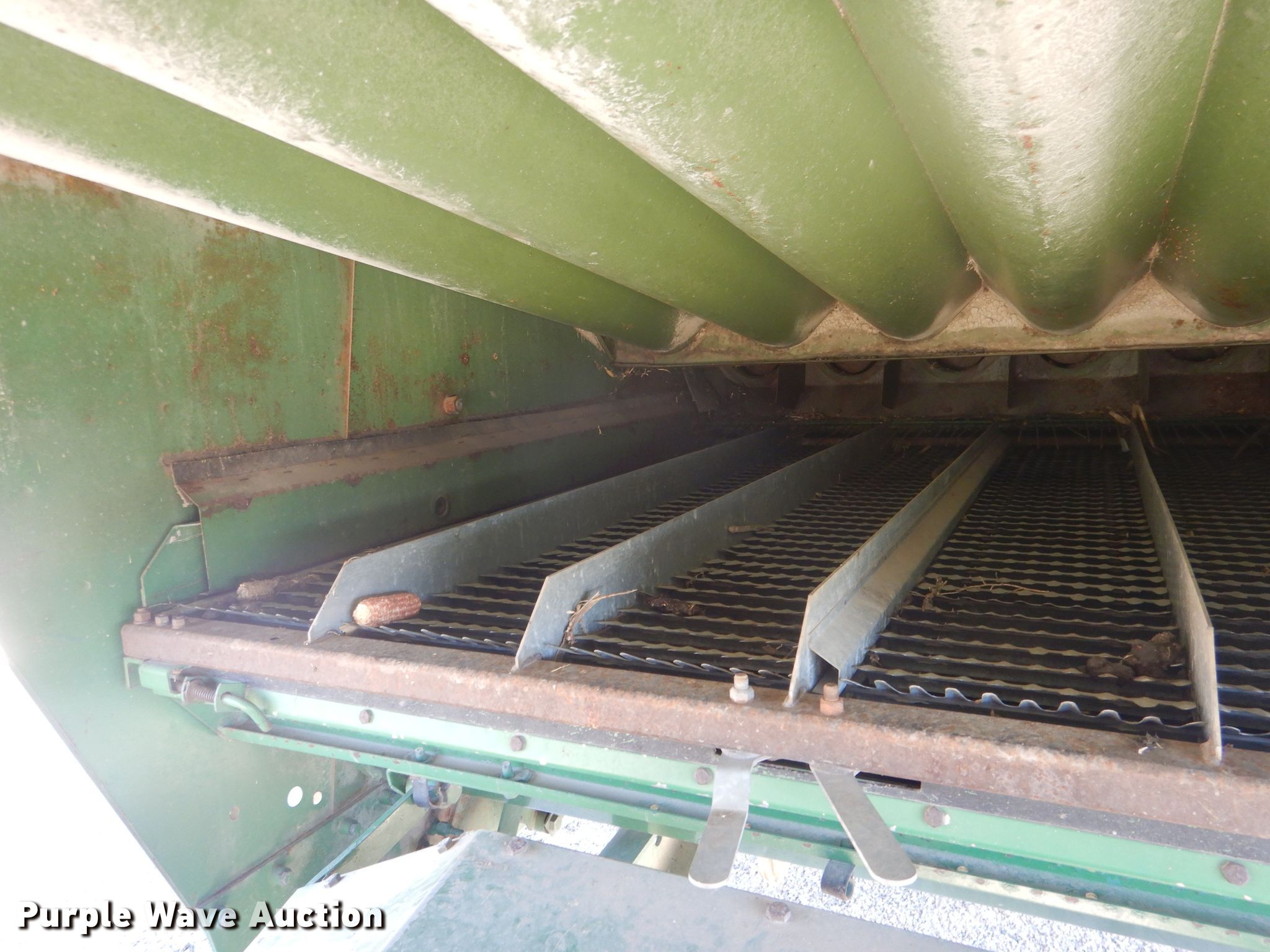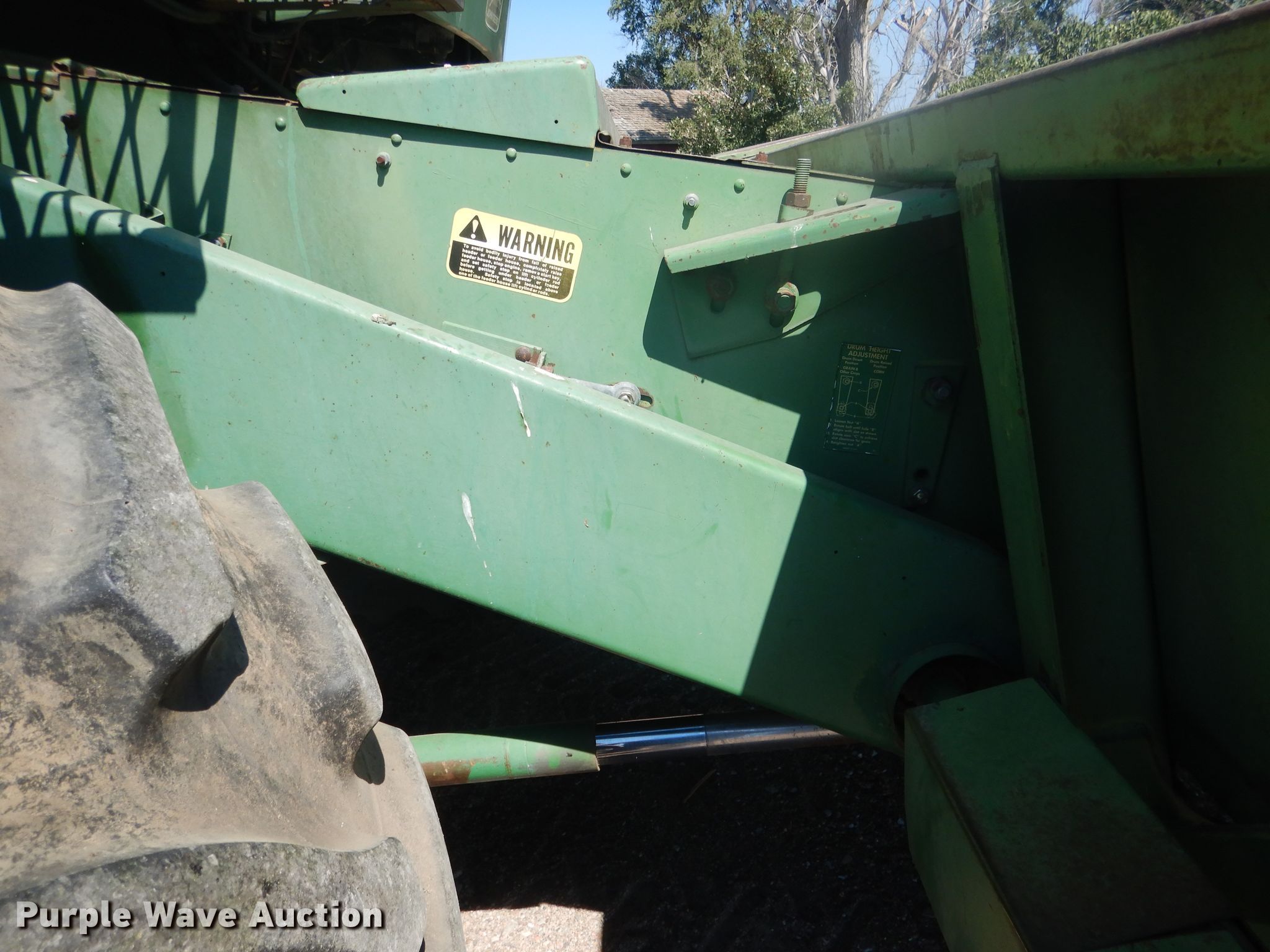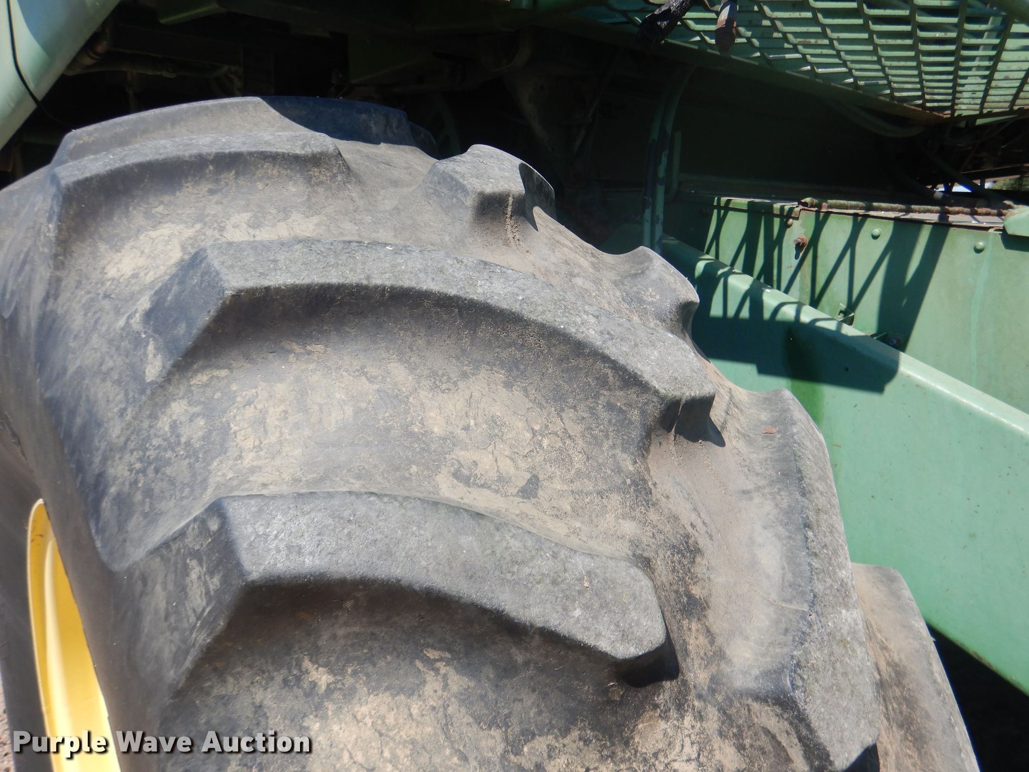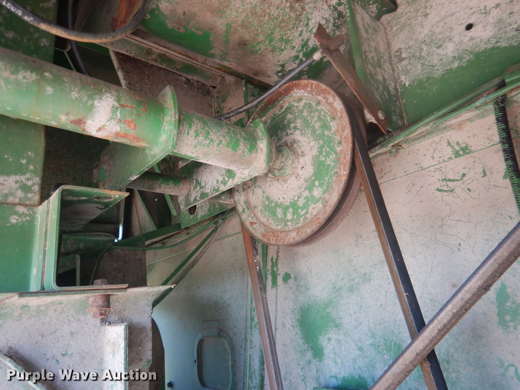 Purple Wave is selling a used Combine in Nebraska. This item is a John Deere 7720 combine with the following: 3,474 engine hours on meter, John Deere 6466TH-02 six cylinder diesel engine, Serial RG6466T240661, Hydrostatic transmission, 4F-4R gears, Feederhouse, Lateral tilt, Variable speed, Reverser, AC and heat, Round concaves, Two speed rotor, Chaff spreader, 12'L unloading auger, Operator manual, John Deere corn head, Five rows, 36" row spacing, Dual drivelines, Serial 142119H, 24.5-32 front tires, 14.9-24 rear tires, Tire spacer, Spreader drive belt is off wheel, Serial H07720X557089