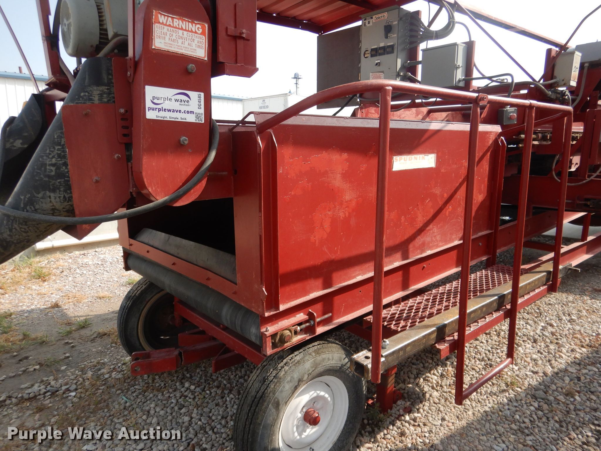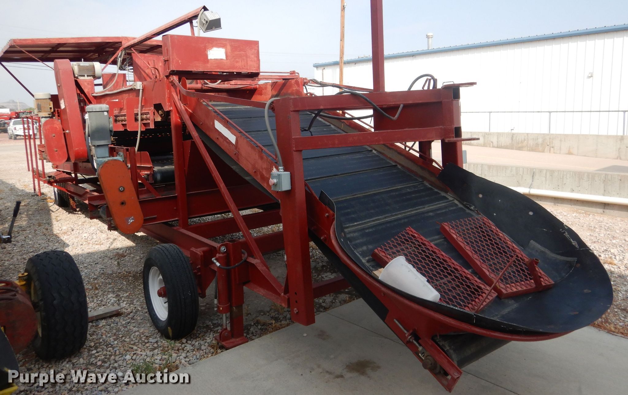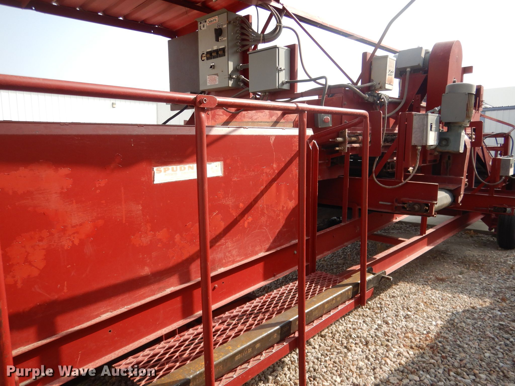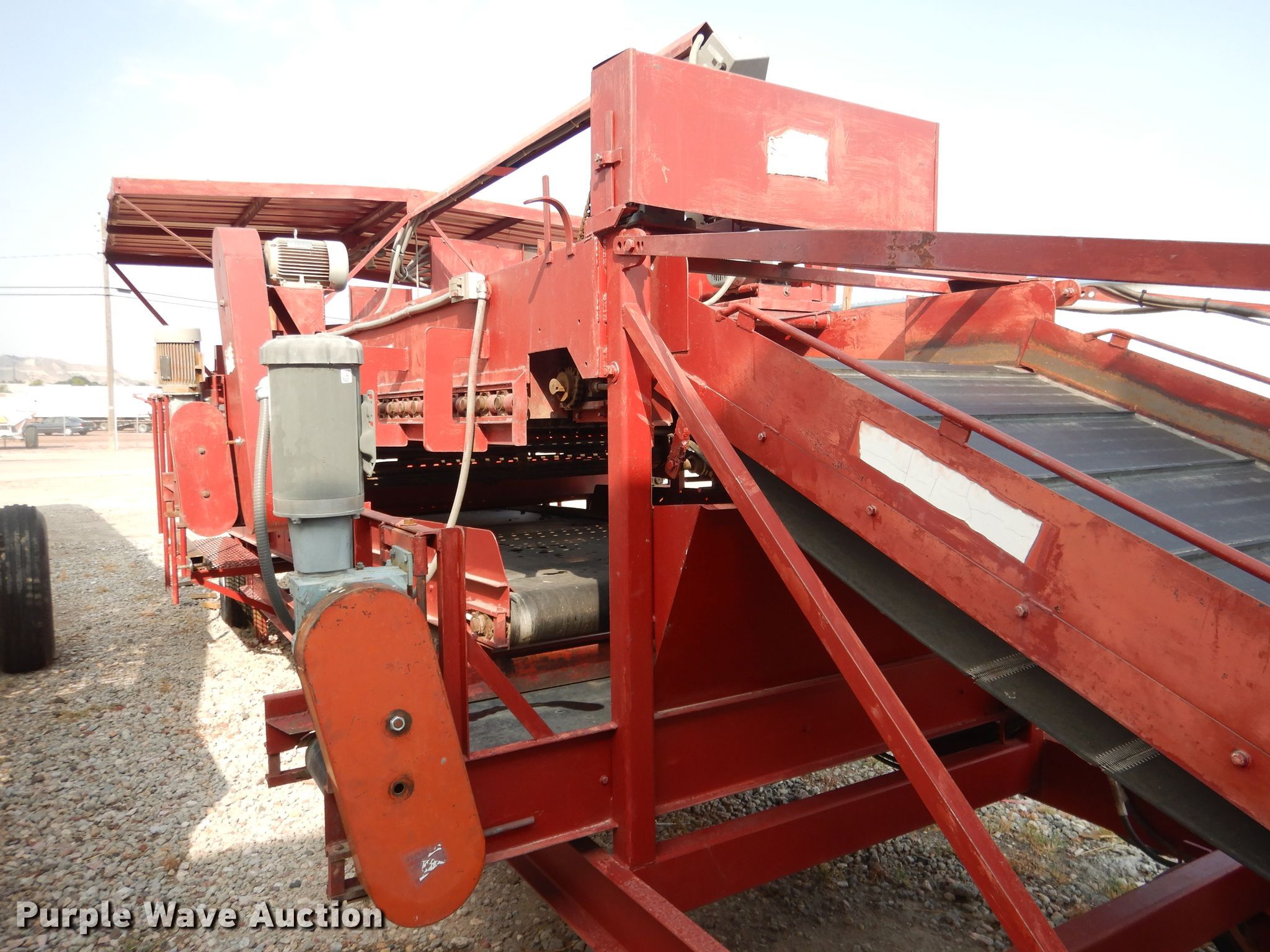 Purple Wave is selling a used Other Grain or Fertilizer Handling in Nebraska. This item is a Spudnix 900-88 potato shaker with the following: Approx. 33'L overall, 48"W conveyor, 60"W finger roller conveyor, (2) 20" side discharge conveyors, 4' discharge conveyor, Covered operator station, Work lights, Electric motors, 240V, Tow-able steer, Rear wheel drive, Goodyear H78-15ST tires, Serial 870