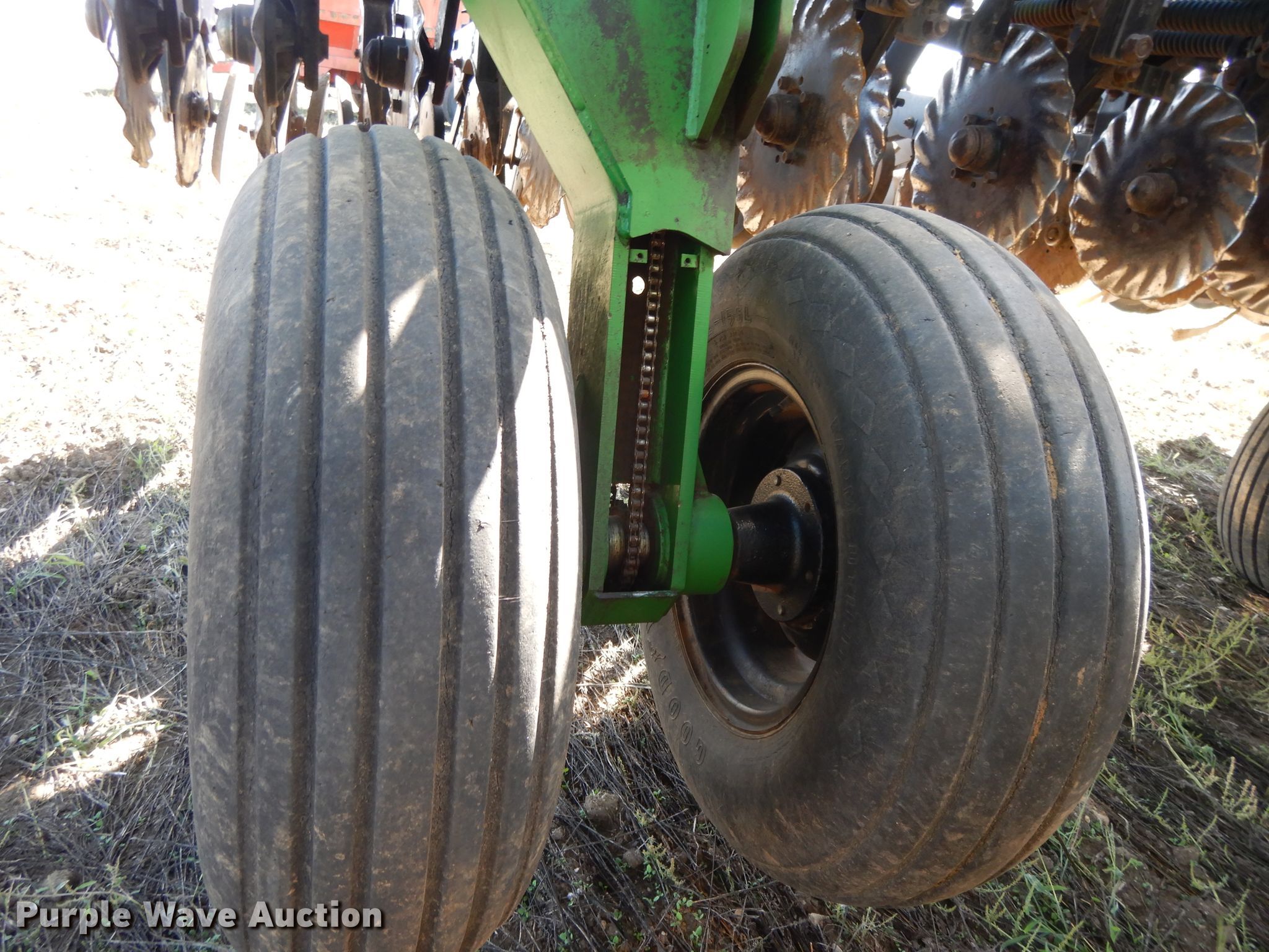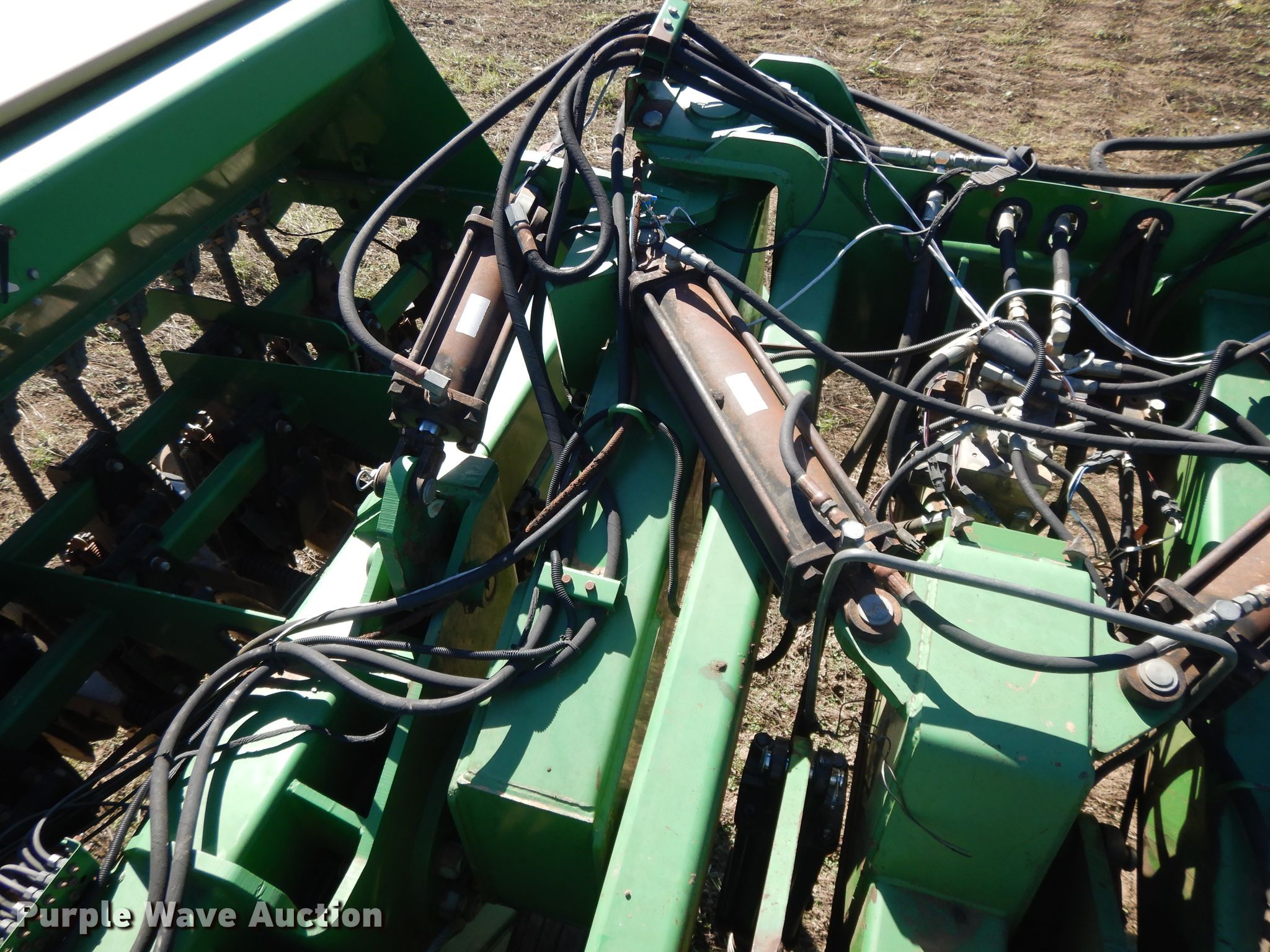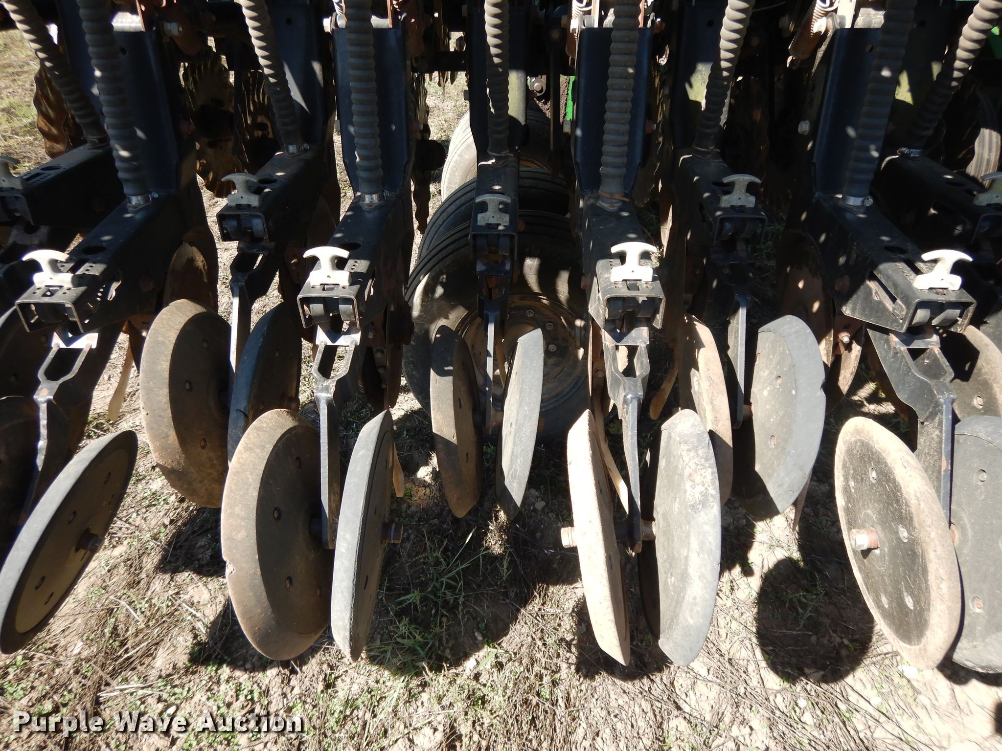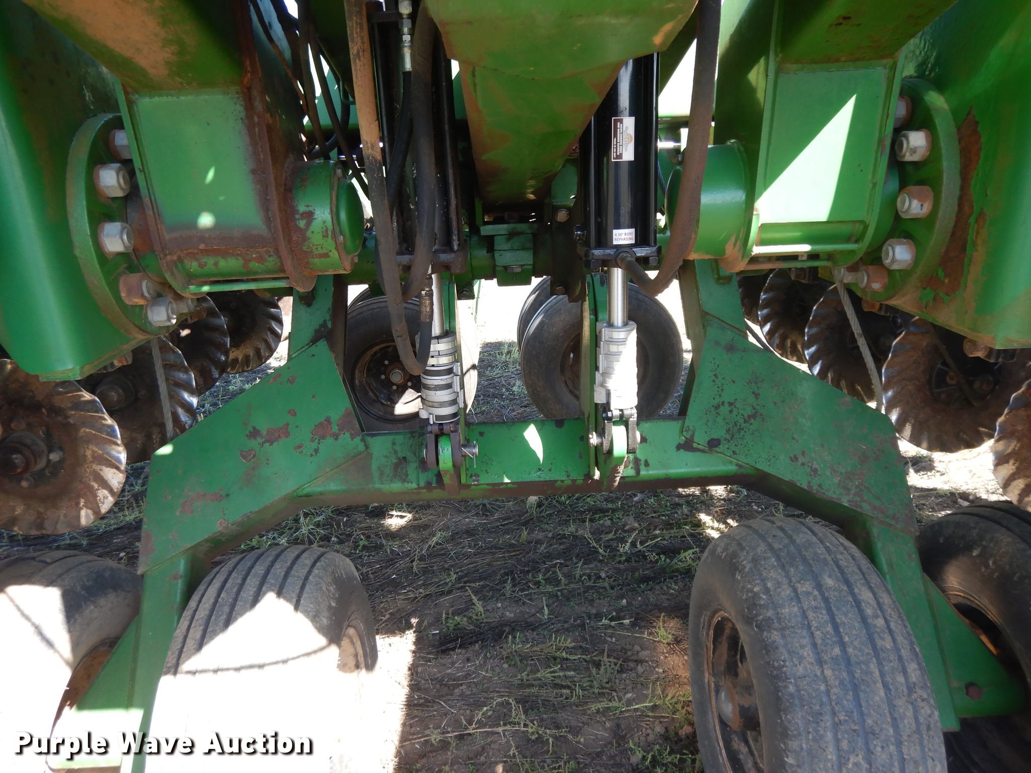 Purple Wave is selling a used Grain Drill or Seeder in Kansas. This item is a 1998 Great Plains 2N-3010 grain drill with the following: 30'W, 44 row units, 7.5" row spacing, Marker arms, Hydraulic front fold, Bulk fill system, Spring down pressure, No-till coulters, Seed firmers, Double disk openers, Double rubber closing system, (4) 12.5x15 transport tires, (4) 12.5x15 drive/outside tires, Left transport tire tread missing, Serial 02040
