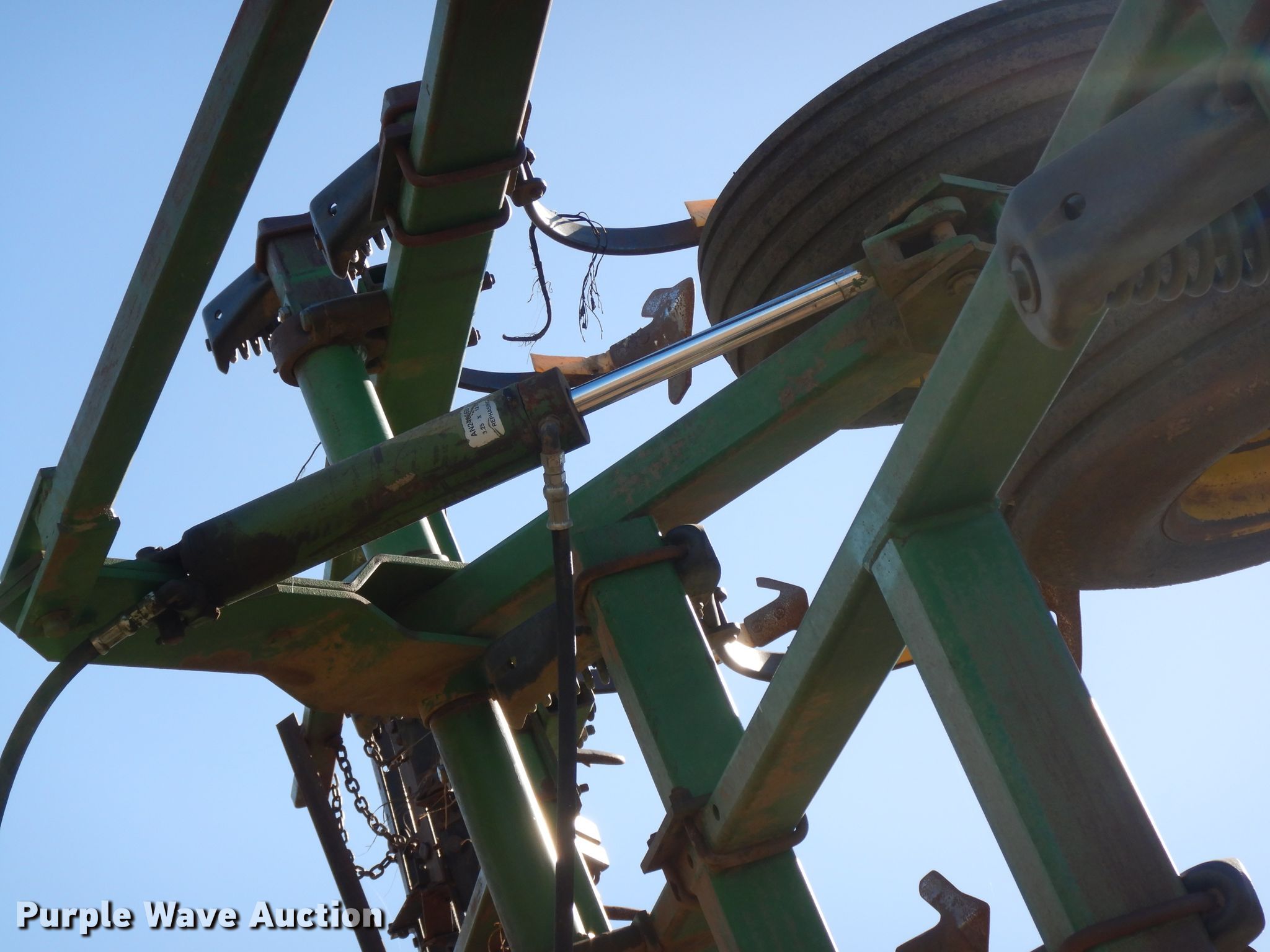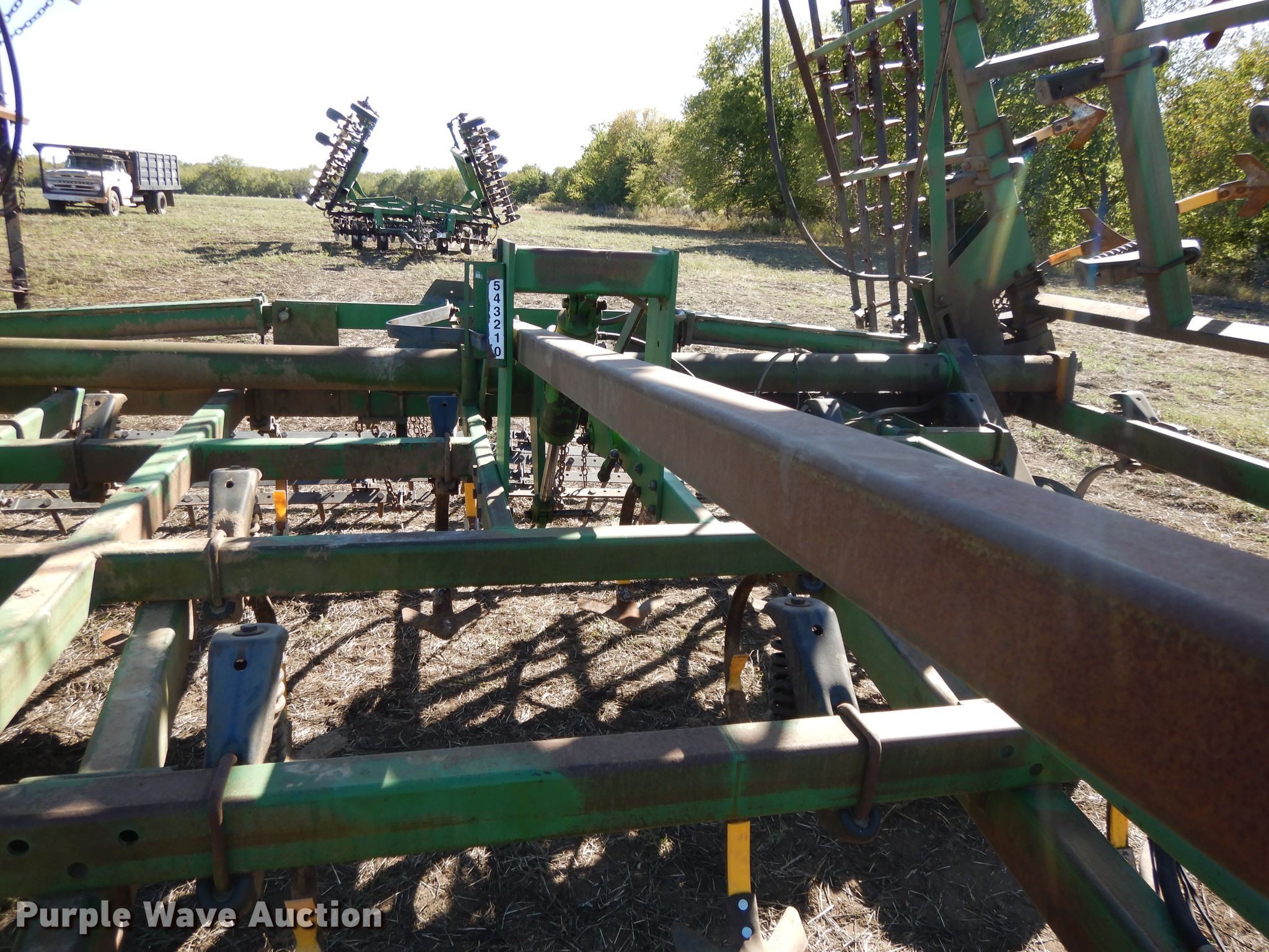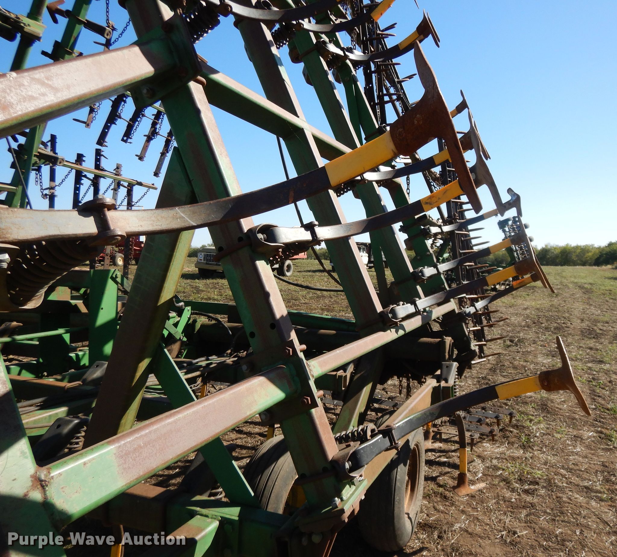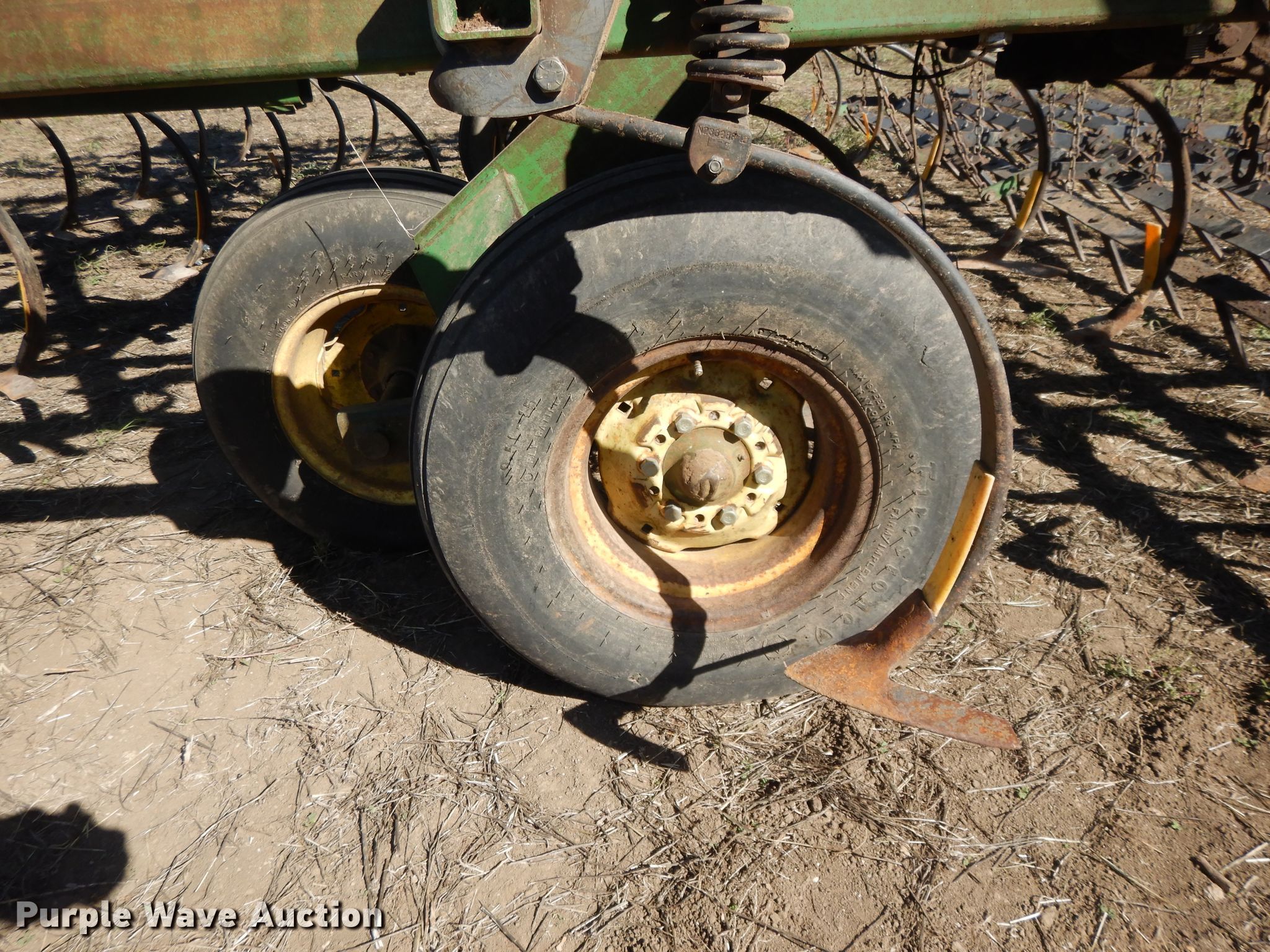 Purple Wave is selling a used Field Cultivator or Sweep Plow in Kansas. This item is a John Deere 980 sweep plow with the following: 35'W, (74) 12"W sweeps, Spike tooth harrow, Hydraulic lift and fold, 9.5L-15 tires, Serial N00980X002306