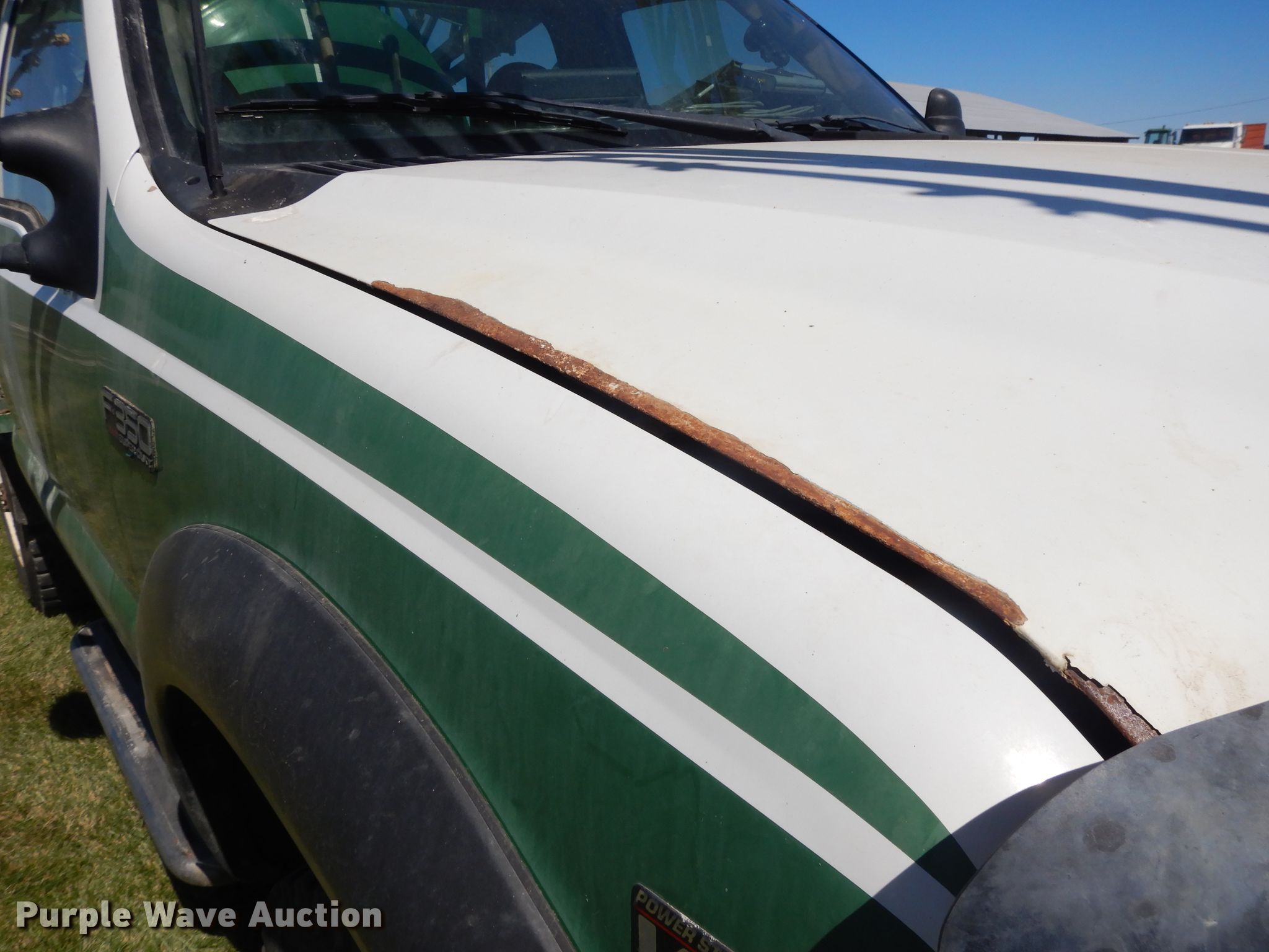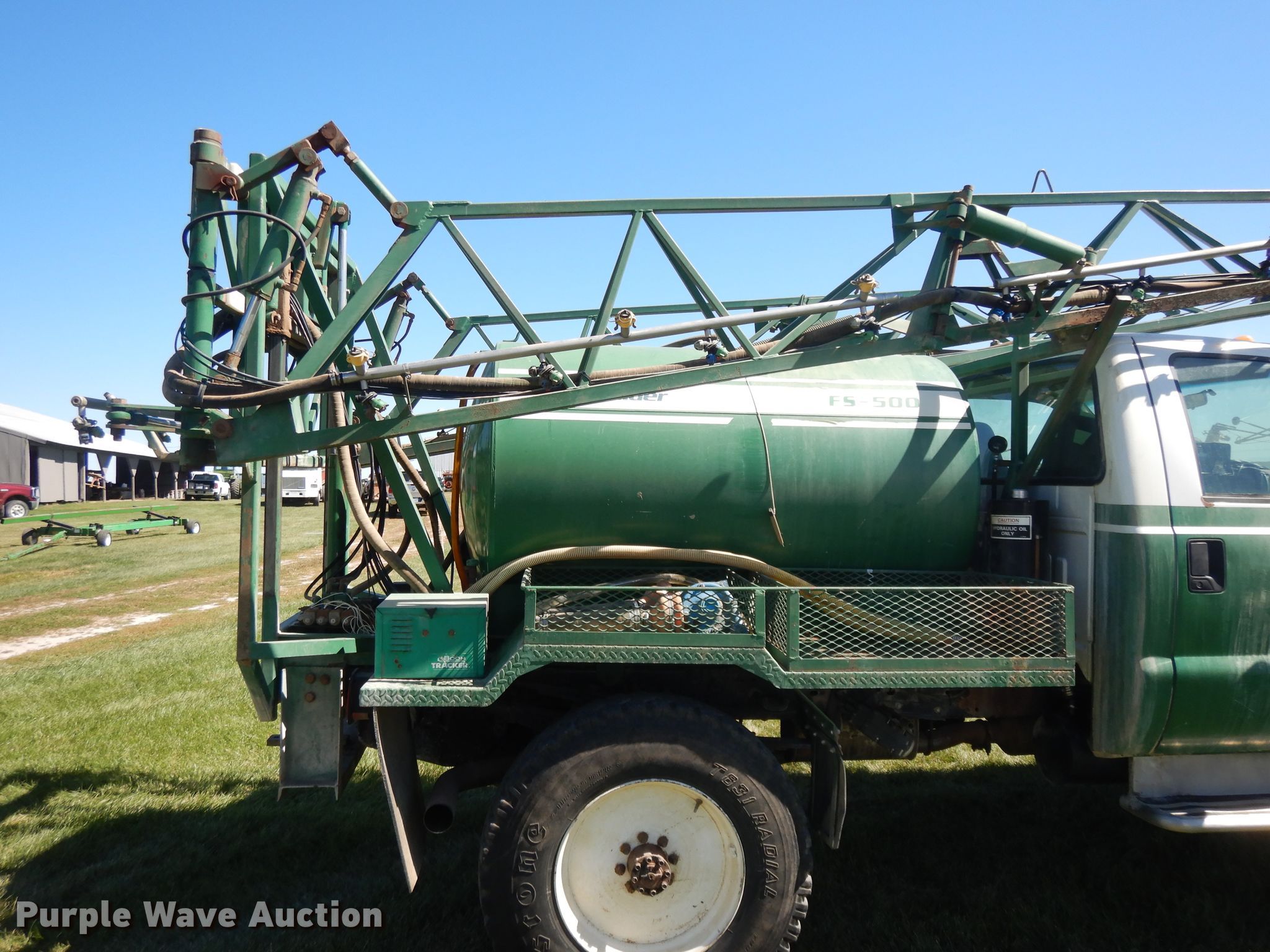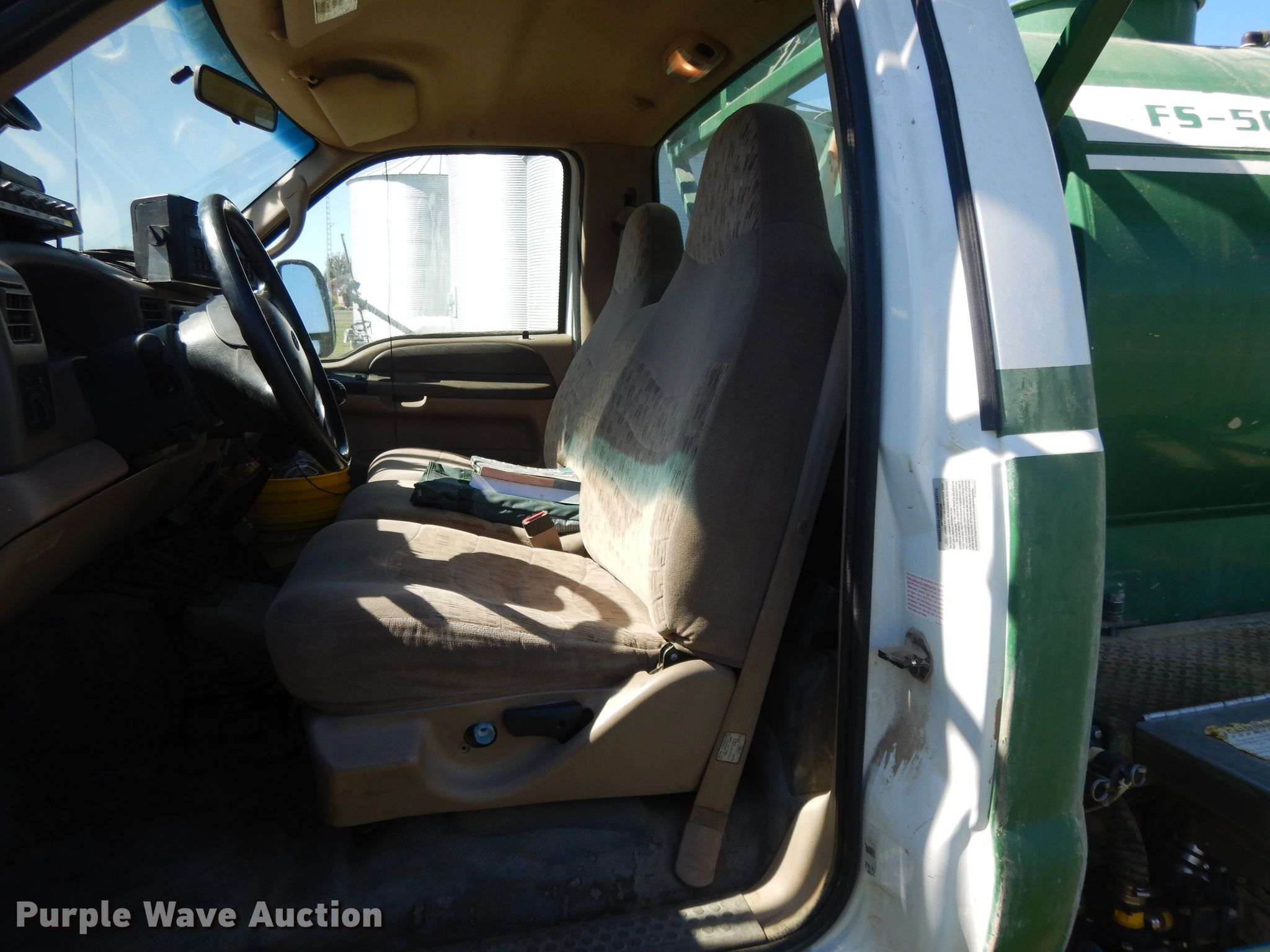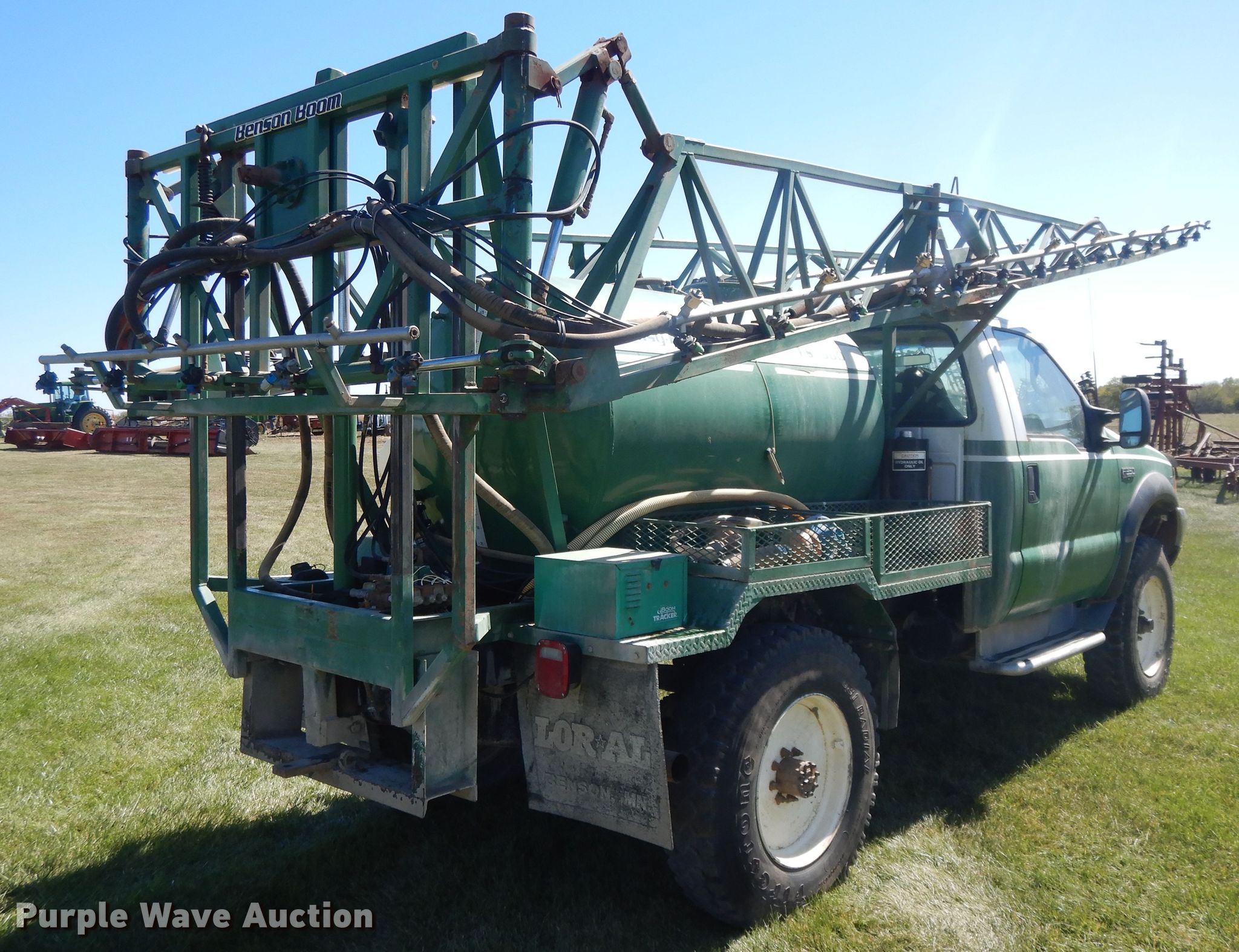 Purple Wave is selling a used Applicator Truck in Kansas. This item is a 1999 Ford F350 Super Duty applicator truck with the following: 40,111 miles on odometer, 7.3L V8 OHV 16V diesel engine, Five speed manual transmission, Four wheel drive, AC, 500 gallon solution tank, One gallon stainless steel chemical eductor tank, 25 gallon foam marker tank, 53'W boom, Hydraulic boom fold, Hydraulic height control, 20" nozzle spacing, Four-way nozzle bodies, 11R22.5 row crop tires, Some nozzle tips missing, Power steering pump is weak
