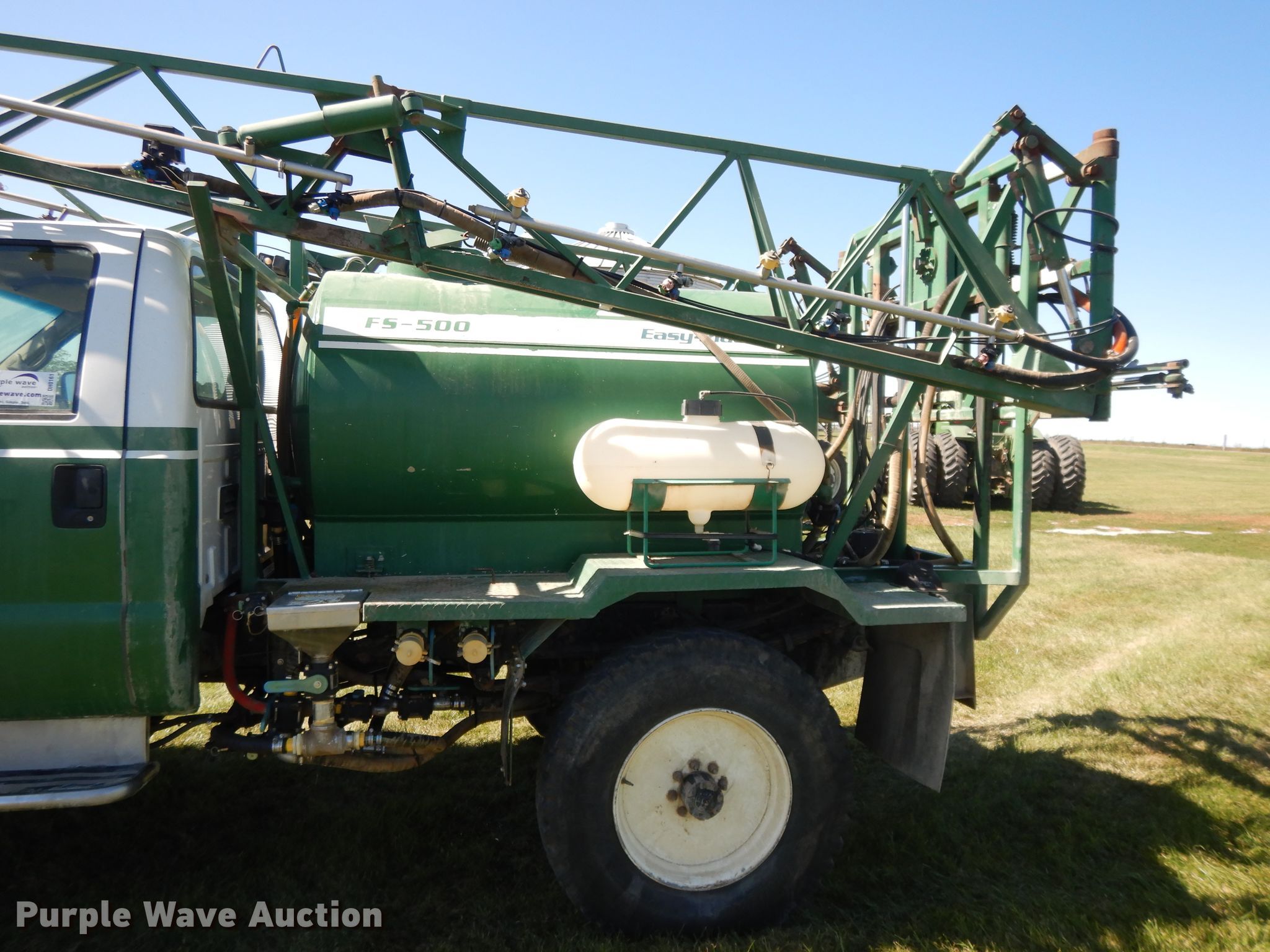 1999 Ford F350 Super Duty applicator truck. 40,111 miles on odometer, 7.3L V8 OHV 16V diesel engine, Five speed manual transmission, Four wheel drive, AC, 500 gallon solution tank, One gallon stainless steel chemical eductor tank, 25 gallon foam marker tank, 53'W boom Hydraulic boom fold, Hydraulic height control, 20" nozzle spacing, Four-way nozzle bodies, 11R22.5 row crop tires, Some nozzle tips missing, Power steering pump is weak. Kansas title. Title distribution may be delayed up to 14 days from verification of funds. 1FDWF37F3XEA19624. Katzer Estate. 33800 NE 1800. Centerville, KS 66014