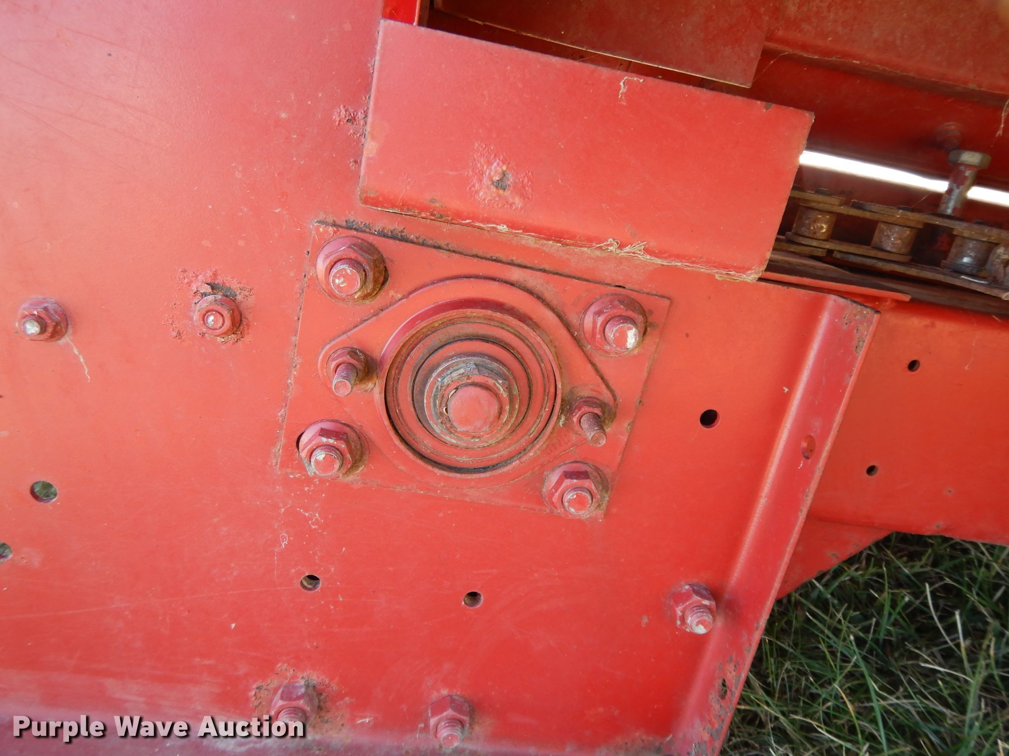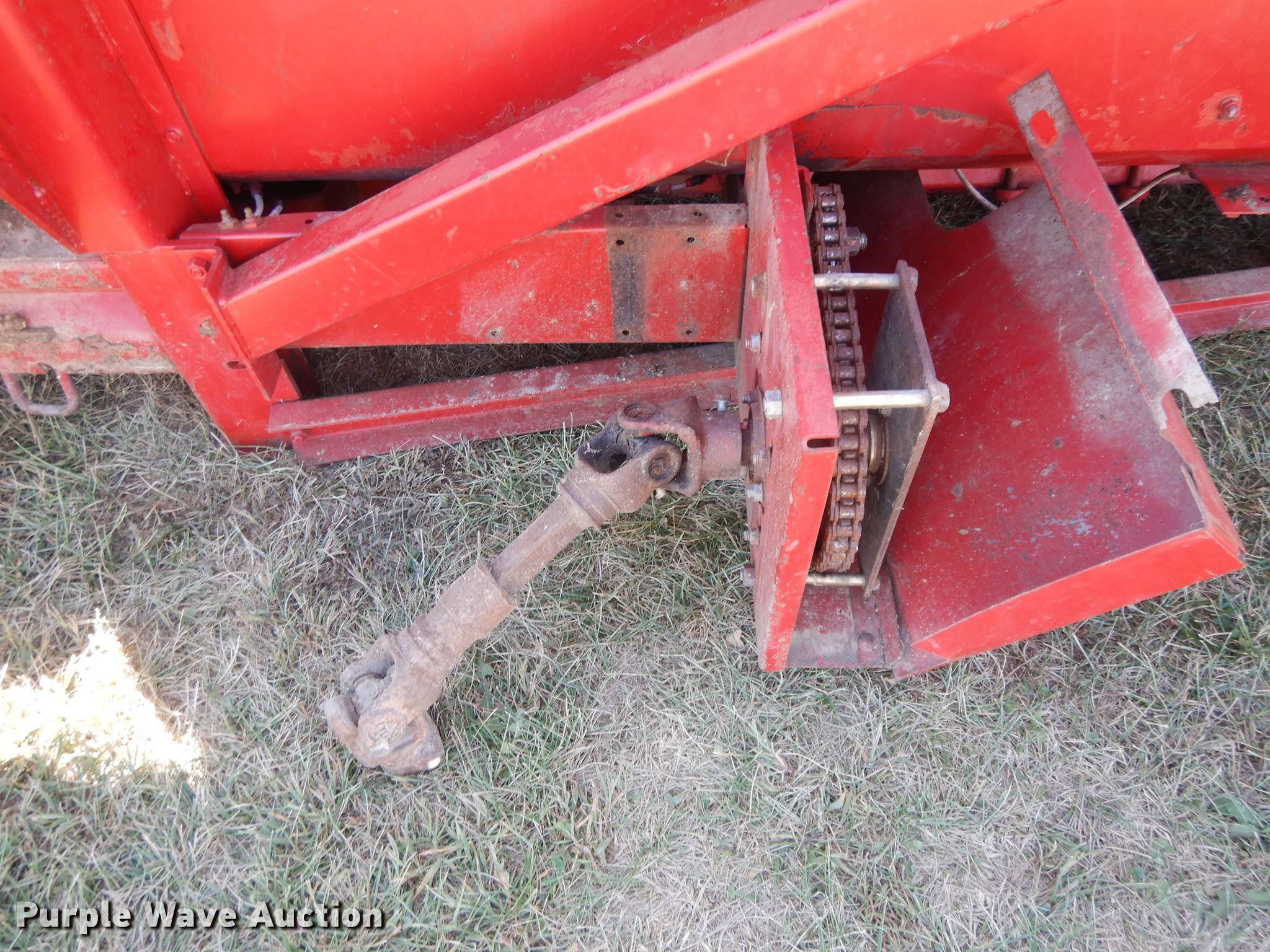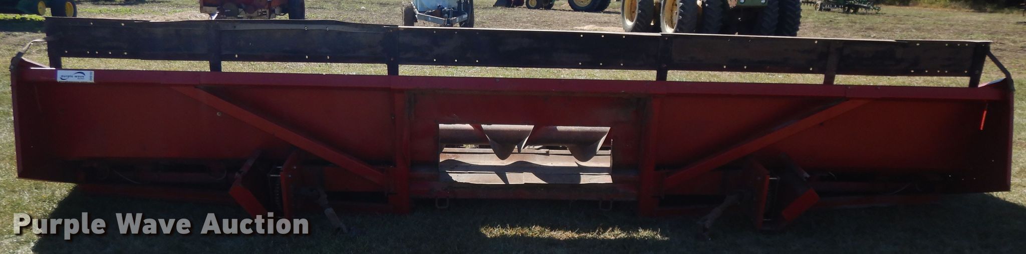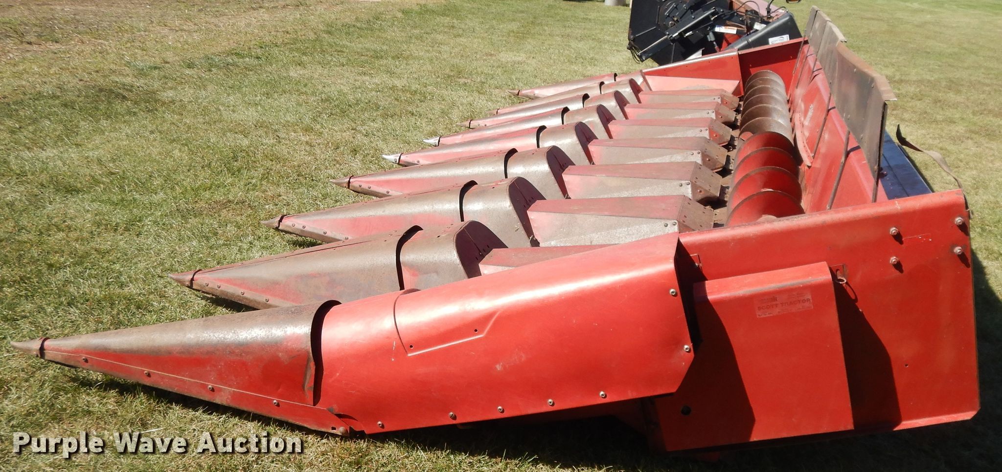 Purple Wave is selling a used Corn or Row Head in Kansas. This item is a Case 1083 corn head with the following: Eight row units, 30" row spacing, Knife rollers, Dual drivelines, Single point coupler, Serial JJC0144261