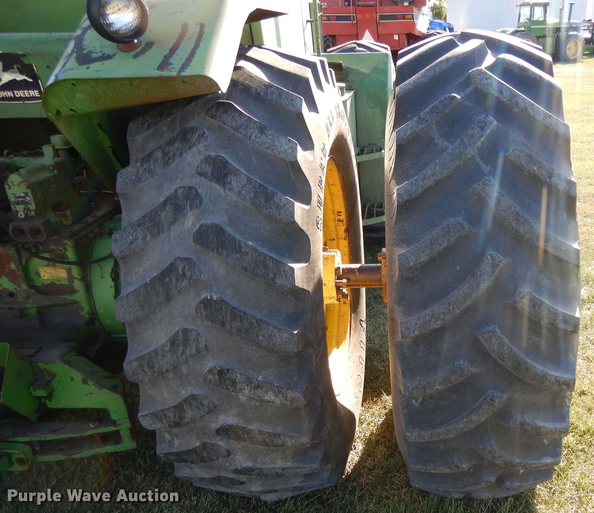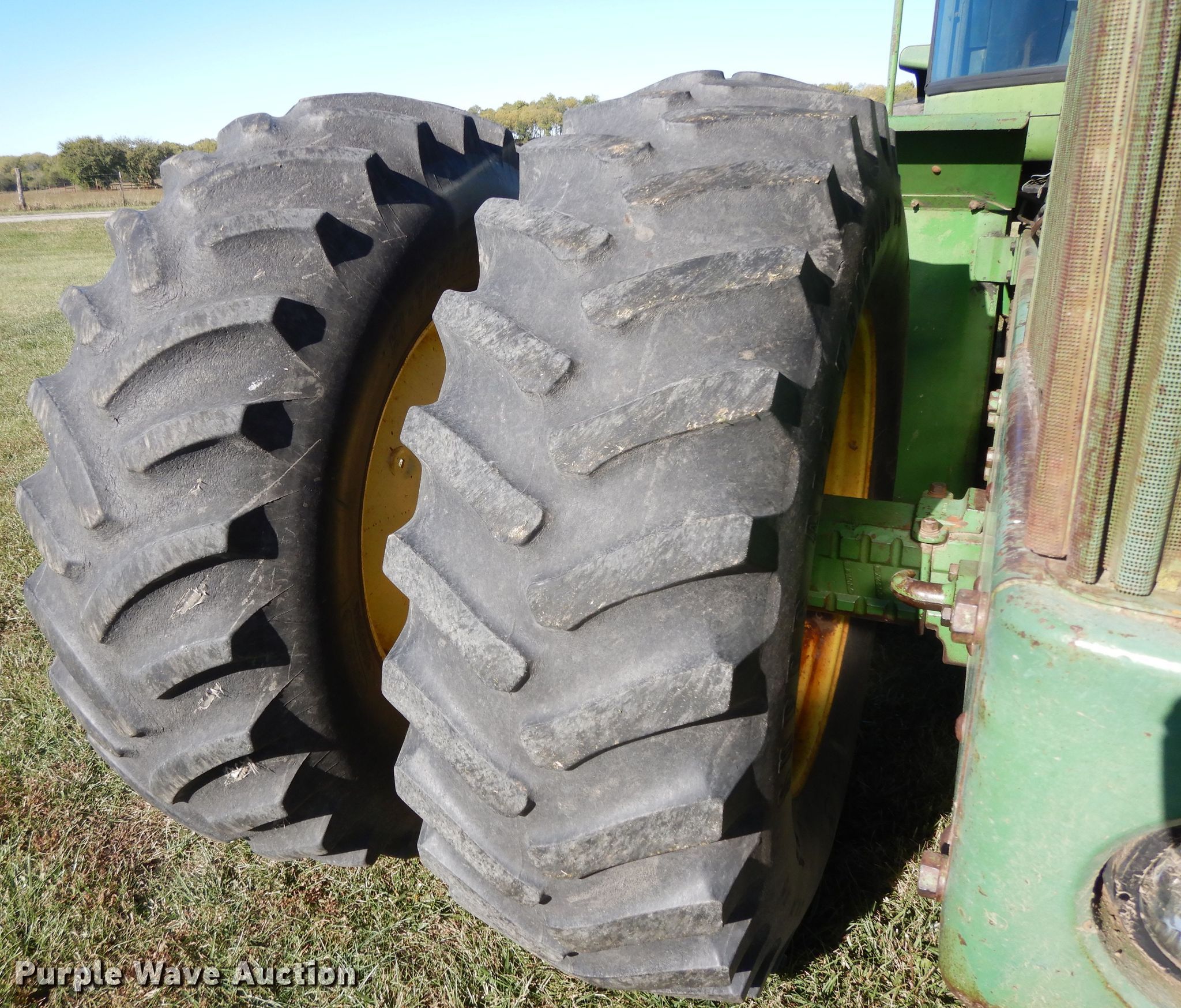 1978 John Deere 8630 4WD tractor. 3,754 hours on meter, Serial: 002798R. Engine Model: 6619-50 series, Cylinders: 6, Fuel type: Diesel. Transmission Quad-range, 16F - 4R, Differential lock. Operators station AC, Heat. Operational PTO: 1 3/4" 1000, Hydraulic remote sets Rear: 3. Tires Size: 20.8-34, Duals. Notes Rear lights broken. View repairs. Katzer Estate. 33800 NE 1800. Centerville, KS 66014
