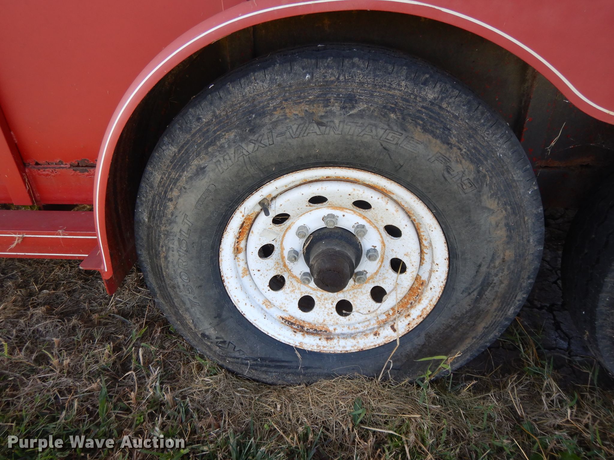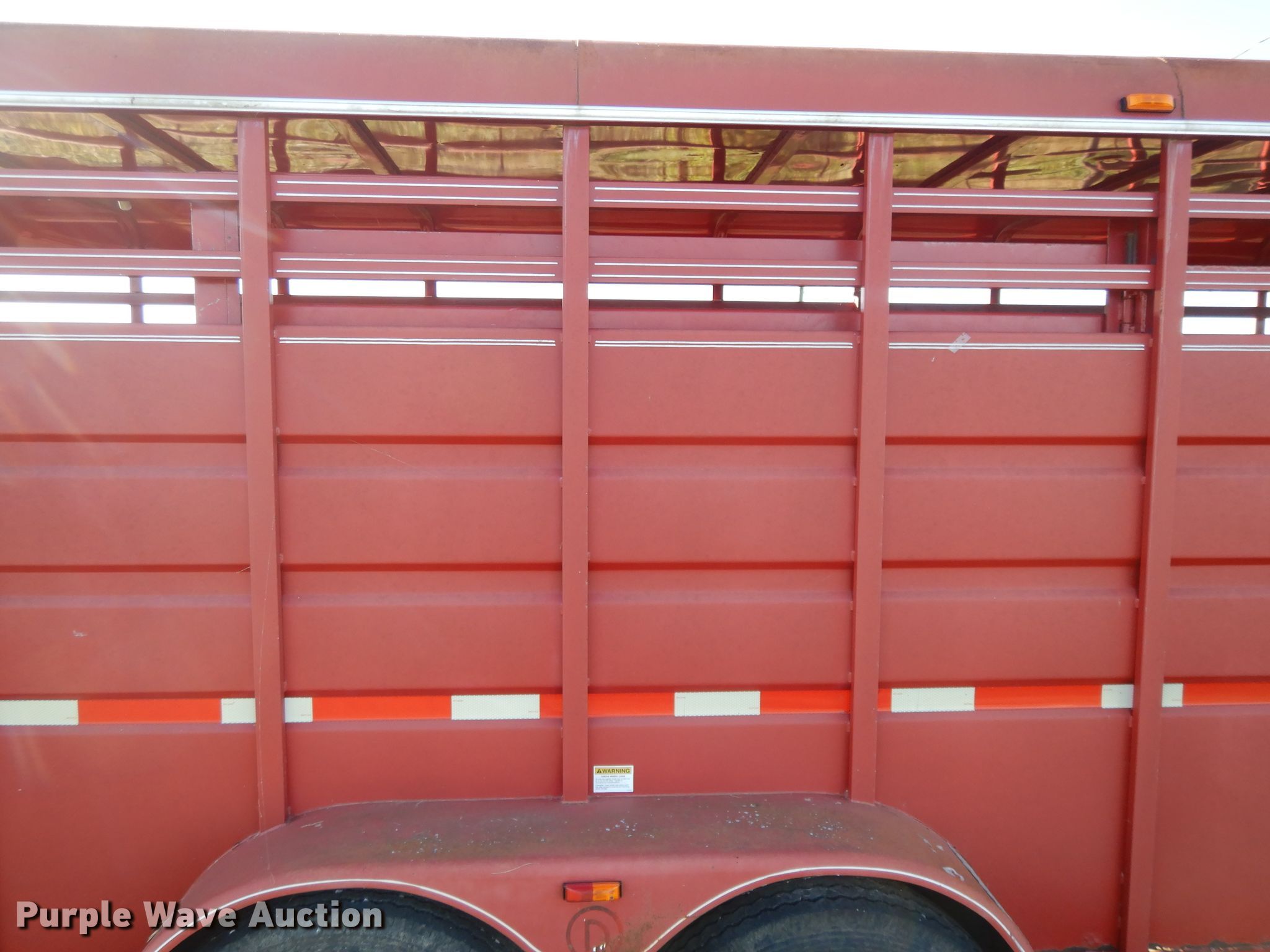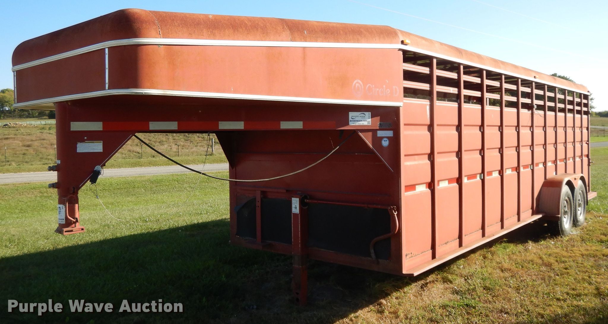 Purple Wave is selling a used Livestock Trailer in Kansas. This item is a 2005 Circle D livestock trailer with the following: 31'L x 8'W overall, 24'L x 78"W body, Center gate, Spring suspension, Electric brakes, Tandem axle, Steel wheels, 7.5-16 tires, GVWR 14,315 lbs, GAWR 7,000 lbs, Rust holes in lower corners