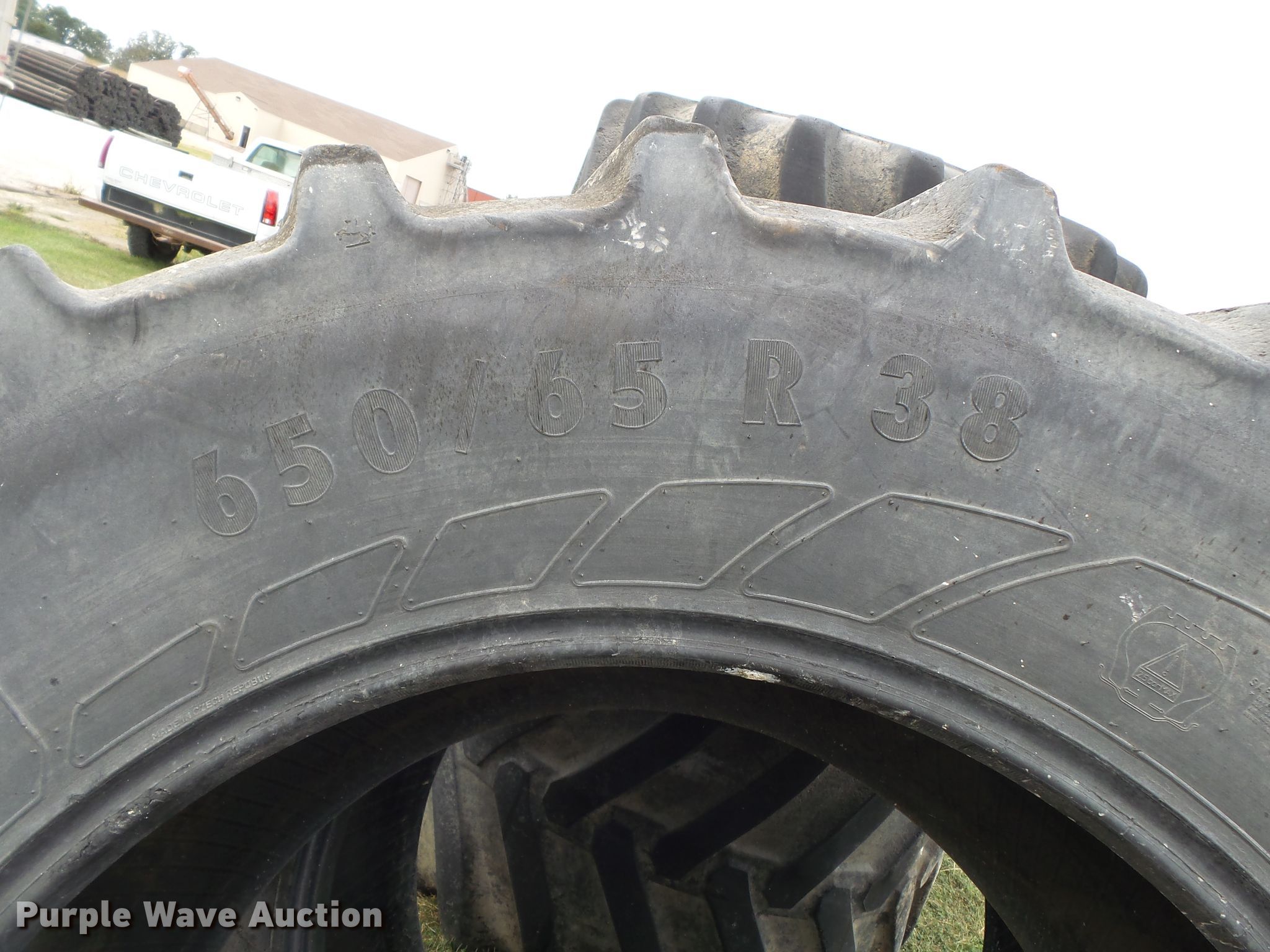 Purple Wave is selling a used Industrial Tires or Tracks in Missouri. This item is a (4) tires with the following: (2) 650/65R38, (2) 66x43.00-25