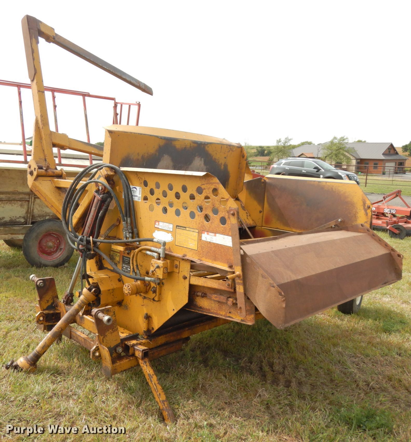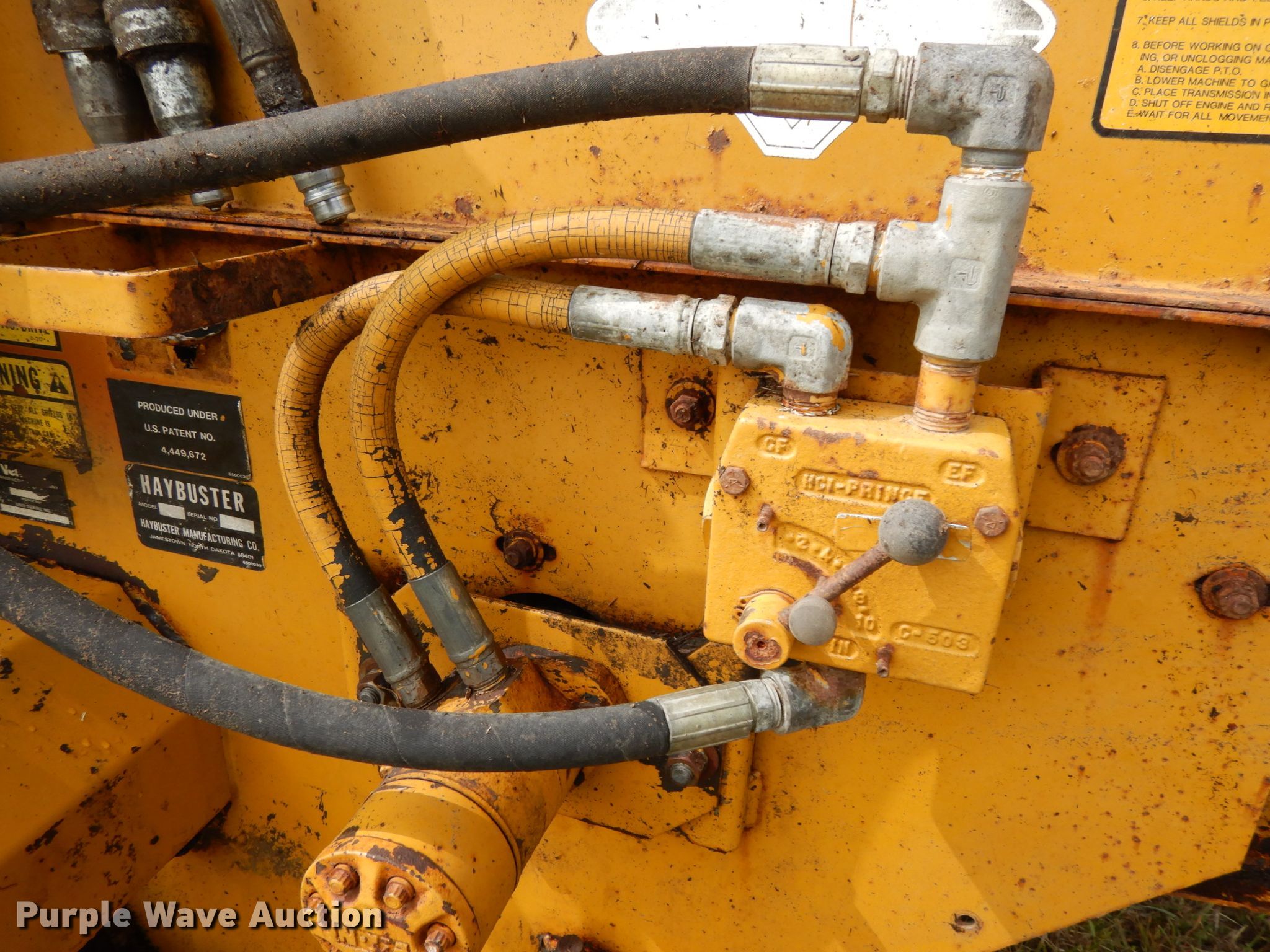 Purple Wave is selling a used Feed Mixer or Bale Processor in Nebraska. This item is a HayBuster 256 bale processor with the following: 6' bale opening, Lift arms, 1000 PTO, Three point hitch, 7.60-15SL tires, Tire damage, Tractor not included, Serial 871642