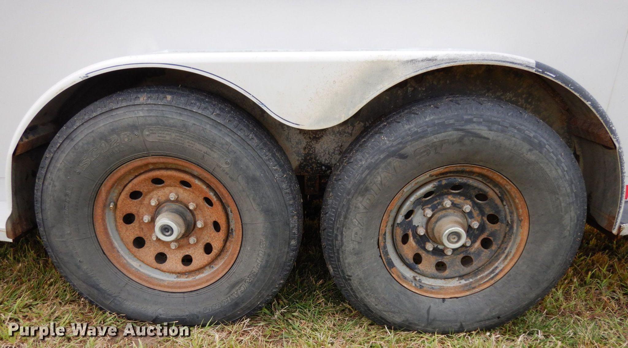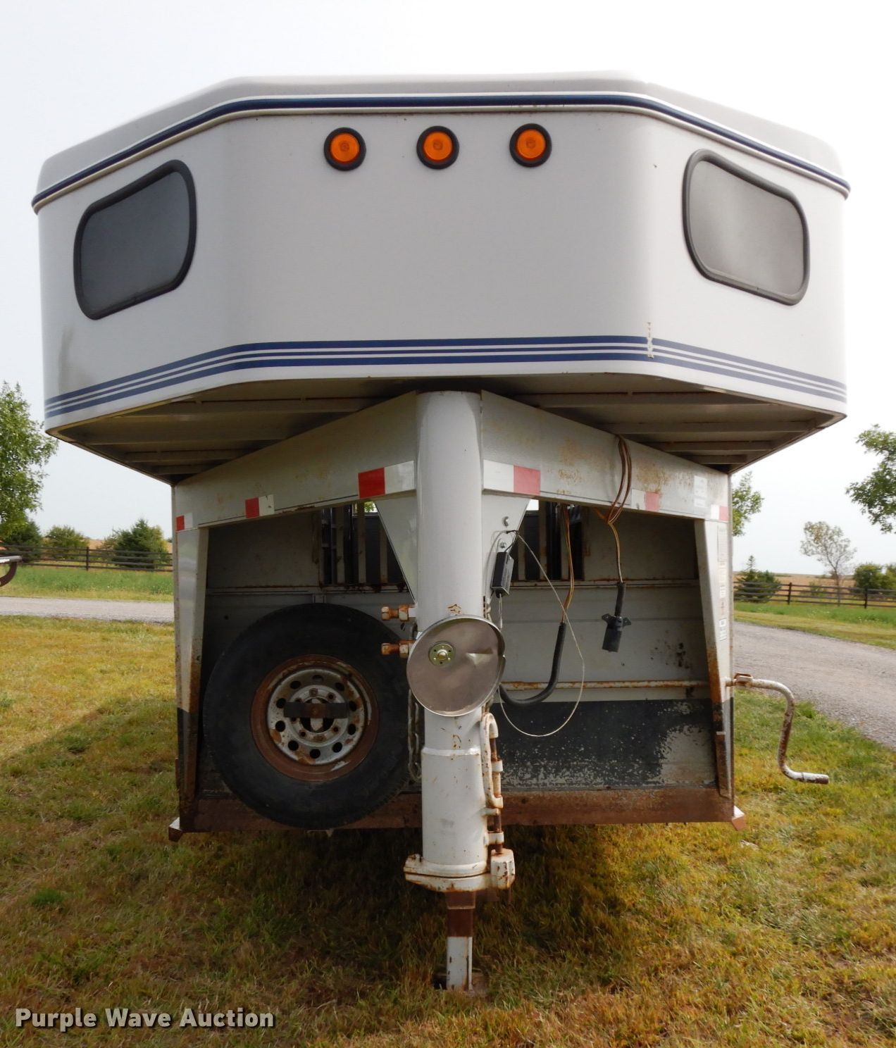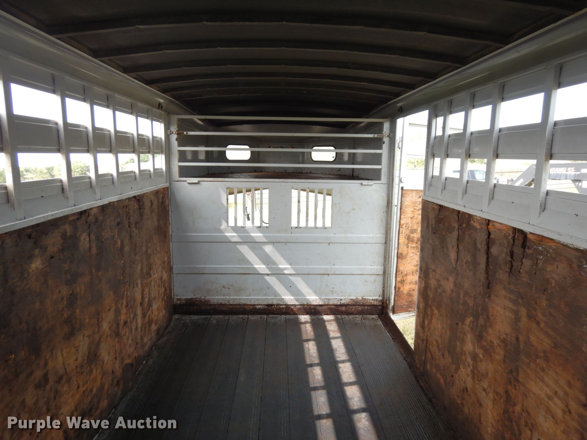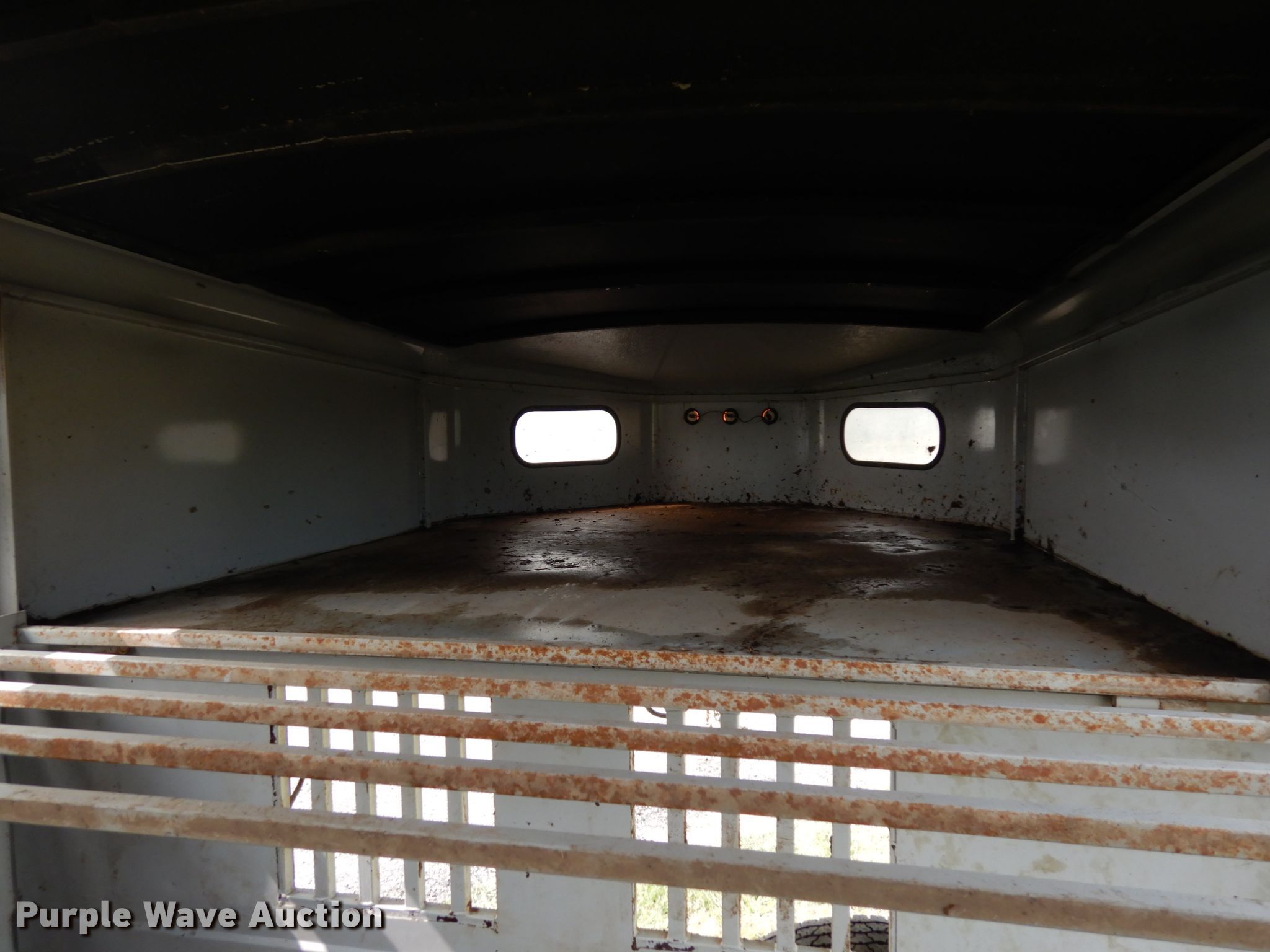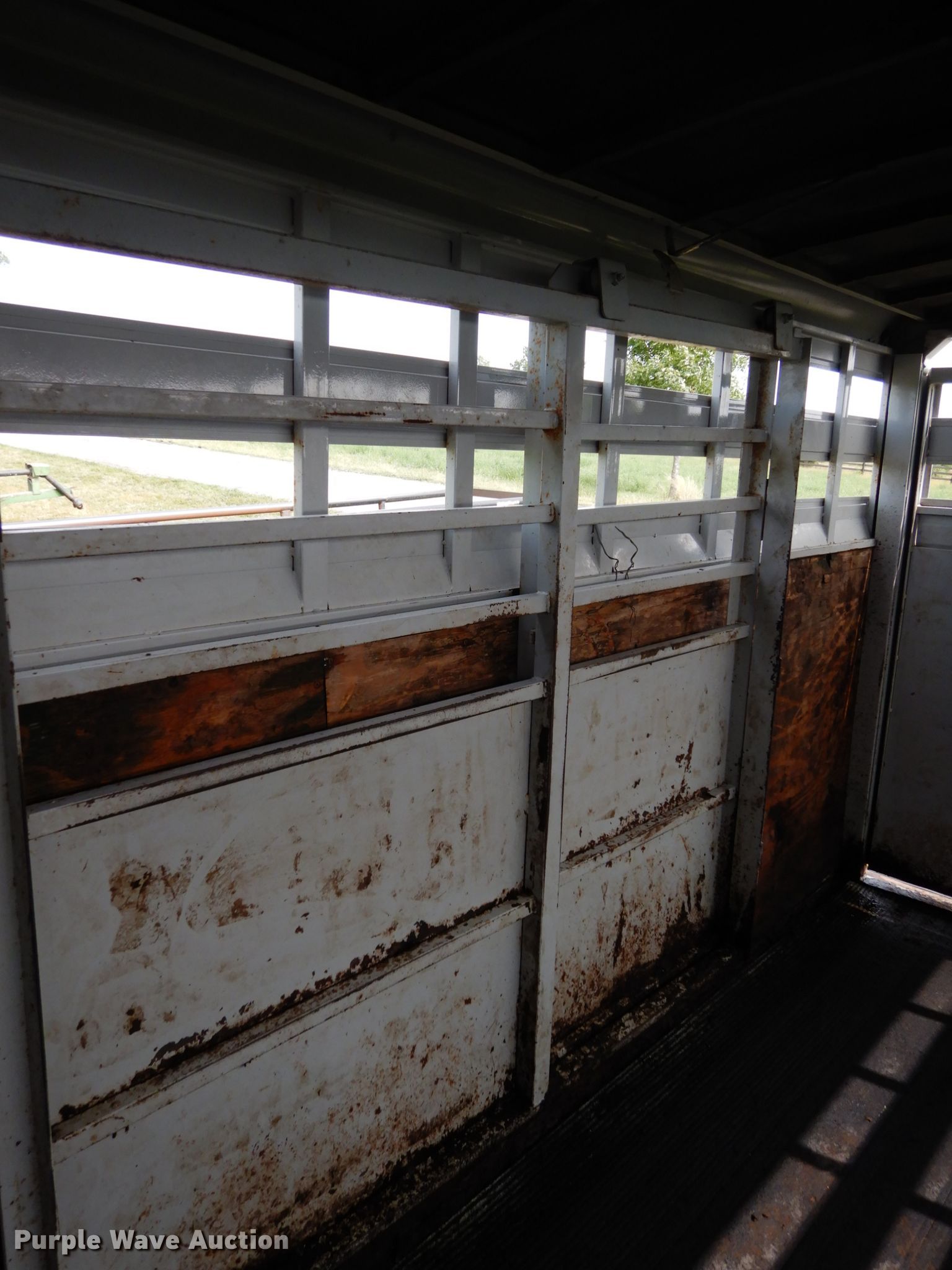 Purple Wave is selling a used Livestock Trailer in Nebraska. This item is a 2001 Titan Classic livestock trailer with the following: 27.5'L x 82"W overall, 20'L x 76"W body, Center gate, Single leg landing gear, Torsion suspension, Electric brakes, Tandem axle, Steel wheels, ST235/85R16 tires, GVWR 9,760 lbs, GAWR 4,880 lbs, Interior wood panels need to be replaced, Side door lower hinge rusted off
