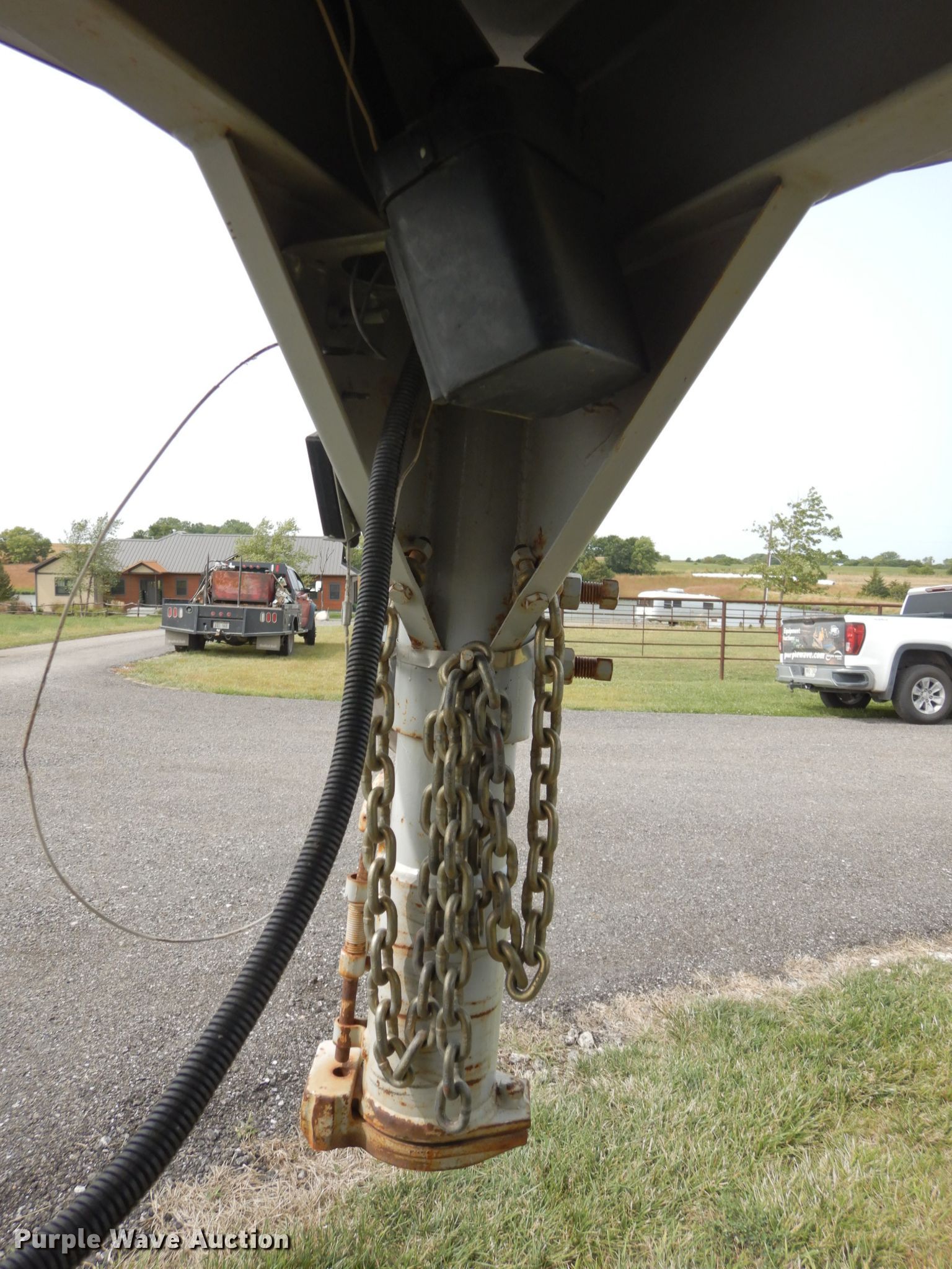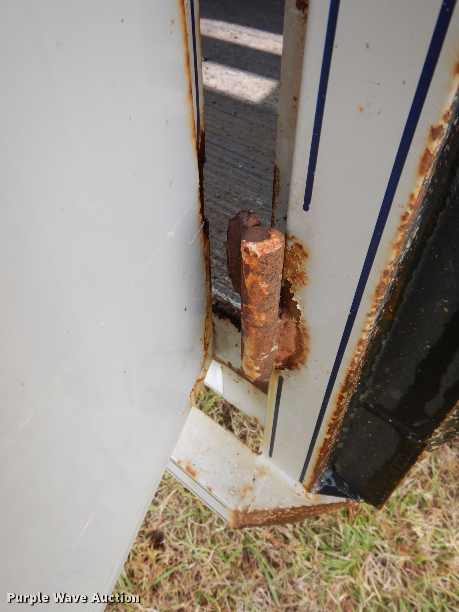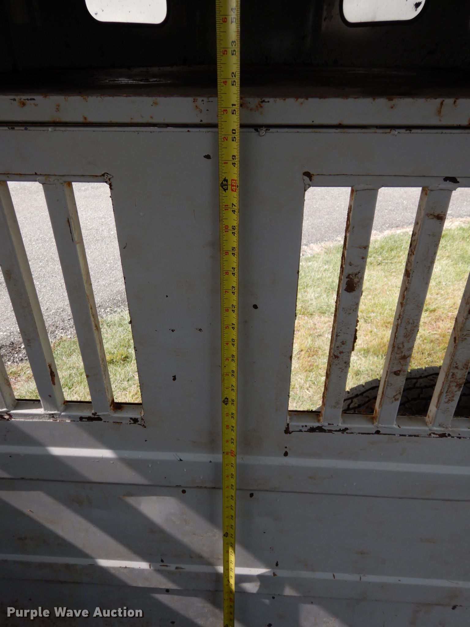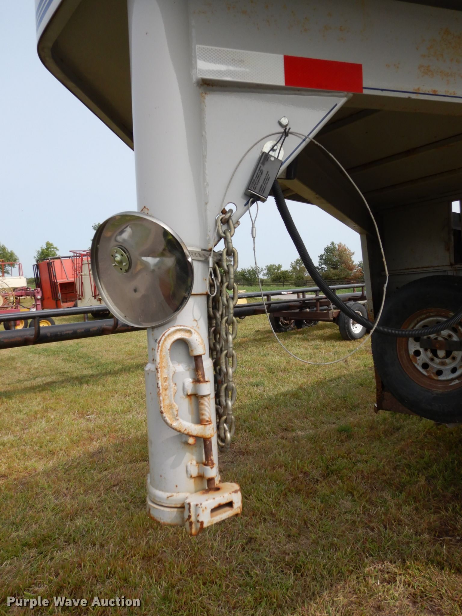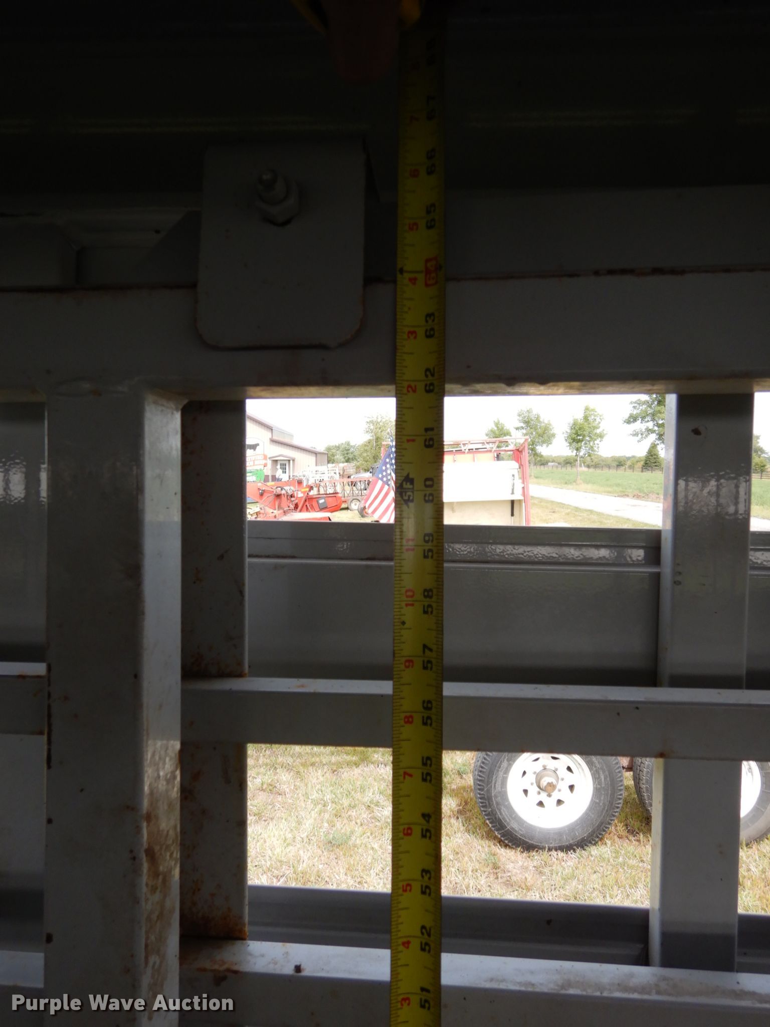 Purple Wave is selling a used Livestock Trailer in Nebraska. This item is a 2001 Titan Classic livestock trailer with the following: 27.5'L x 82"W overall, 20'L x 76"W body, Center gate, Single leg landing gear, Torsion suspension, Electric brakes, Tandem axle, Steel wheels, ST235/85R16 tires, GVWR 9,760 lbs, GAWR 4,880 lbs, Interior wood panels need to be replaced, Side door lower hinge rusted off