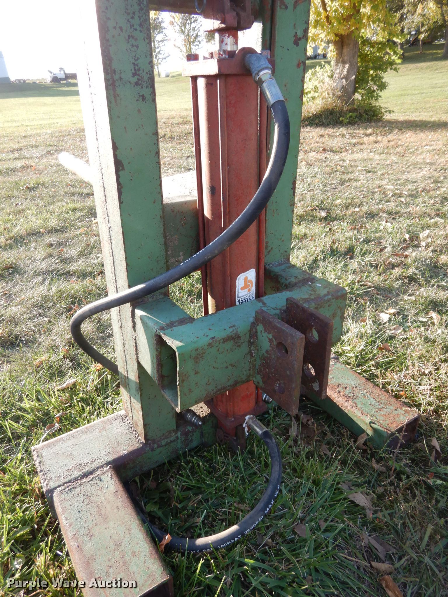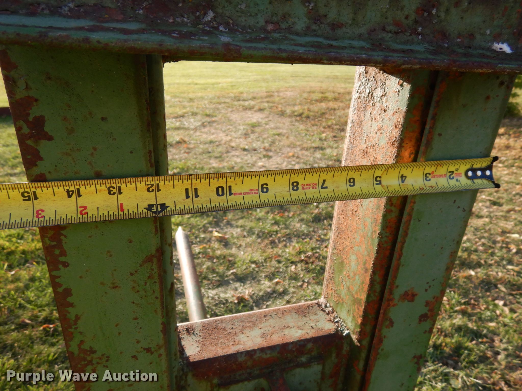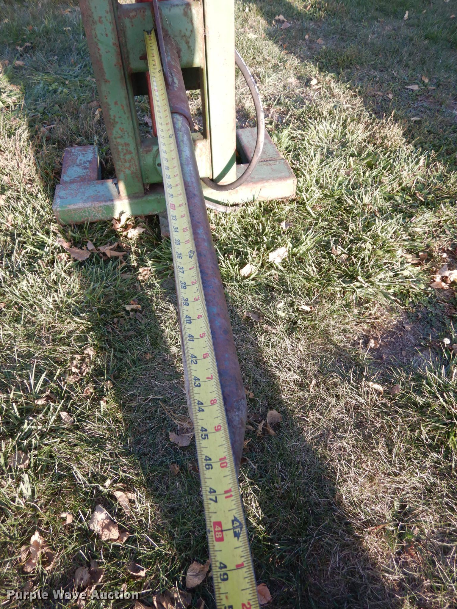 Purple Wave is selling a used Hay Handling in Iowa. This item is a Shop built bale spear with the following: Approx. 32"W x 5'H O.D., 46"L spear, 18"L spear, Three point