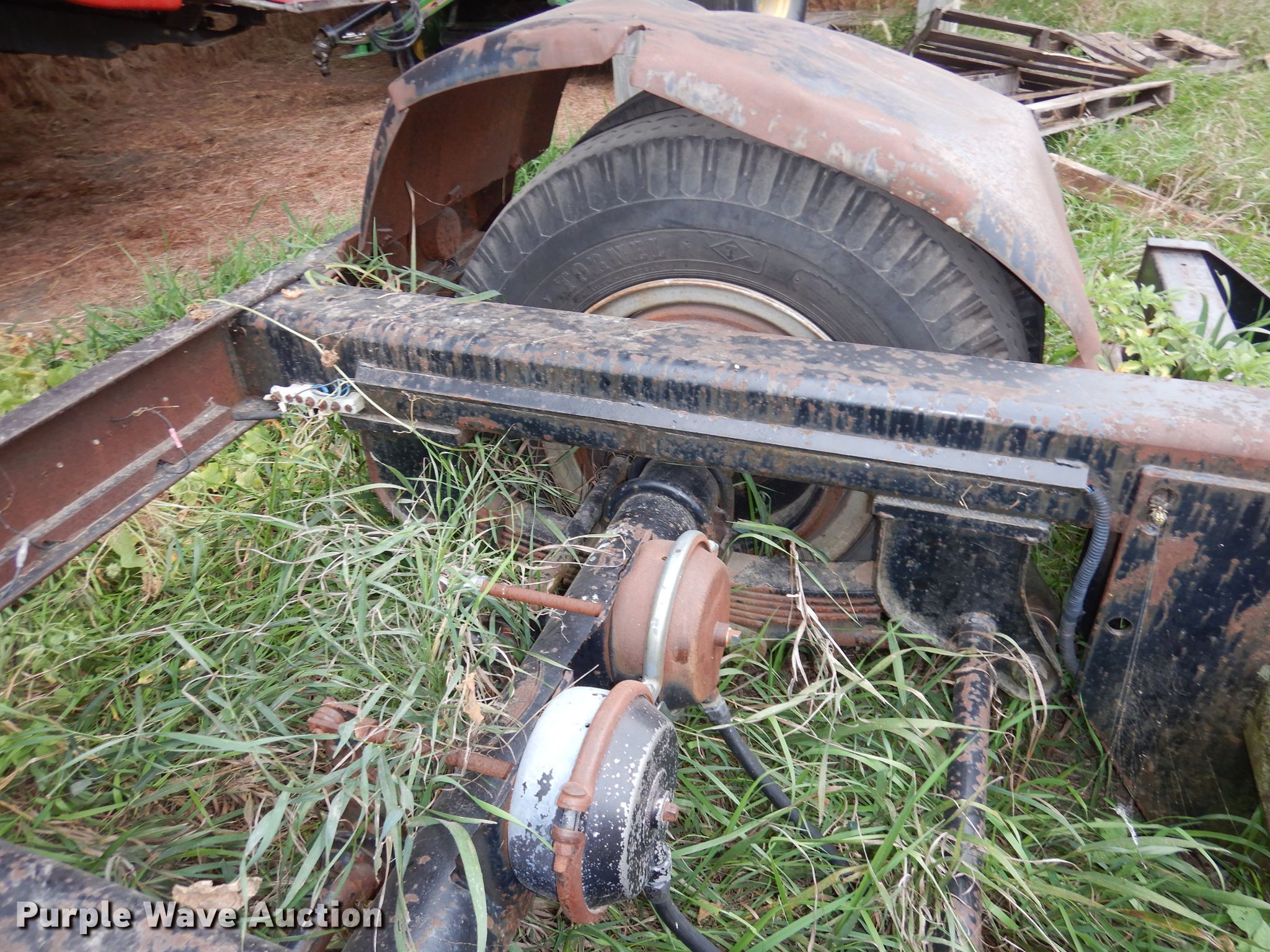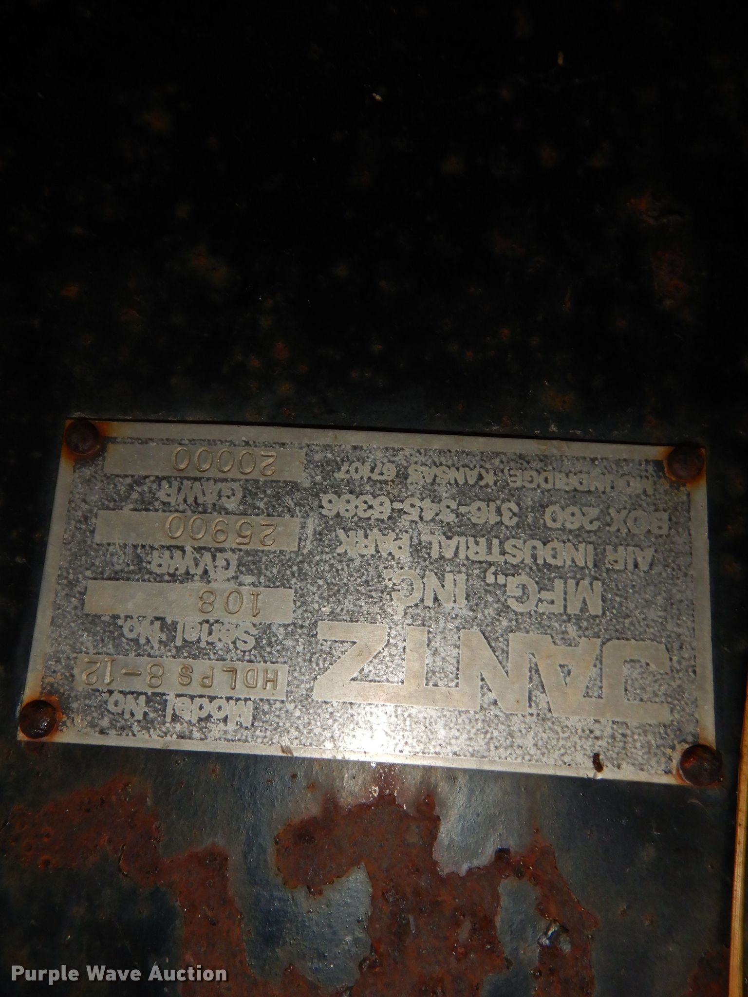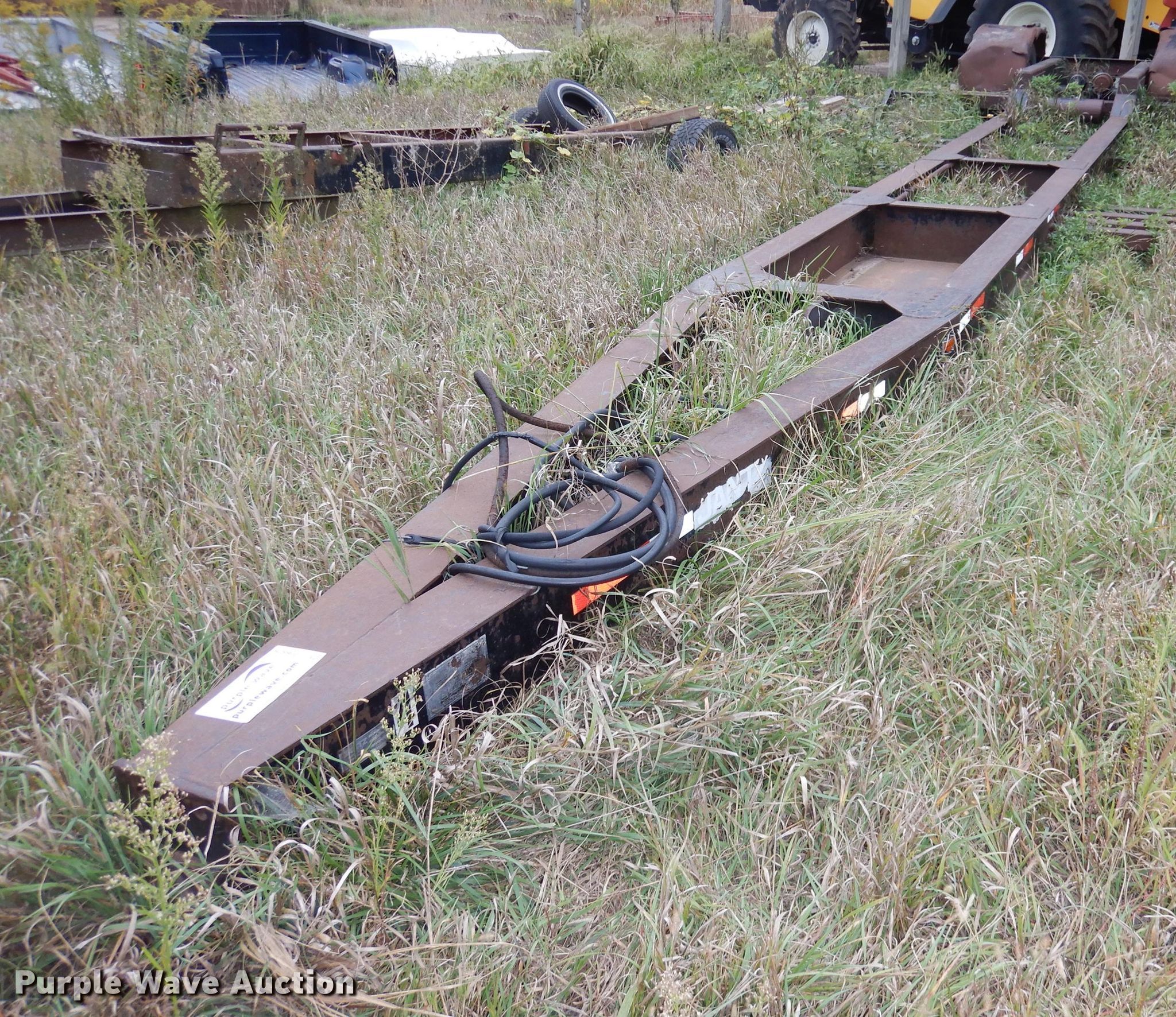 Purple Wave is selling a used Ag Equip. or Header Trailer in Kansas. This item is a 1983 Jantz HDLPS8-12 combine trailer with the following: 38'L overall, 8'W minimum width, Expandable side rails, Hydraulic lift cylinder, Spring suspension, Air brakes, Single axle, 10.00-20 tires, GVWR 25,900 lbs