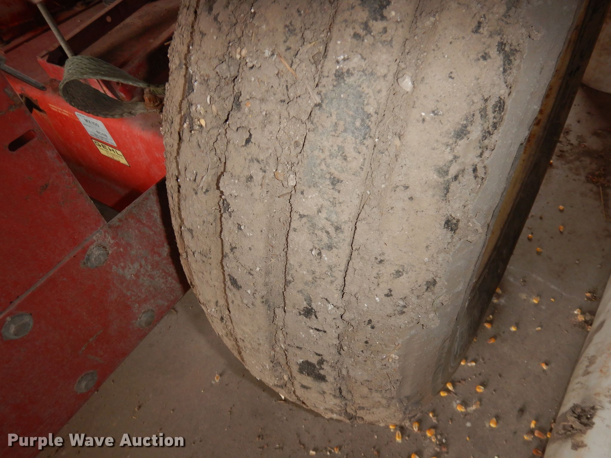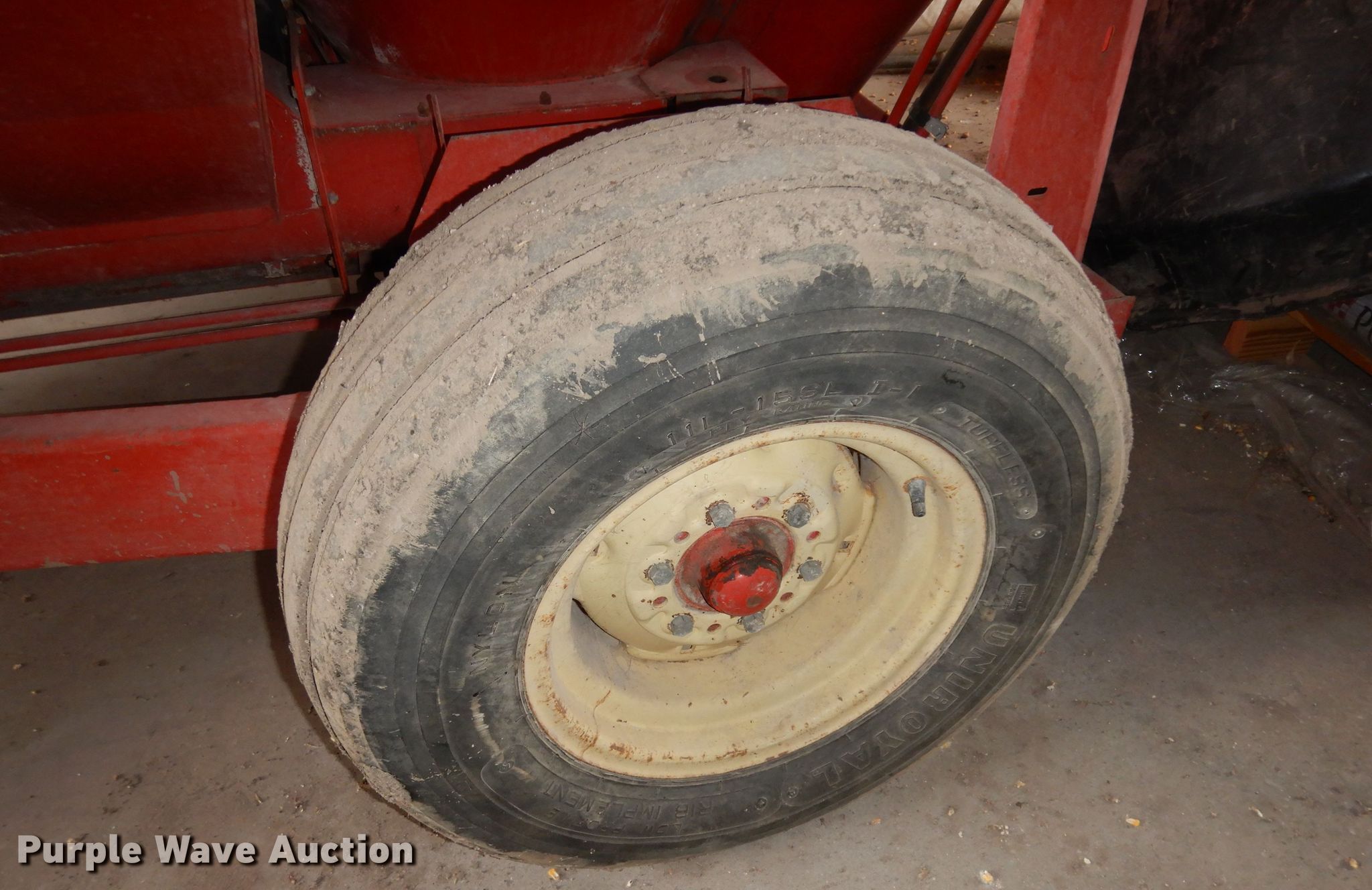 Gehl 100 feed grinder/mixer. Chassis. Axles: Single, PTO: 540. Operational Feed mixer Central City, Scales Model: 400, Augers: 2, 17'L x 7" diameter, 5'L x 10" diameter, Discharge: Side, Chute: Manual, Hammer Mill, (3) concave screens. Tires Rear: 11L-15. Notes Original hammer blades included. Westmoreland, KS 66549