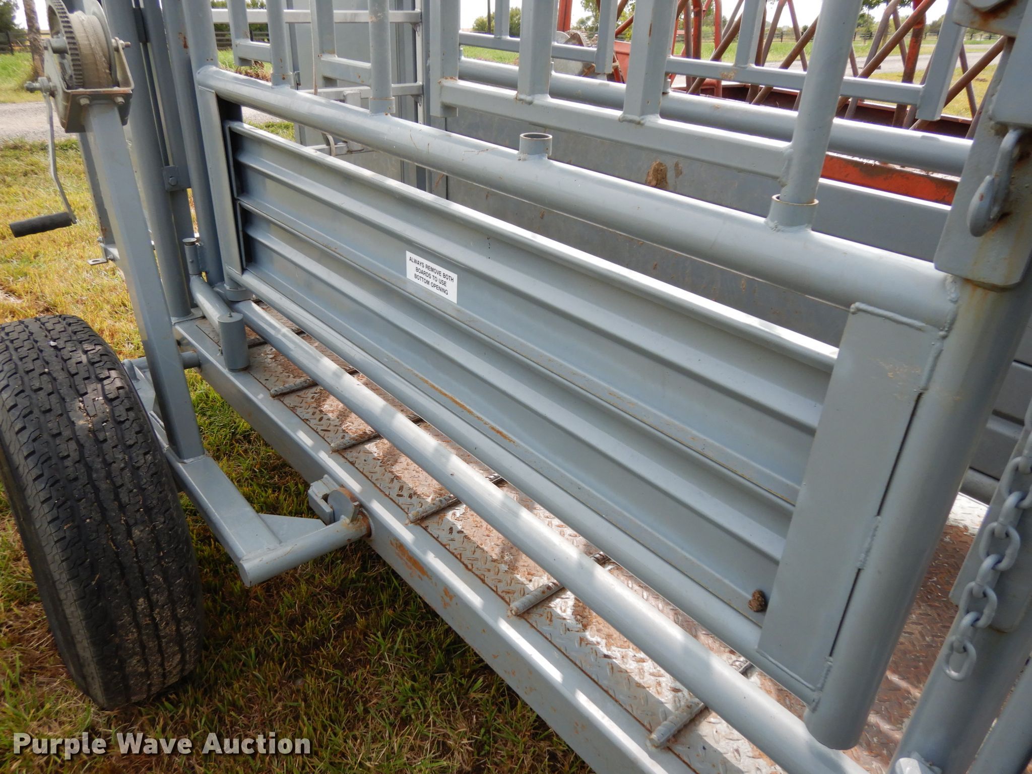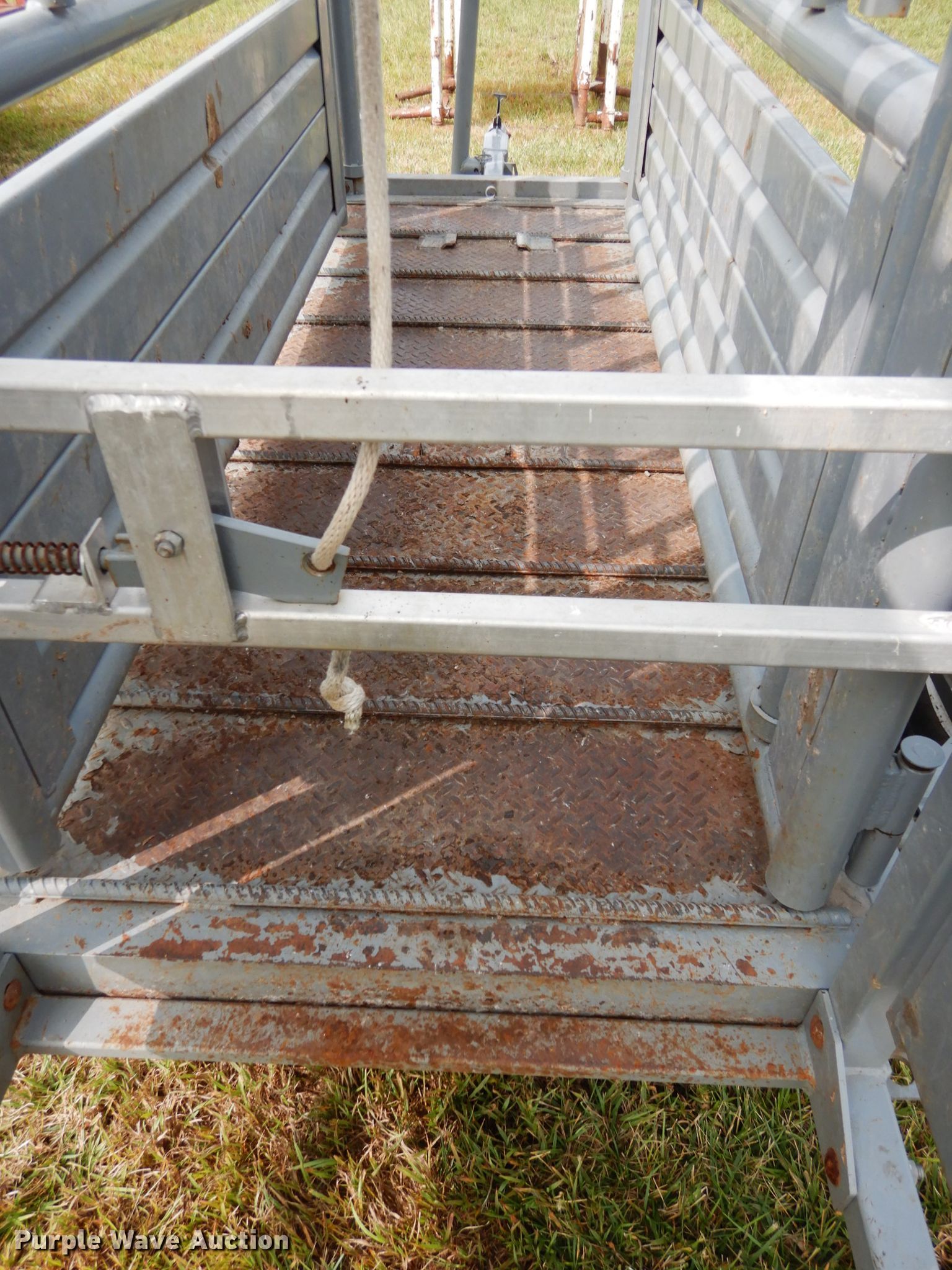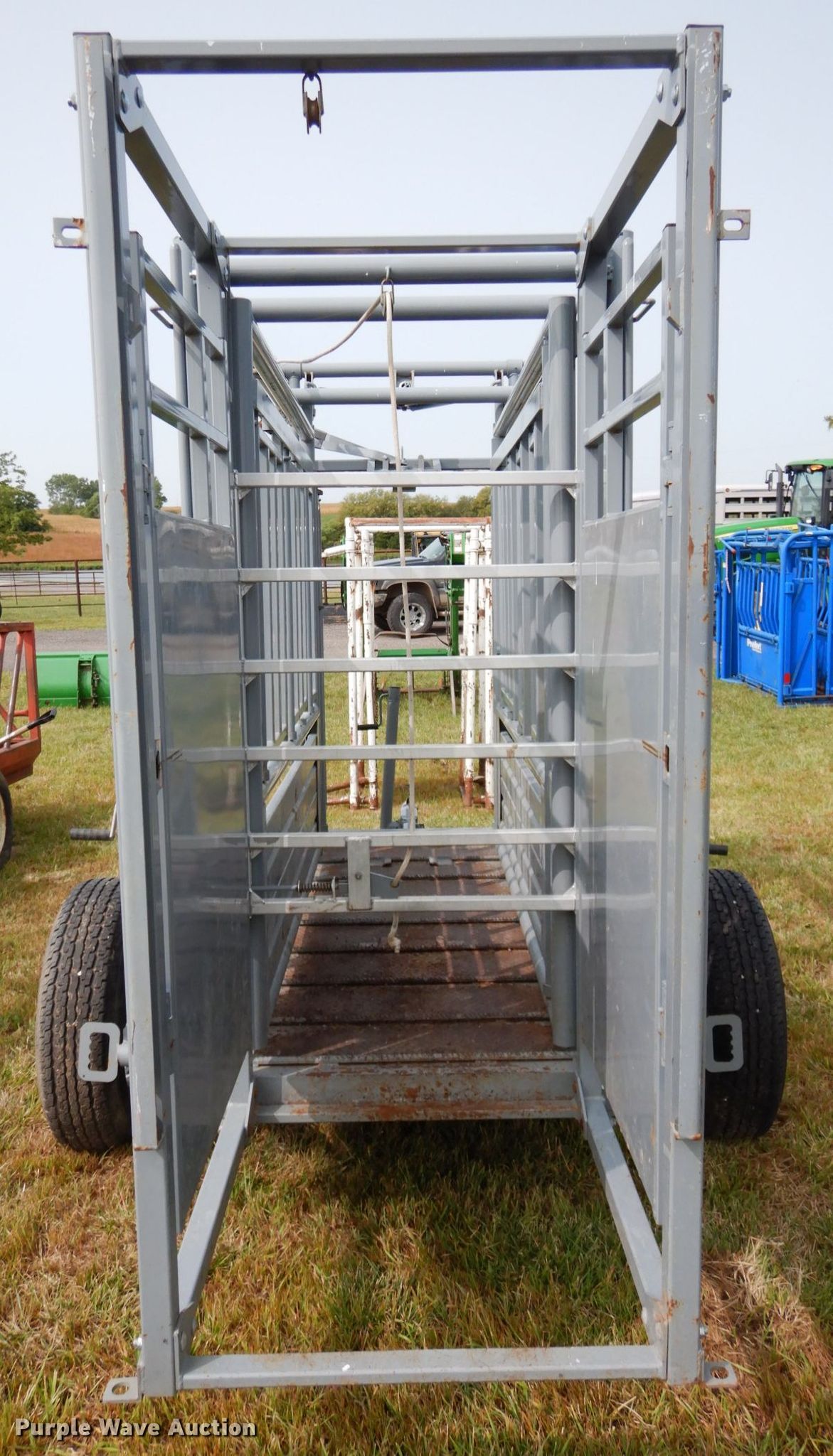 Purple Wave is selling a used Livestock Equip. in Nebraska. This item is a Pearson G9 squeeze chute with the following: Model 16CM01, Manual winches, Lift and lower deck, 2" ball hitch, Single jack stand, ST235/80R16 tires, Serial 6167