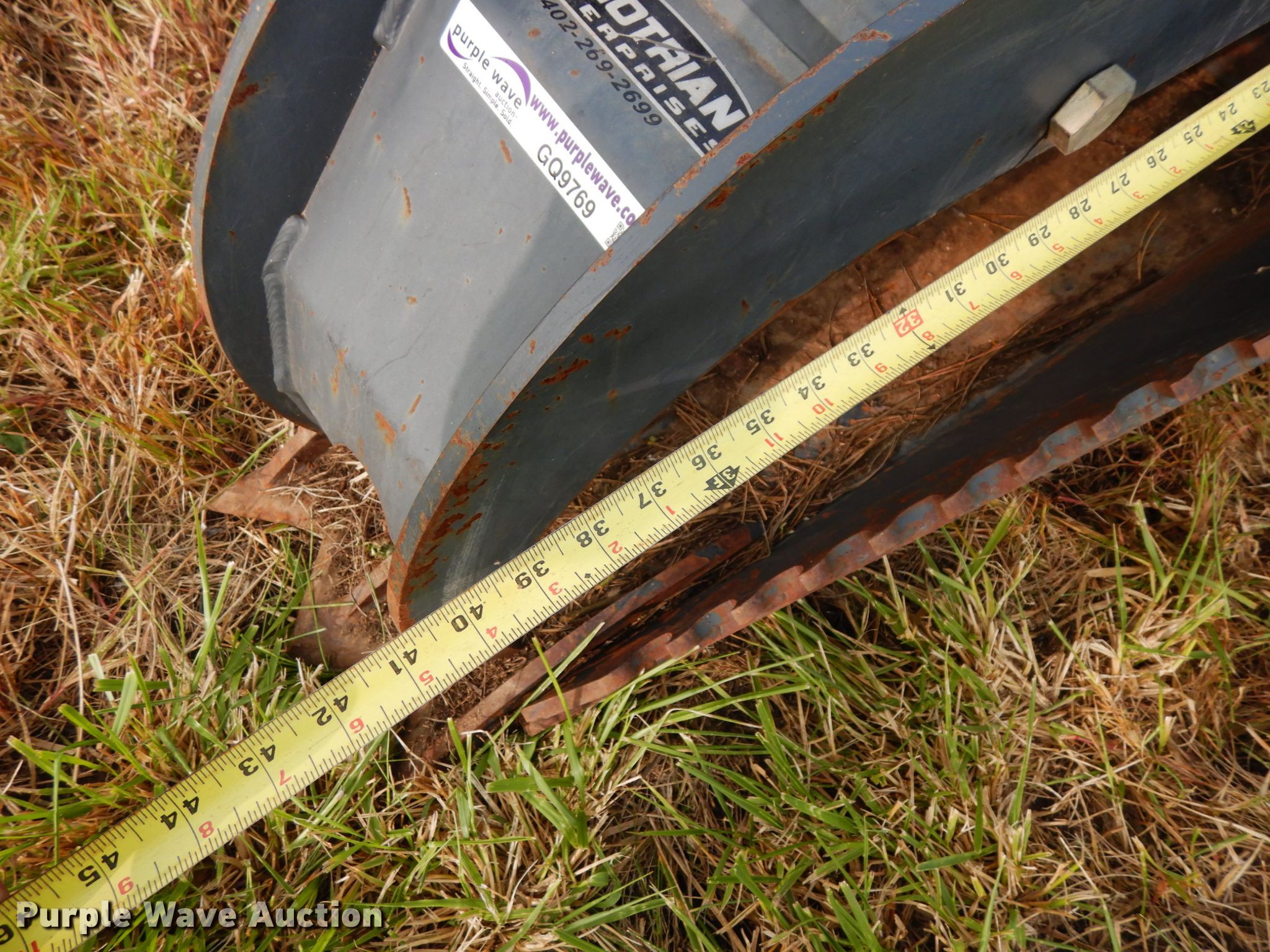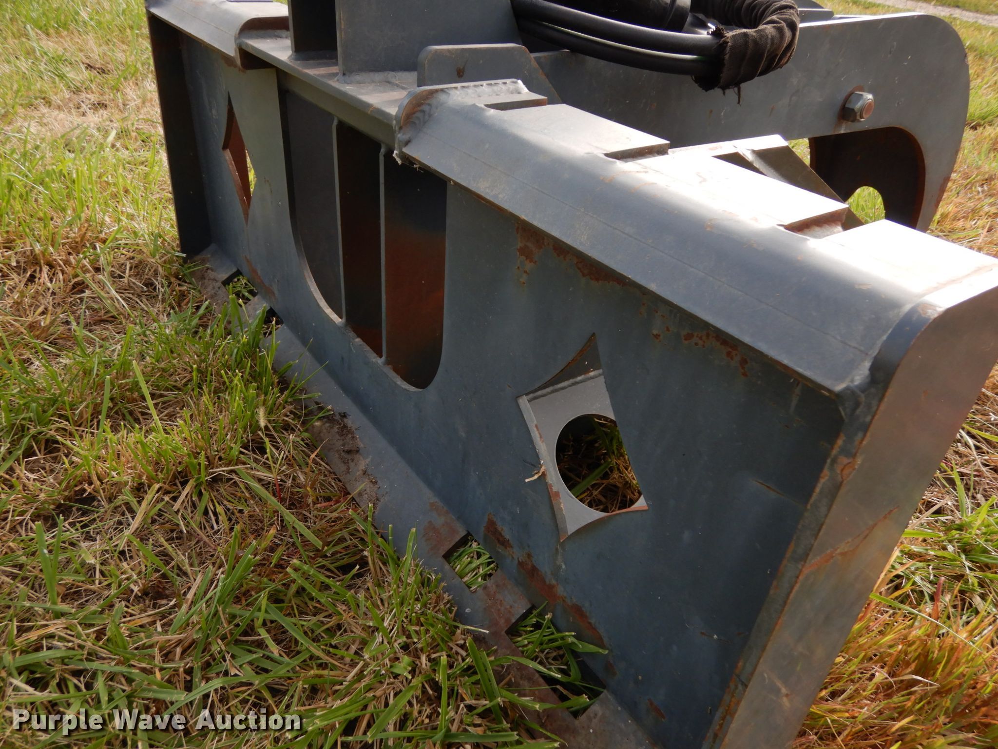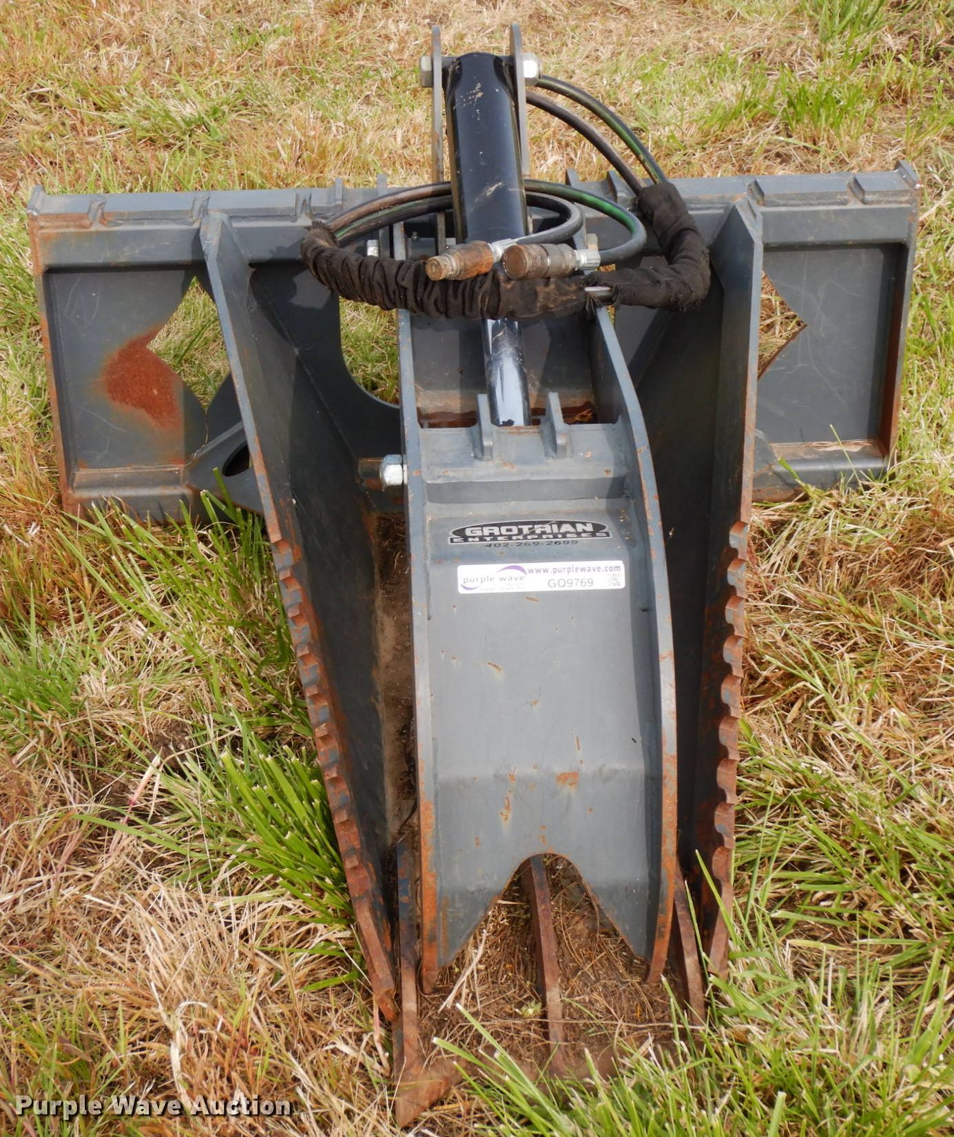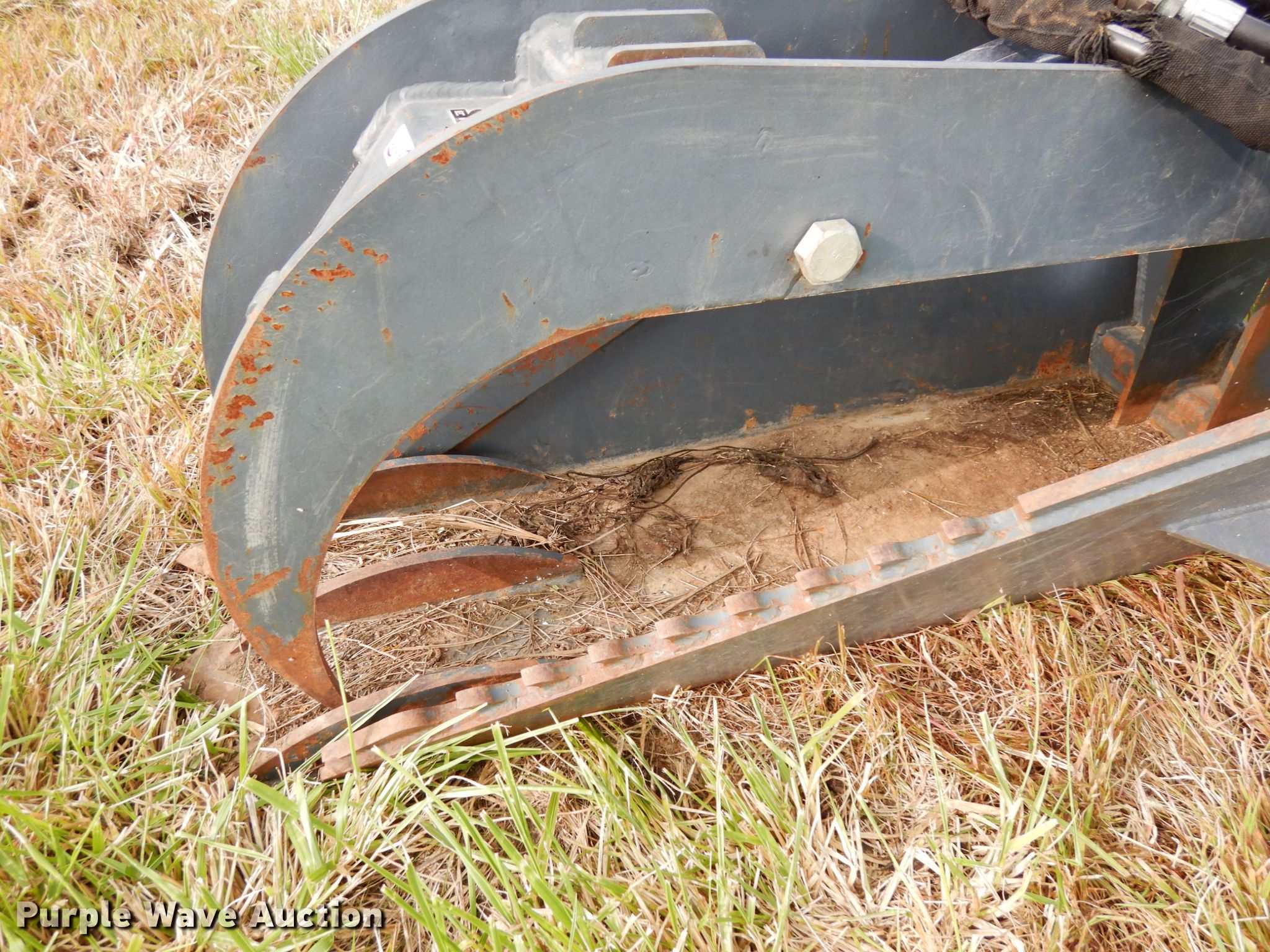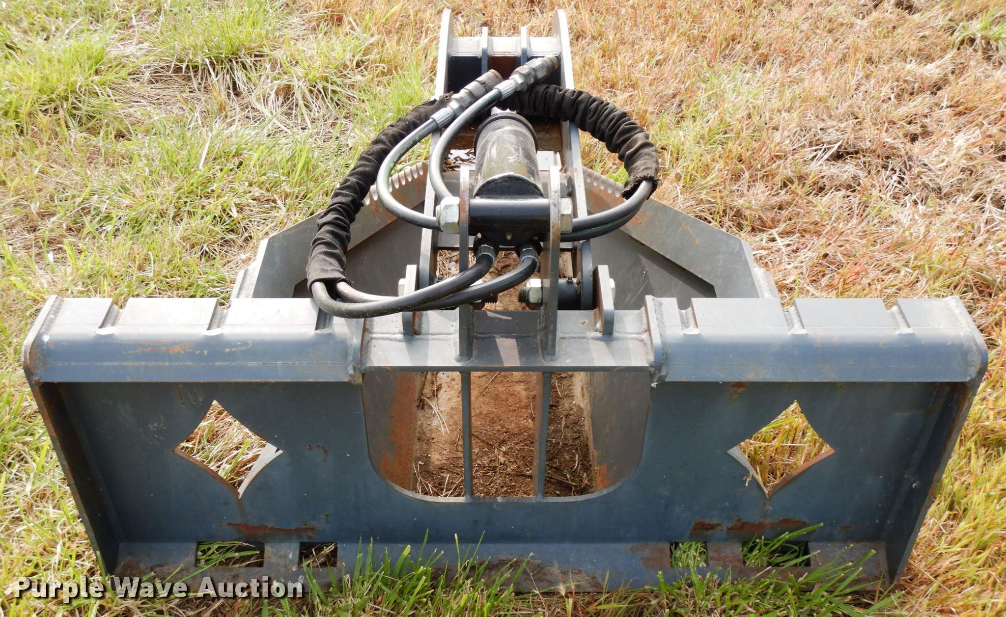 Purple Wave is selling a used Skid Steer Attach. in Nebraska. This item is a Grotrian Enterprises skid steer root grapple bucket with the following: Approx. 21"W serrated blade, Approx. 42"L x 12"W pointed edge, Approx. 9"W nose grapple