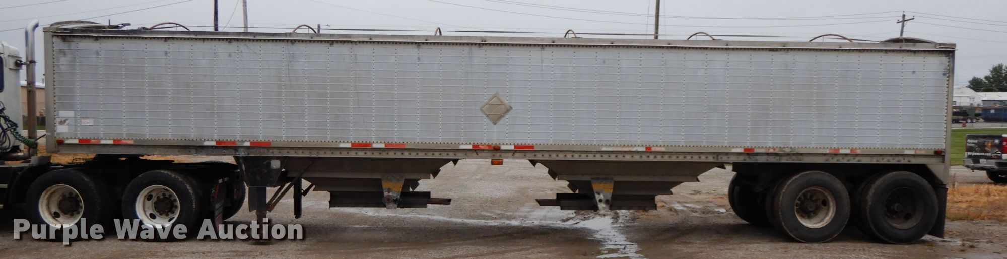 Purple Wave is selling a used Grain or Commodity Trailer in Missouri. This item is a 1988 Wilson DWH-200 double hopper bottom grain trailer with the following: 41'L x 96"W overall, 66" side height, Manual trap gates, Aluminum construction, Dual leg two speed landing gear, Spring suspension, Air brakes, Tandem axle, Steel wheels, 11R22.5 tires