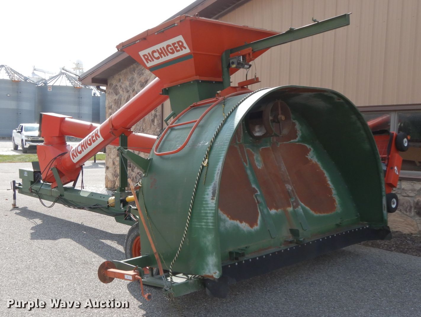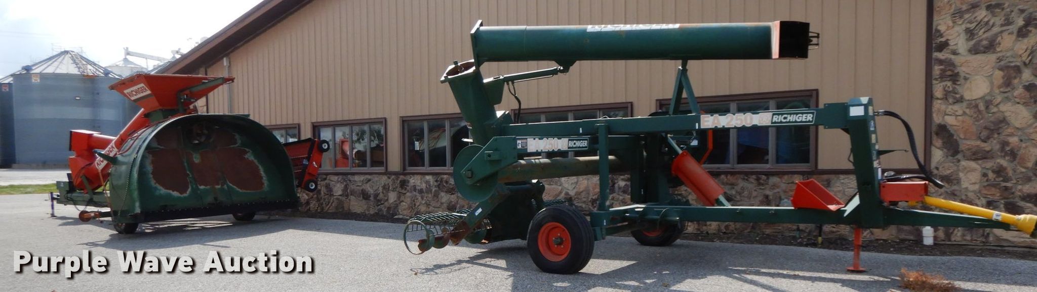 Purple Wave is selling a used Other Grain or Fertilizer Handling in Missouri. This item is a Richiger grain bagger and grain bag unloader with the following: Truck unloader grain bagger, Model R9, Swing-out hopper, Dump hopper, 12" auger, 115"W bag opening, 14" unloading auger, 540 PTO, Jack stand, P215/75R15 tires, Unit# 103, Serial C, Grain bag unloader, Model EA250, 14" unloading auger, 14' bag reel, 10'W auger, (2) 24" auger extensions, 540 PTO, 11L-15 tires, Unit# 25, Serial B