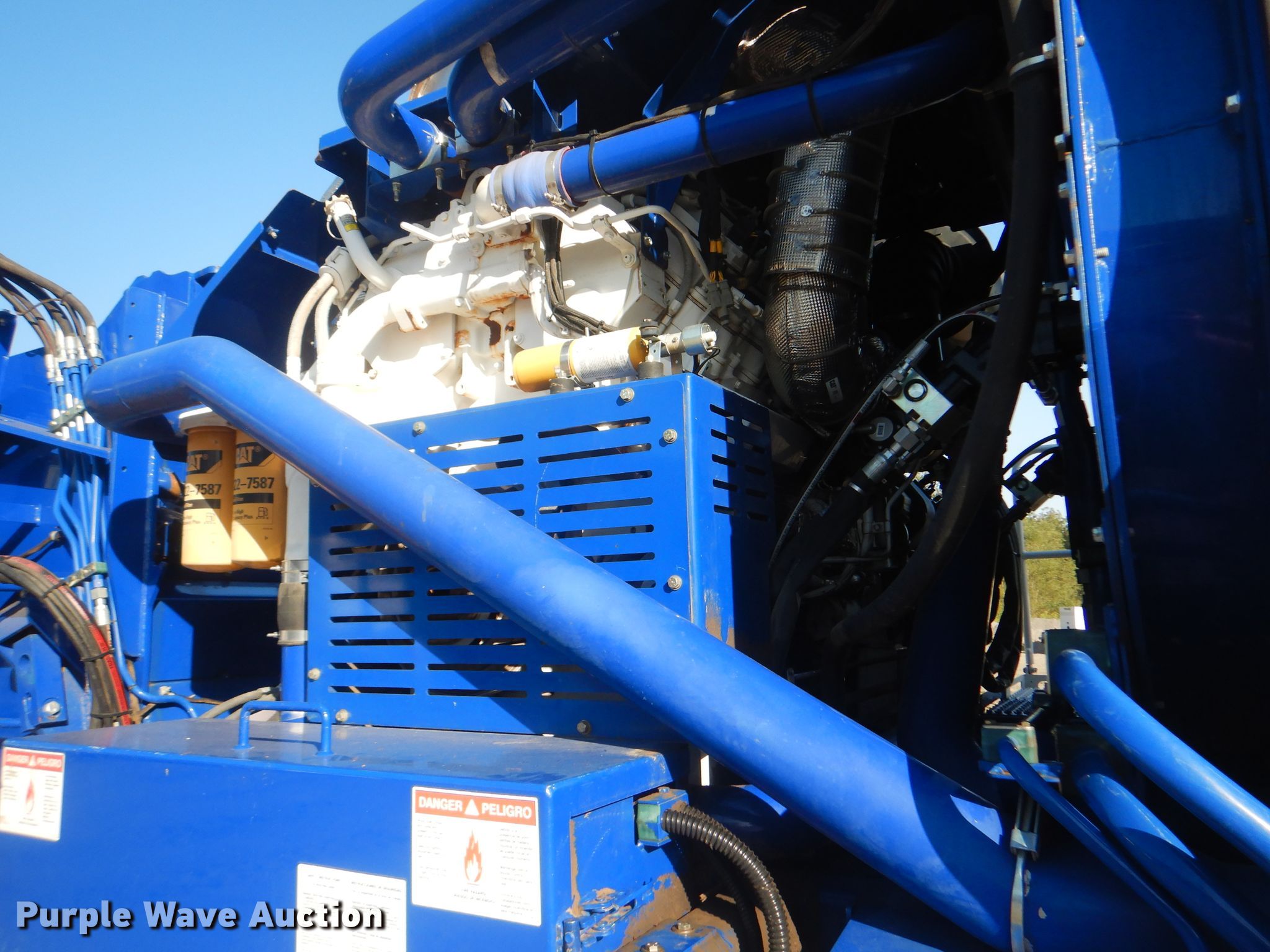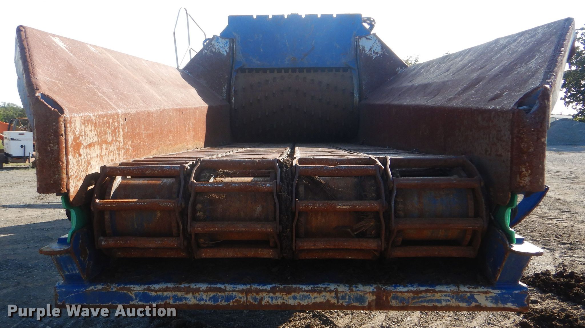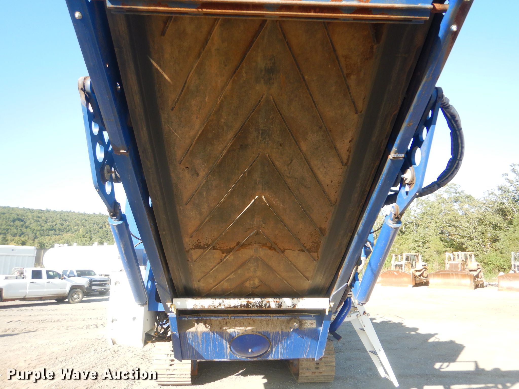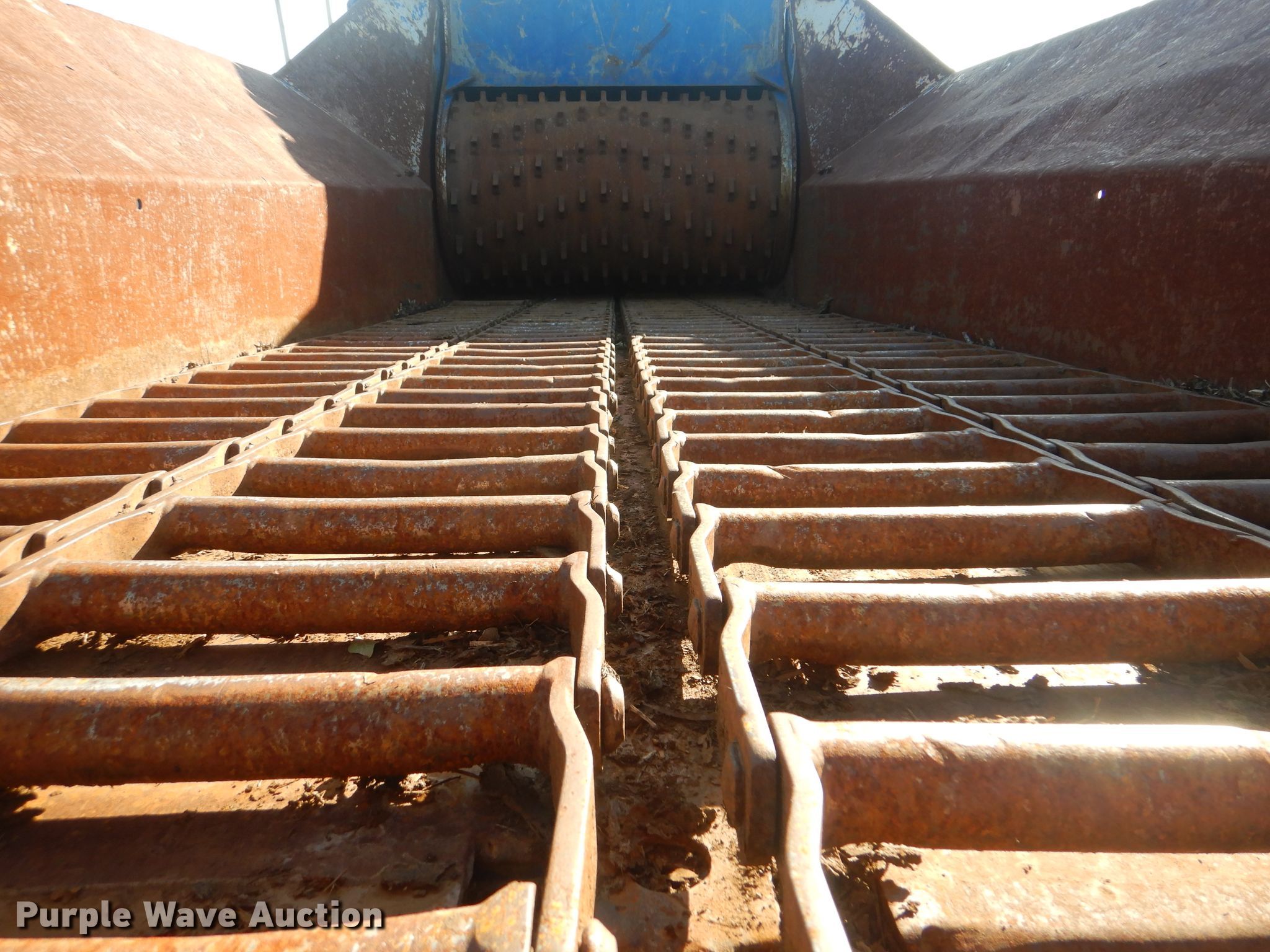 Purple Wave is selling a used Wood Grinder in Oklahoma. This item is a 2018 Peterson 5710D horizontal grinder with the following: 587 hours on meter, Caterpillar C27 27.0L 12 cylinder diesel engine, 57'10"L x 11'5"W x 16'10"H, 14'7"L x 5'W x 7'6"H hopper, 7 3/8" x 40" diameter rotor, (4) grates, 60"W discharge conveyor, Remote, 24"W triple grouser track pads, Serial 40D-195-2432