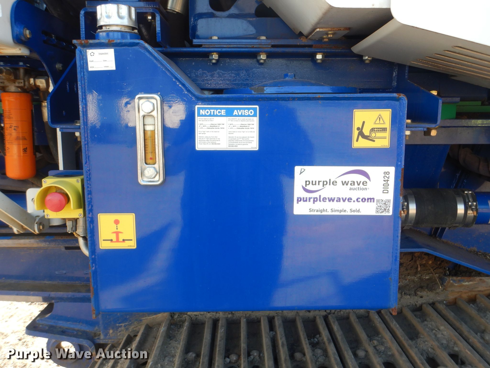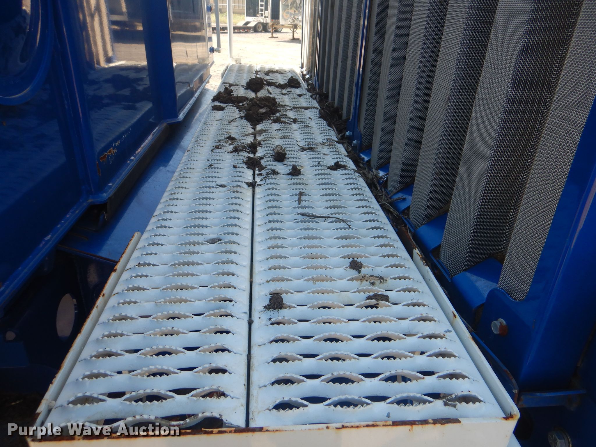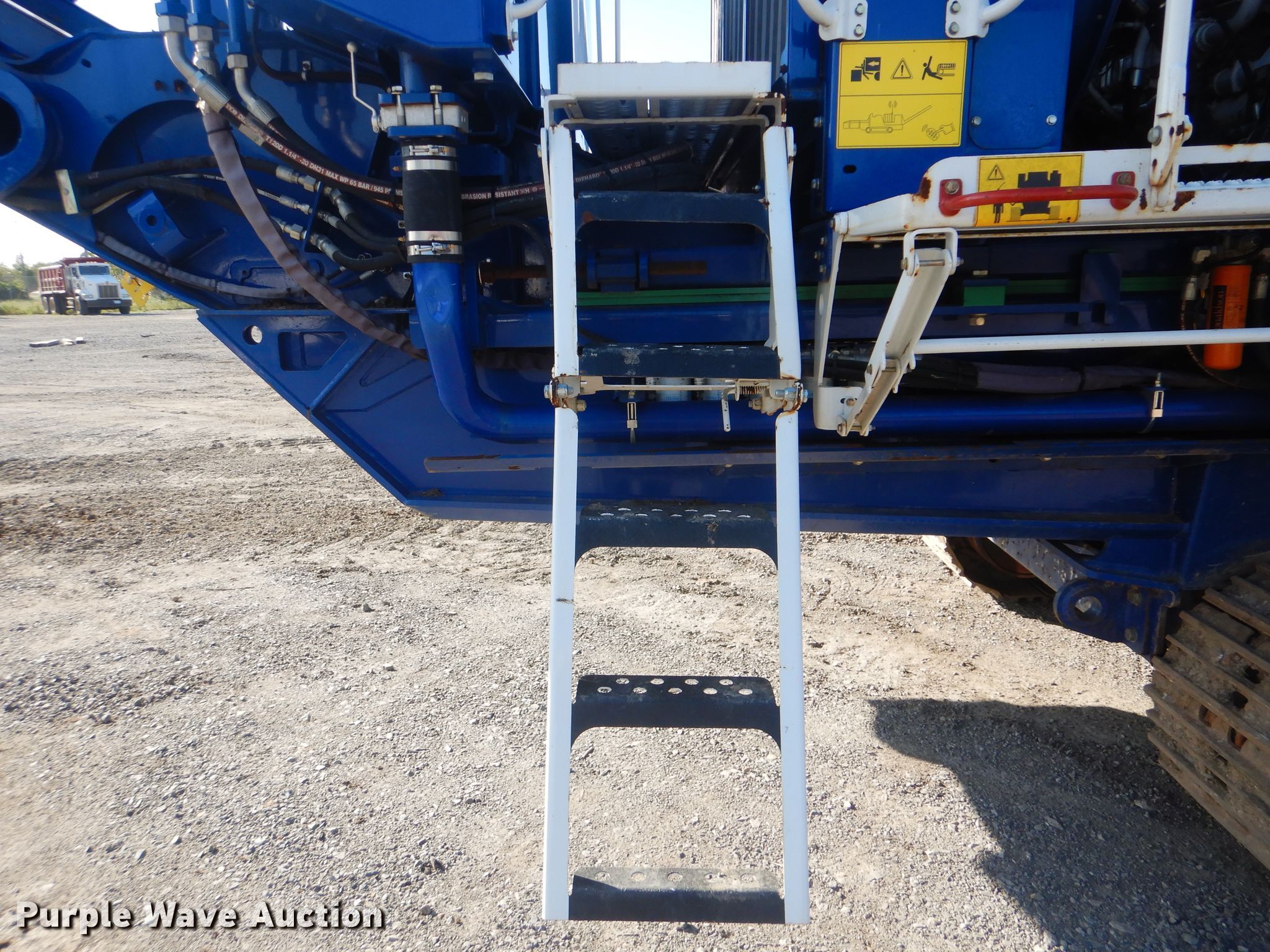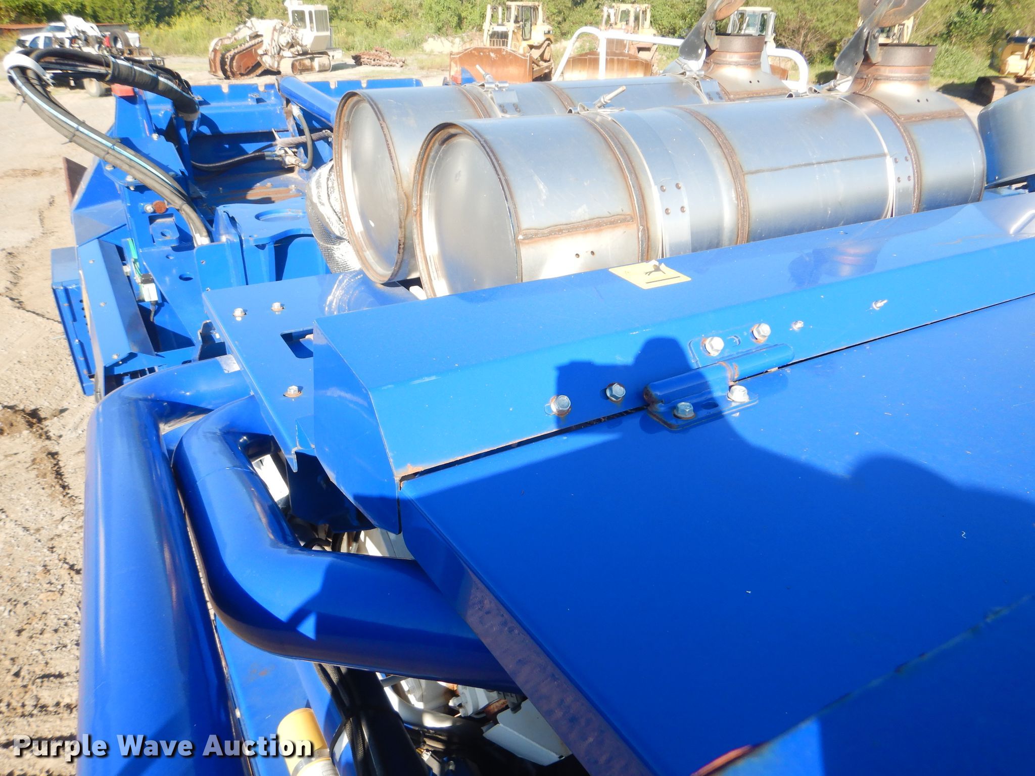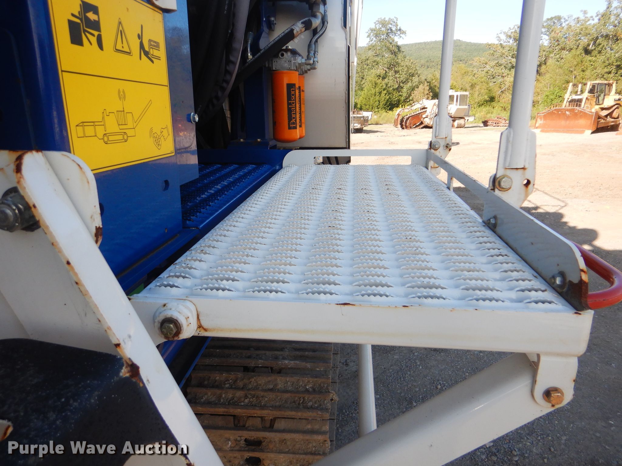 Purple Wave is selling a used Wood Grinder in Oklahoma. This item is a 2018 Peterson 5710D horizontal grinder with the following: 587 hours on meter, Caterpillar C27 27.0L 12 cylinder diesel engine, 57'10"L x 11'5"W x 16'10"H, 14'7"L x 5'W x 7'6"H hopper, 7 3/8" x 40" diameter rotor, (4) grates, 60"W discharge conveyor, Remote, 24"W triple grouser track pads, Serial 40D-195-2432