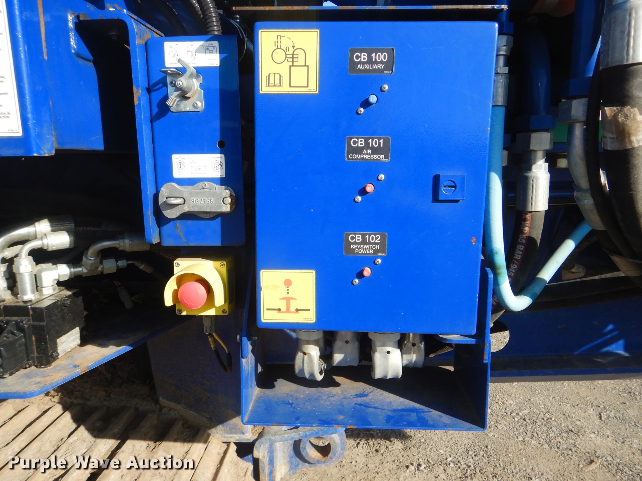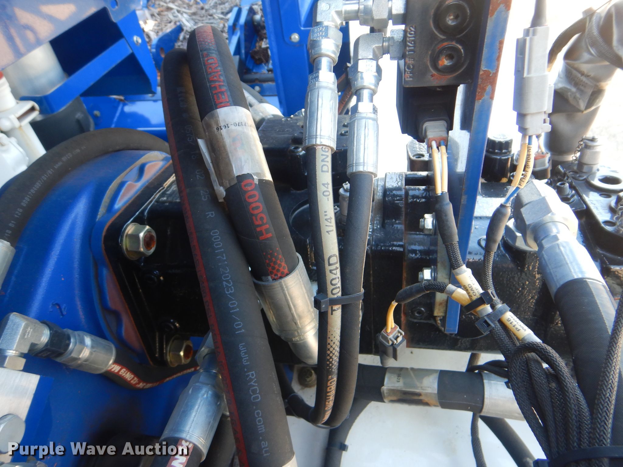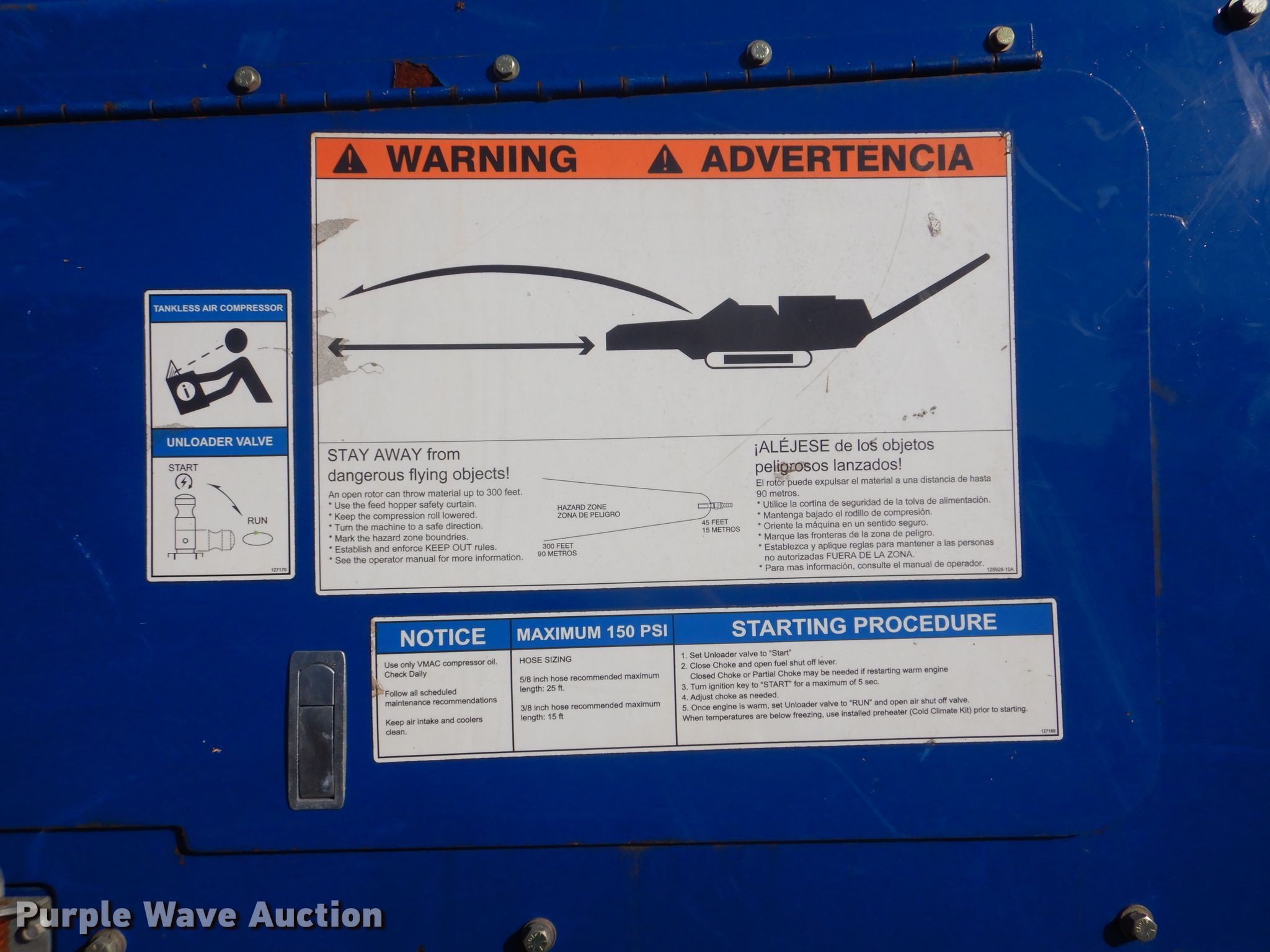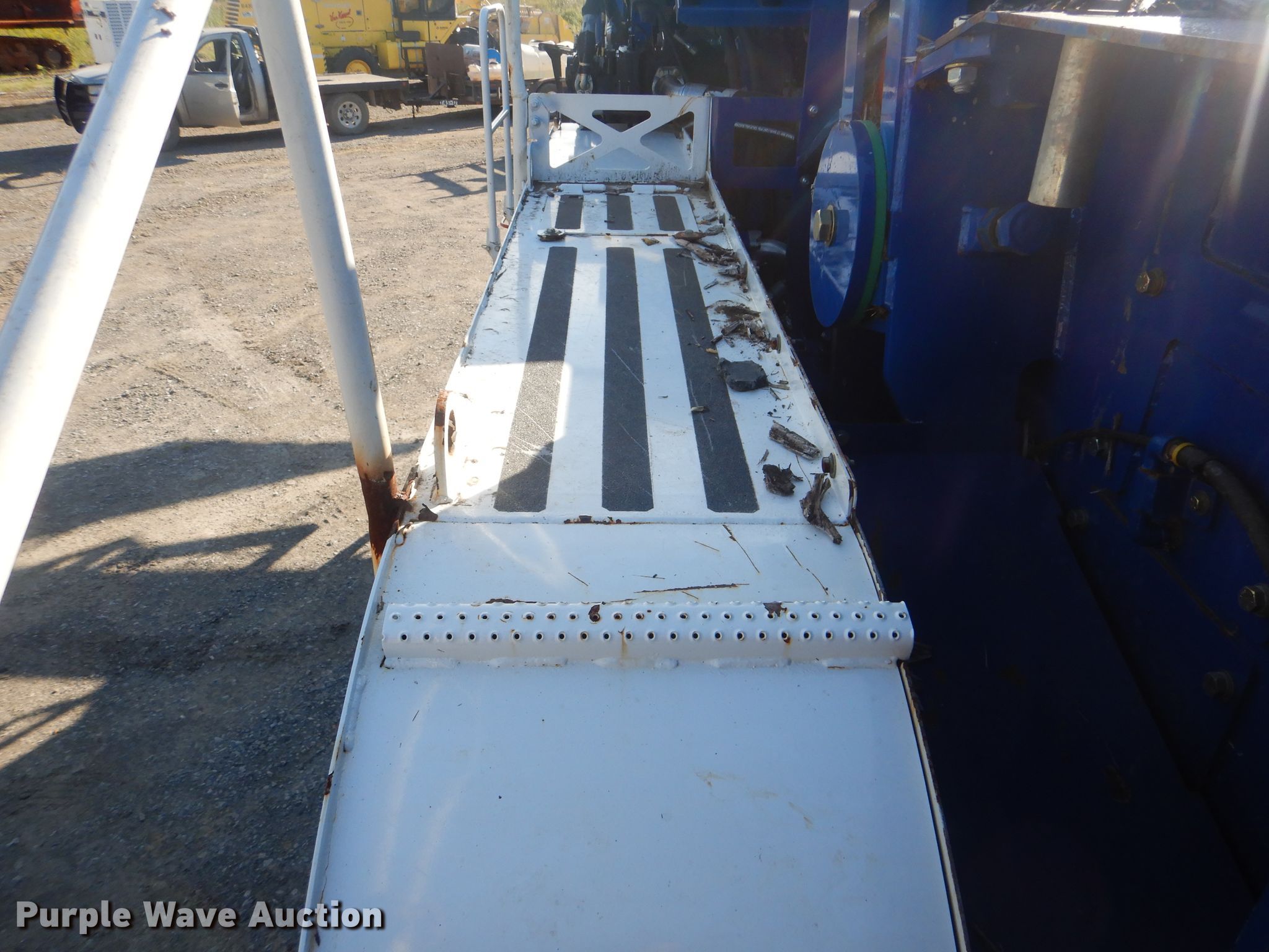 Purple Wave is selling a used Wood Grinder in Oklahoma. This item is a 2018 Peterson 5710D horizontal grinder with the following: 587 hours on meter, Caterpillar C27 27.0L 12 cylinder diesel engine, 57'10"L x 11'5"W x 16'10"H, 14'7"L x 5'W x 7'6"H hopper, 7 3/8" x 40" diameter rotor, (4) grates, 60"W discharge conveyor, Remote, 24"W triple grouser track pads, Serial 40D-195-2432