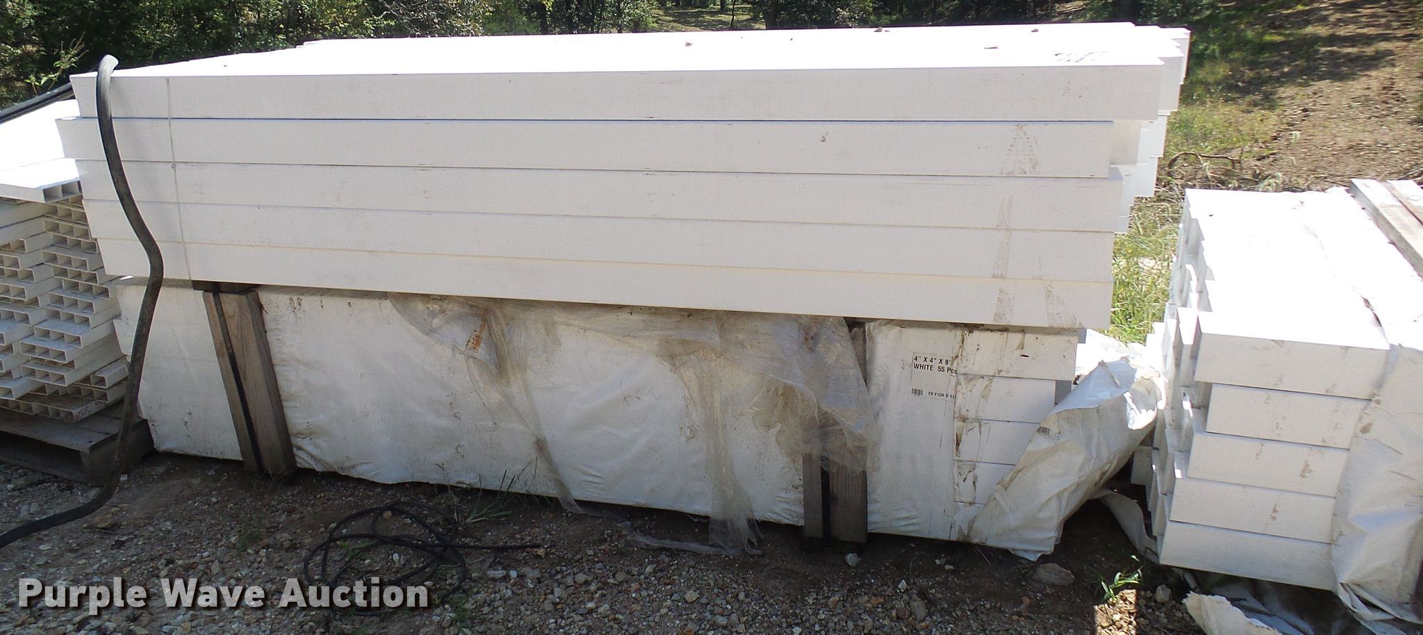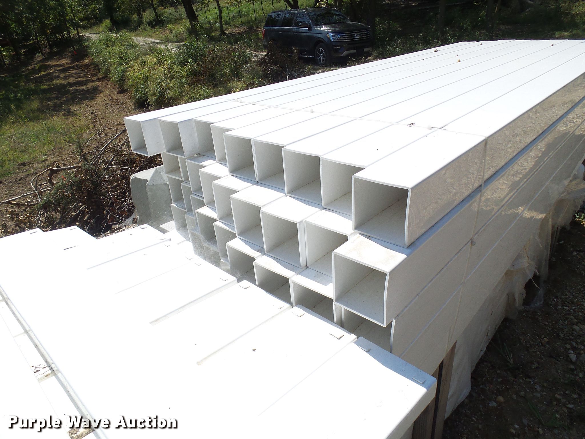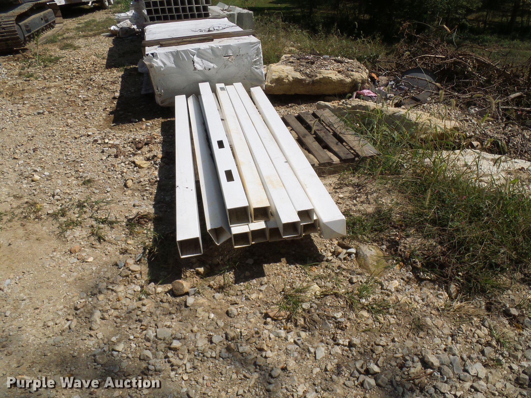 Purple Wave is selling a used Fencing Materials in Missouri. This item is a Vinyl fence supplies with the following: 4' x 4' x 8' posts, Caps and fence brackets
