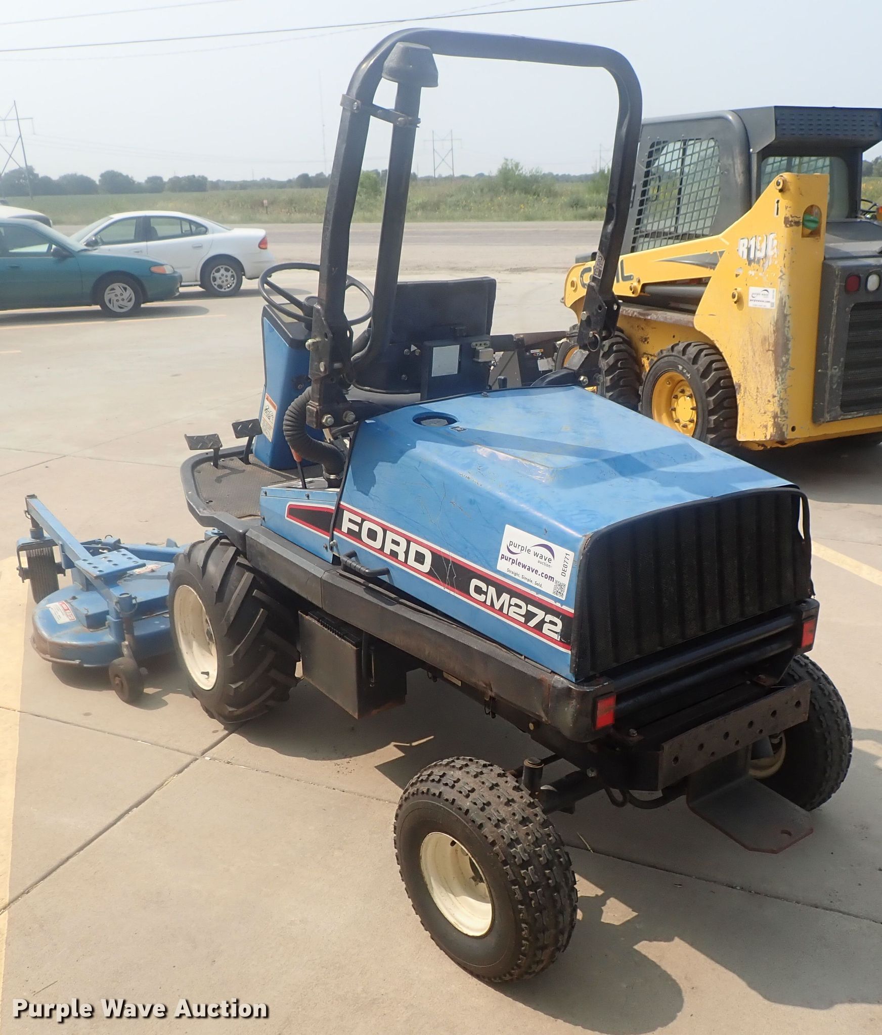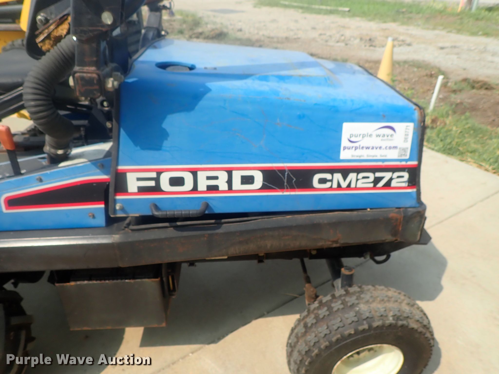 Purple Wave is selling a used Lawn Mower in Kansas. This item is a Ford CM272 lawn mower with the following: 924 hours on meter, 60" cut, Three cylinder diesel engine, Hydrostatic transmission, Hydraulic front deck lift, 23x10.50-12 front tires, 18x7.00-8 rear tires, Serial TB11831