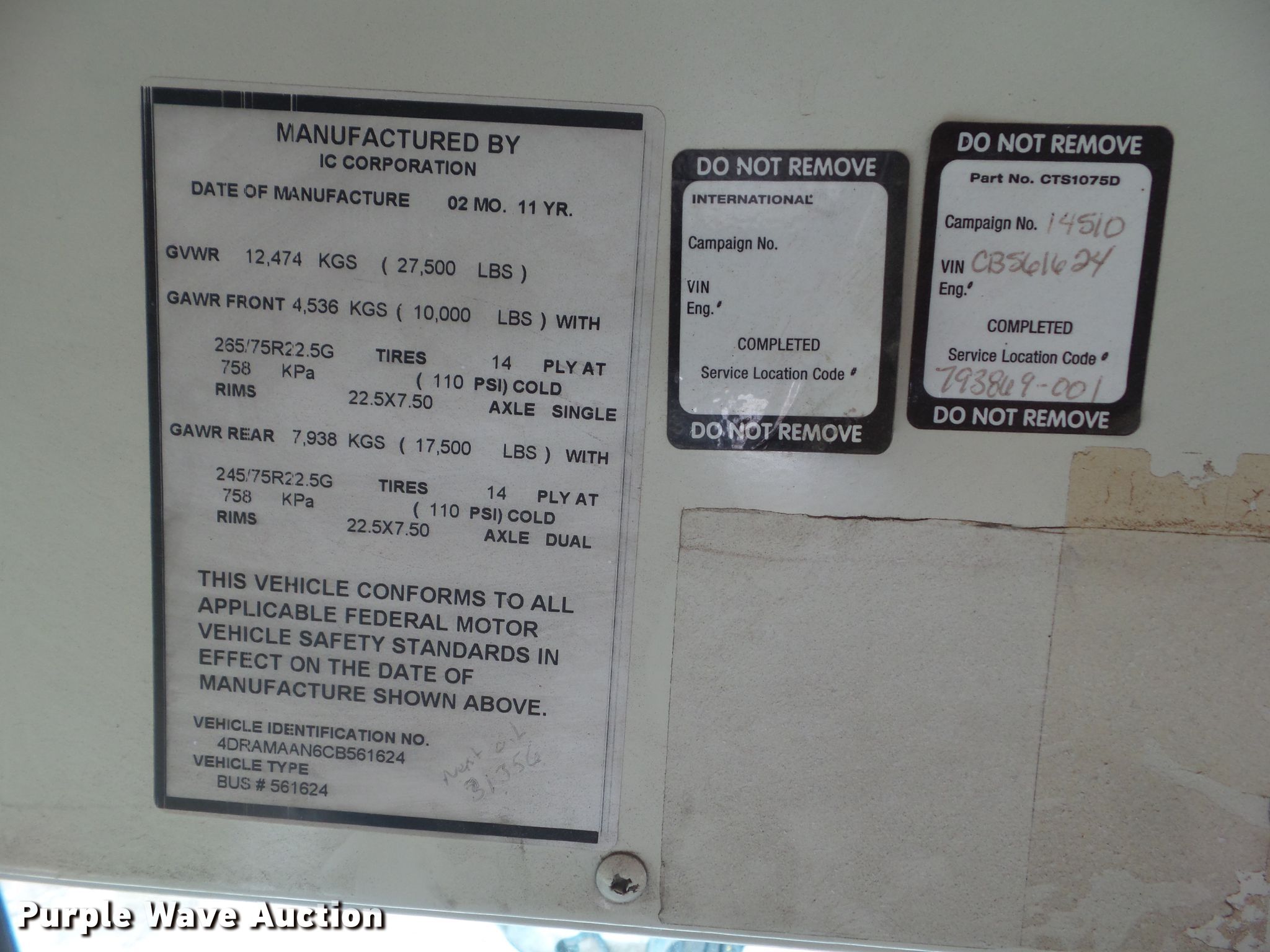 2012 International CE school bus. 340 miles on odometer. Engine International Maxxforce DT, Displacement: 7.6L, Cylinders: 6, Fuel type: Diesel. Transmission Automatic. Chassis Axles: Single, Suspension: Air, Brakes: Air, GVWR: 27,500 lbs, Wheelbase: 192". Interior AC, Heat, Heated mirrors, Passengers: 25. Tires Size: 11R22.5, Brand: Goodyear. Notes Windshield chipped or cracked. Oklahoma title. Mileage has not been verified. Odometer discrepancy will be marked on the title. Title distribution may be delayed up to 14 days from verification of funds. 4DRAMAAN6CB561624. Nielsen Automotive. 602 Market St. Audubon, IA 50025