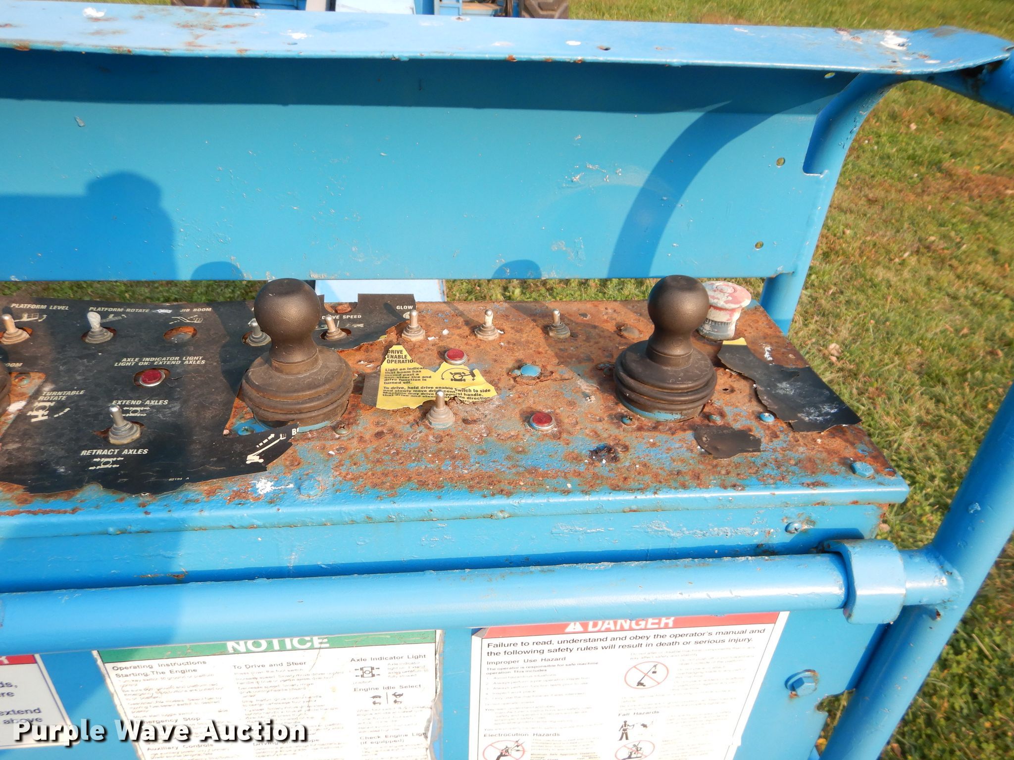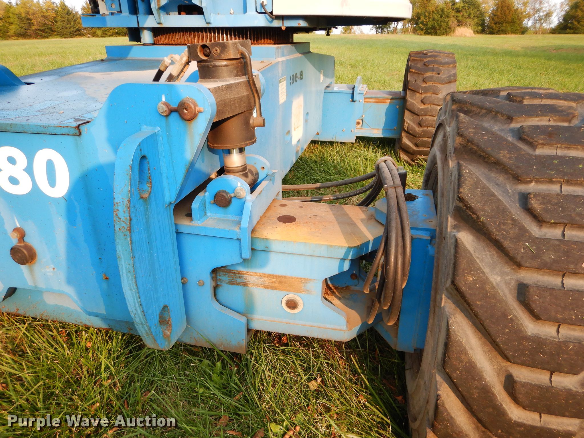2005 Genie S80 boom lift. 1,793 hours on meter, Serial: S8005-4458. Engine Deutz BF4L2011, Cylinders: 4, Fuel type: Diesel, HP: 77. Chassis Four wheel drive. Operational Rough terrain, Maximum lift capacity: 500 lbs, Maximum reach length: 71' 11", Maximum lift height: 80', Hydraulic outriggers, Hydraulic extendable jib, Hydraulic leveling, Platform: 96" L x 36" W, Controls: Platform, Ground, Platform rotation: Hydraulic, Safety alarm. Tires Tire size: 385/65-12. ACDC investments. 1310 S Lakeshore Dr. Olathe, KS 66061
