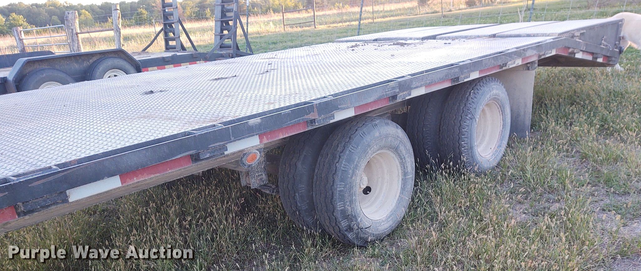 2007 Derby Trailer Technologies equipment trailer. 26'4"L x 102"W overall, 21'2"L deck, 5' tail length, (4) ramps, Dual leg landing gear, Spring suspension, Electric brakes, Tandem axle, Steel wheels, 225/75R14.5 tires, GVWR 24,000 lbs. Kansas title. Title distribution may be delayed up to 14 days from verification of funds. 1D9GU26217D608005. Poor Boy Ag. Douglass, KS 67039