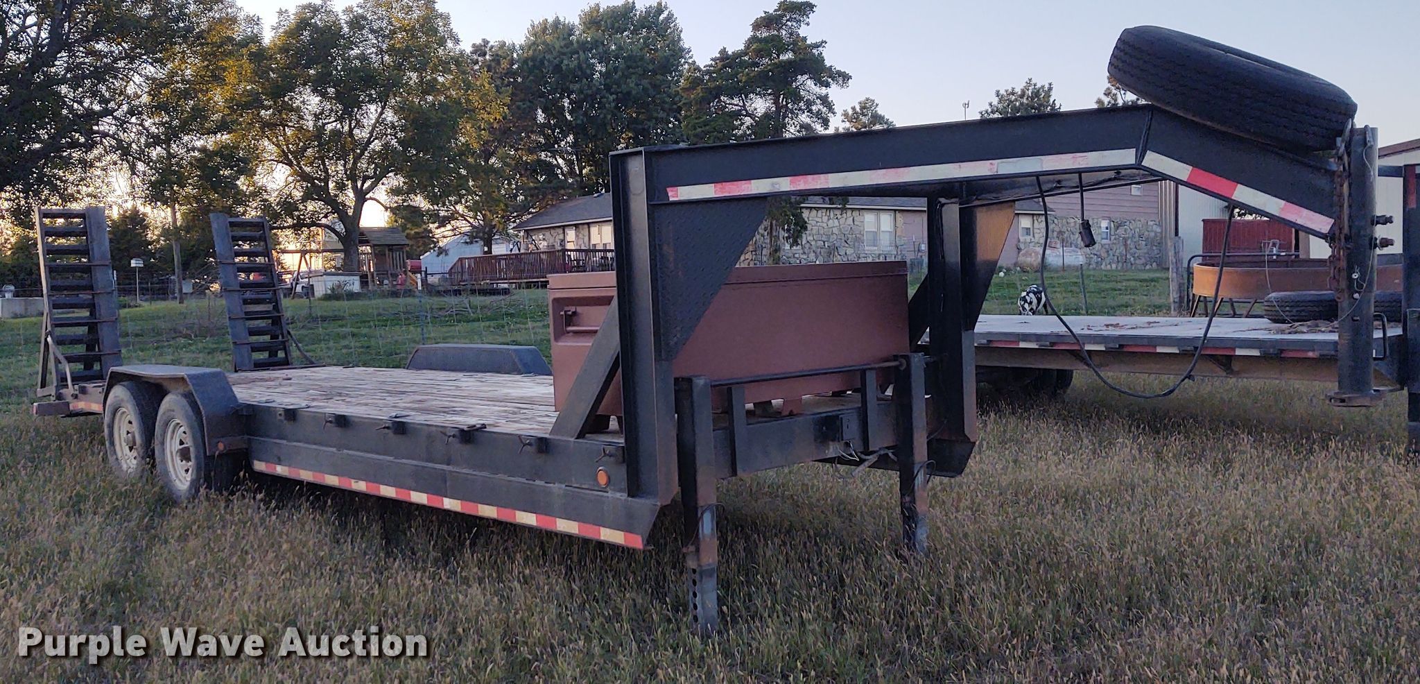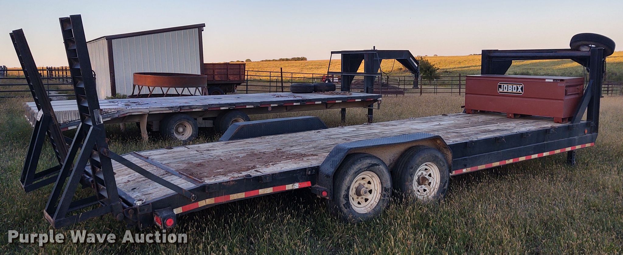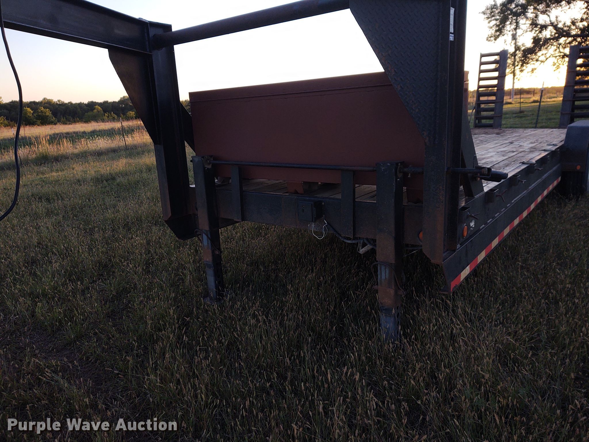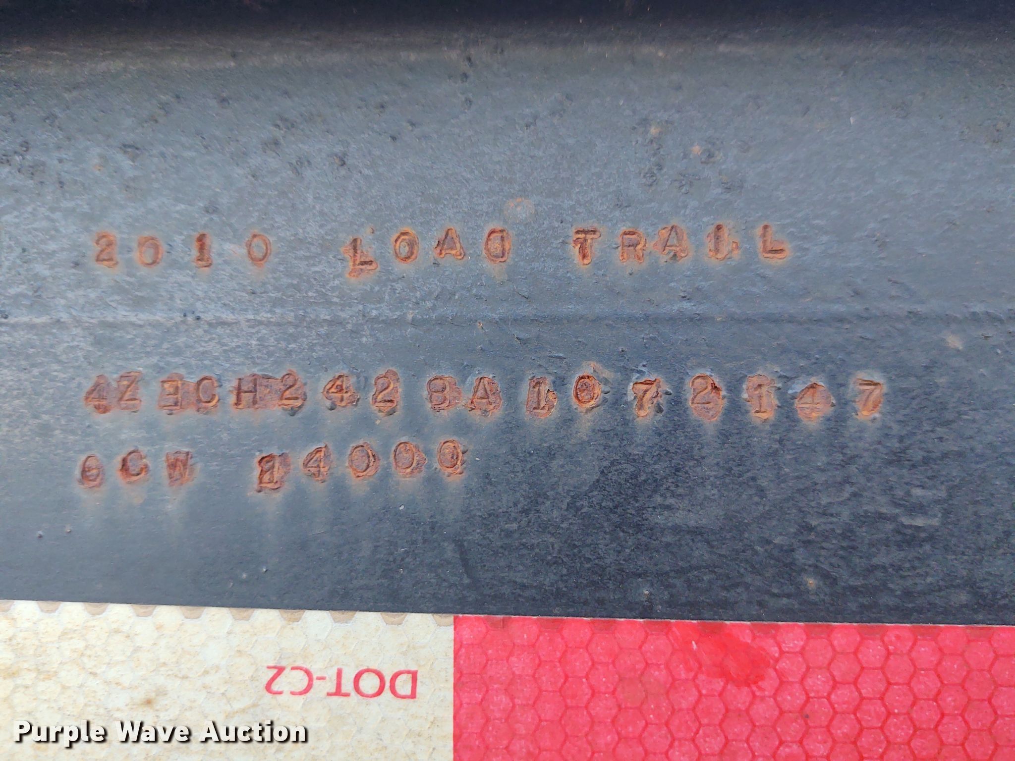 Purple Wave is selling a used Equip. Trailer in Kansas. This item is a 2010 Load Trail equipment trailer with the following: 102"W overall, 24'L x 87"W deck, Wood deck, Ramps, Dual leg landing gear, Spring suspension, Electric brakes, Tandem axle, Steel wheels, 235/85R16 tires, Jobox not included