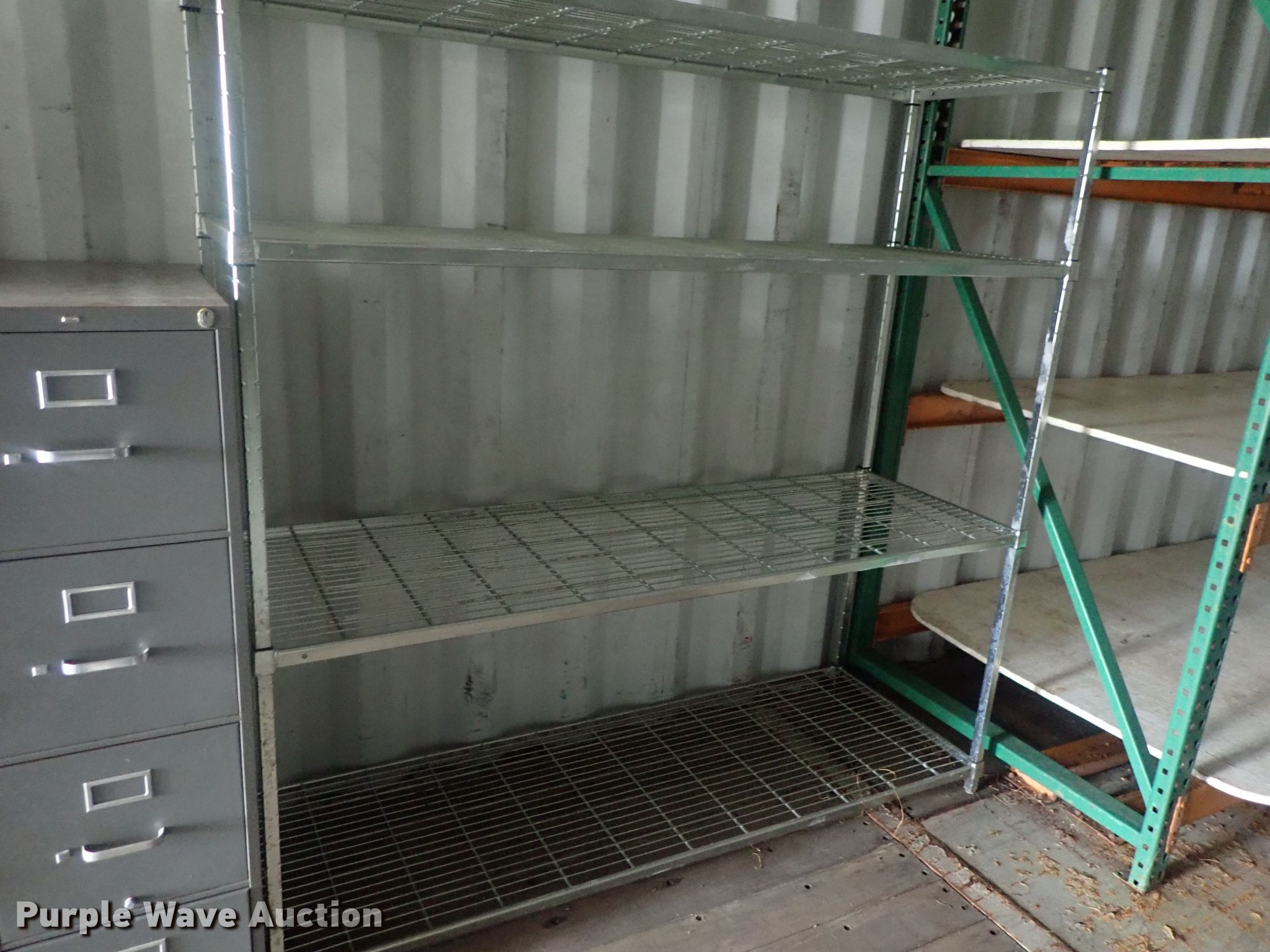 Purple Wave is selling a used Storage or Shipping Container in Kansas. This item is a Shipping container with the following: 40'L x 8'W x 100"H, Wood floor, Swing doors, Shelving, File cabinet, Table, Contents included