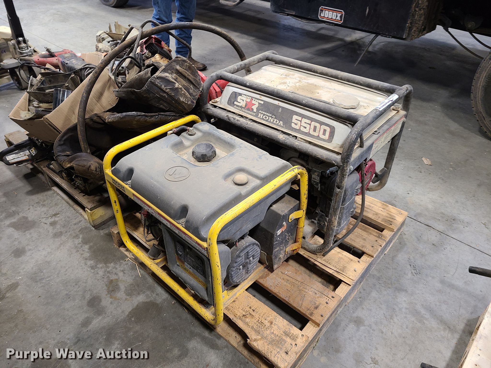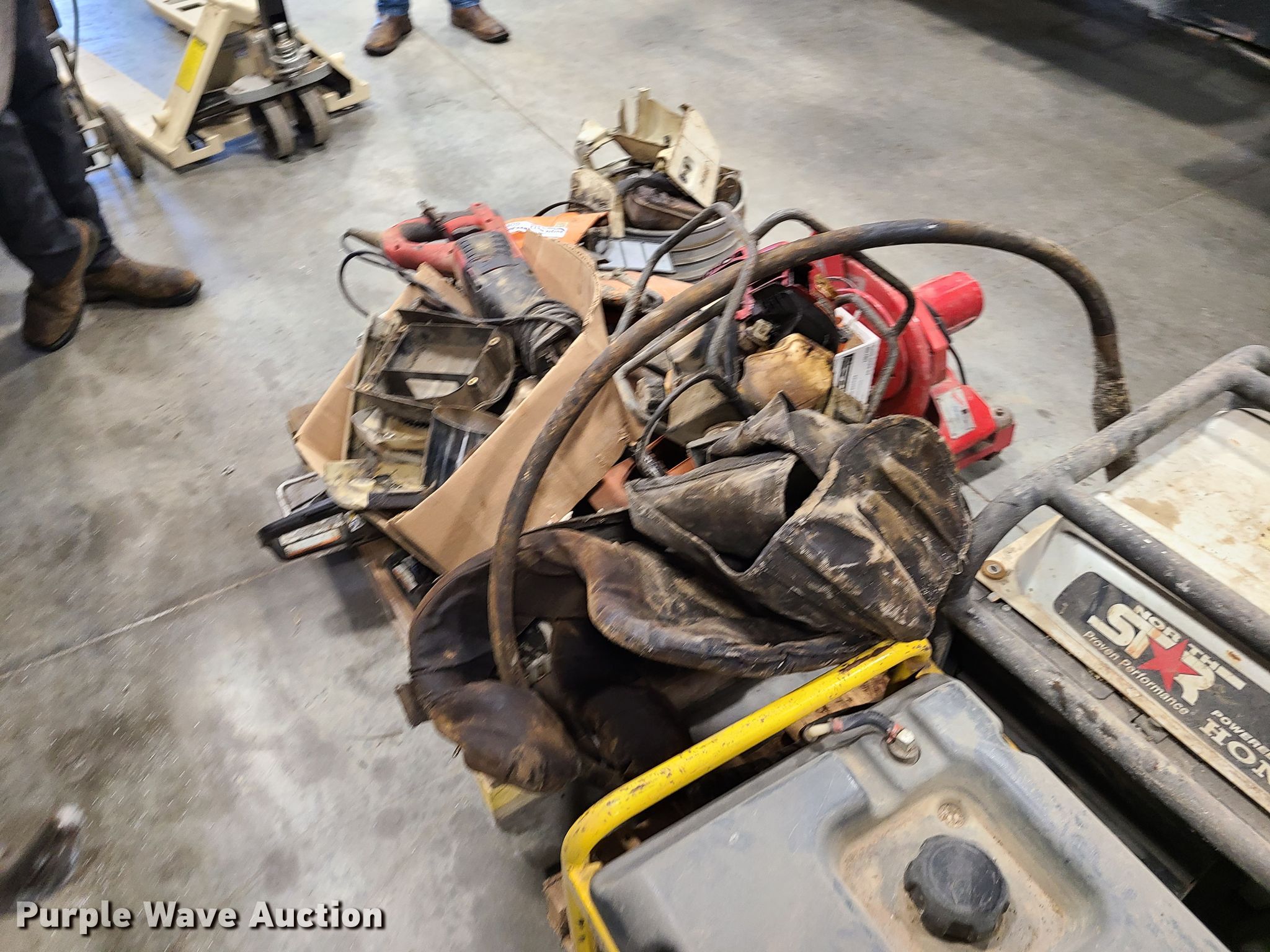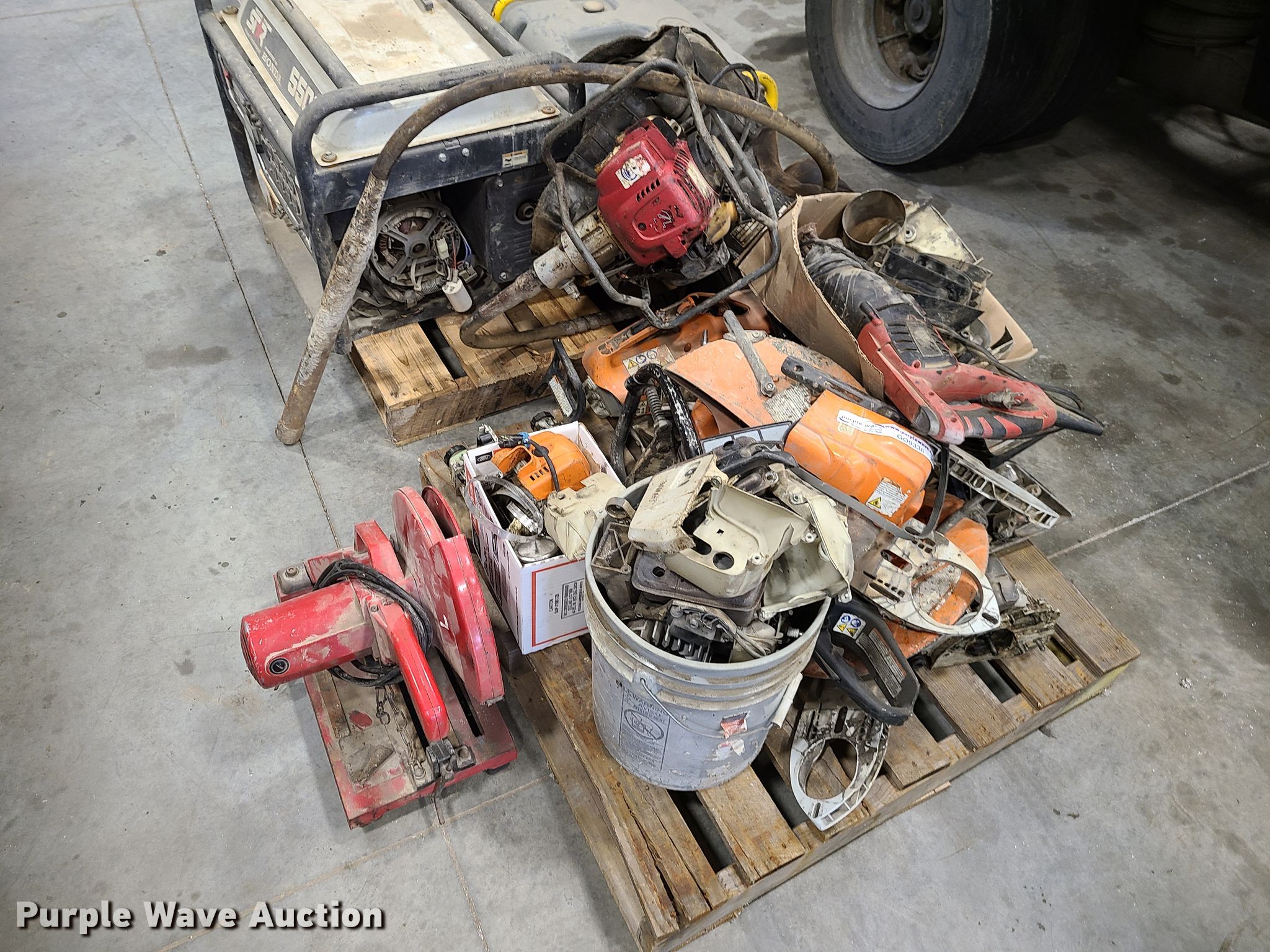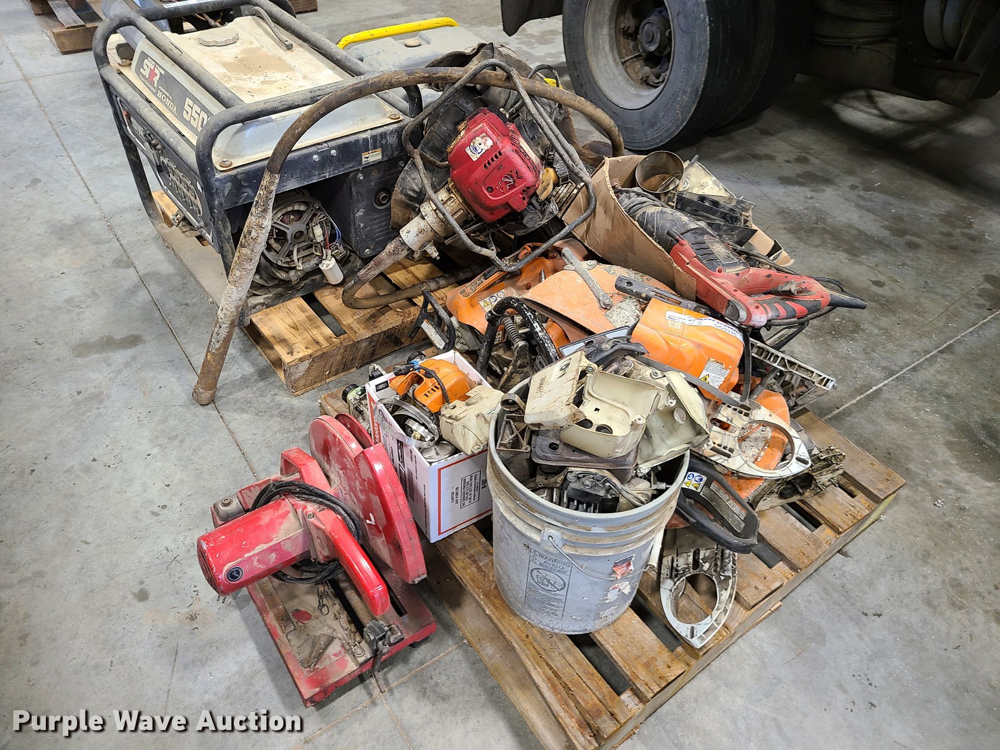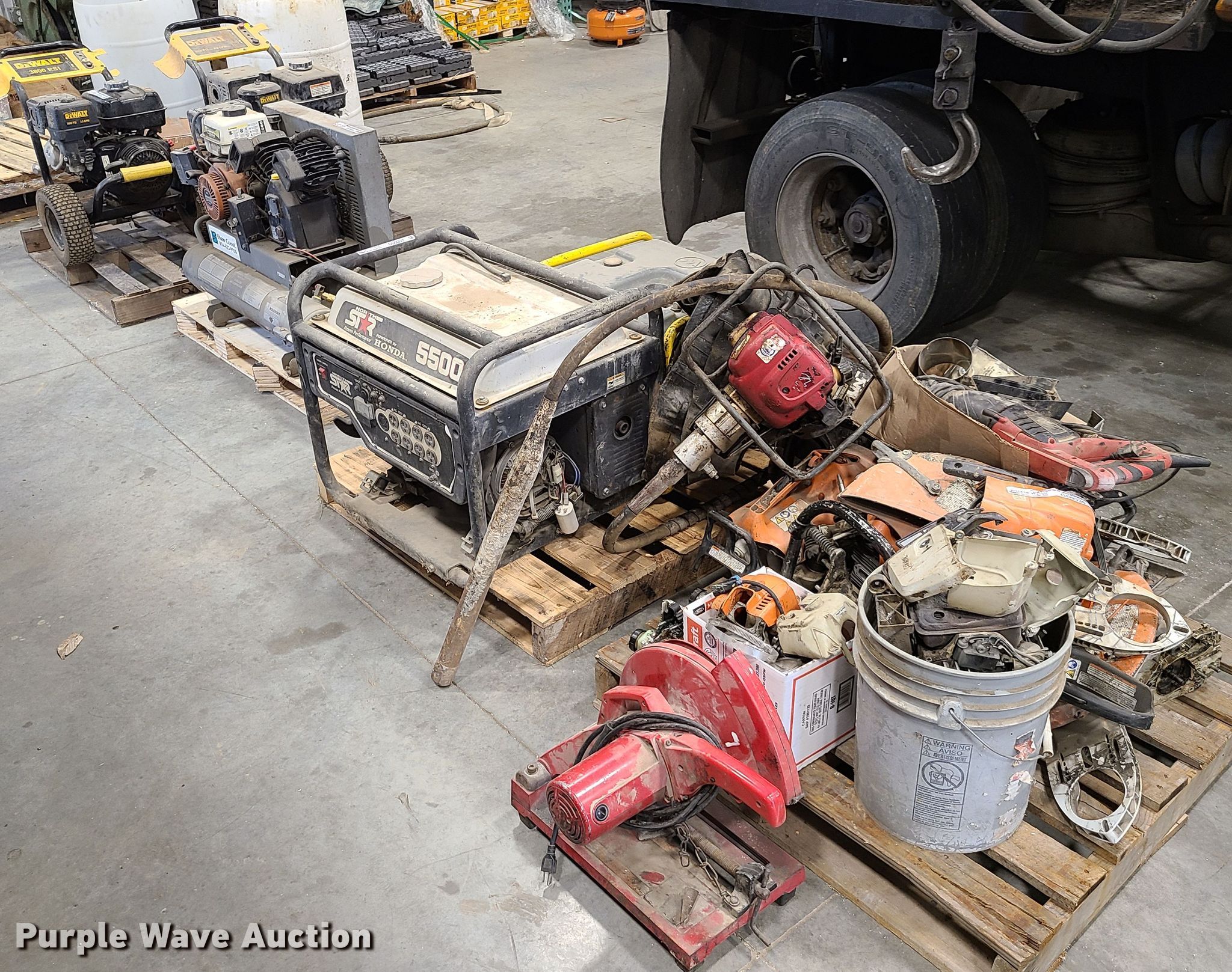 Purple Wave is selling a used Tools in Missouri. This item is a Tools with the following: (2) generators, (2) pressure washers, Concrete vibrator, Stihl chainsaws, Parts may be missing, Unknown operating condition