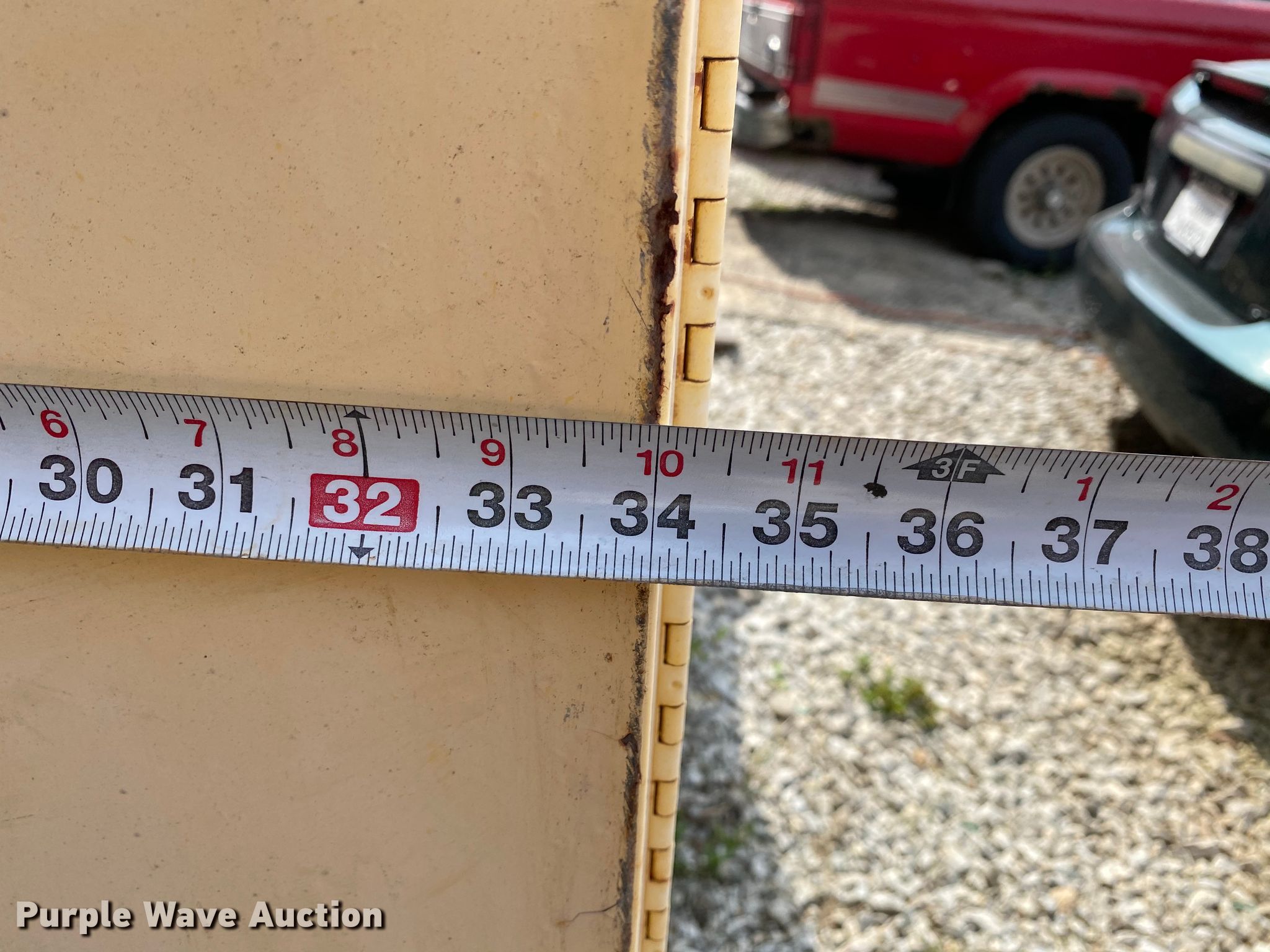 Purple Wave is selling a used Shelving and Storage in Missouri. This item is a Justrite combustible liquid storage cabinet with the following: 59"L x 34"W x 65"H, 416 liter capacity, (2) 55 gallon drums, Serial 24760