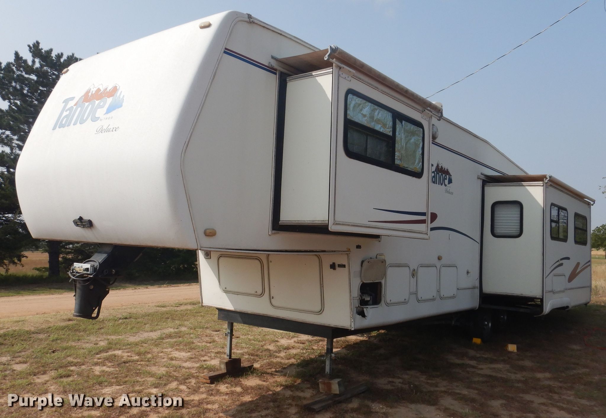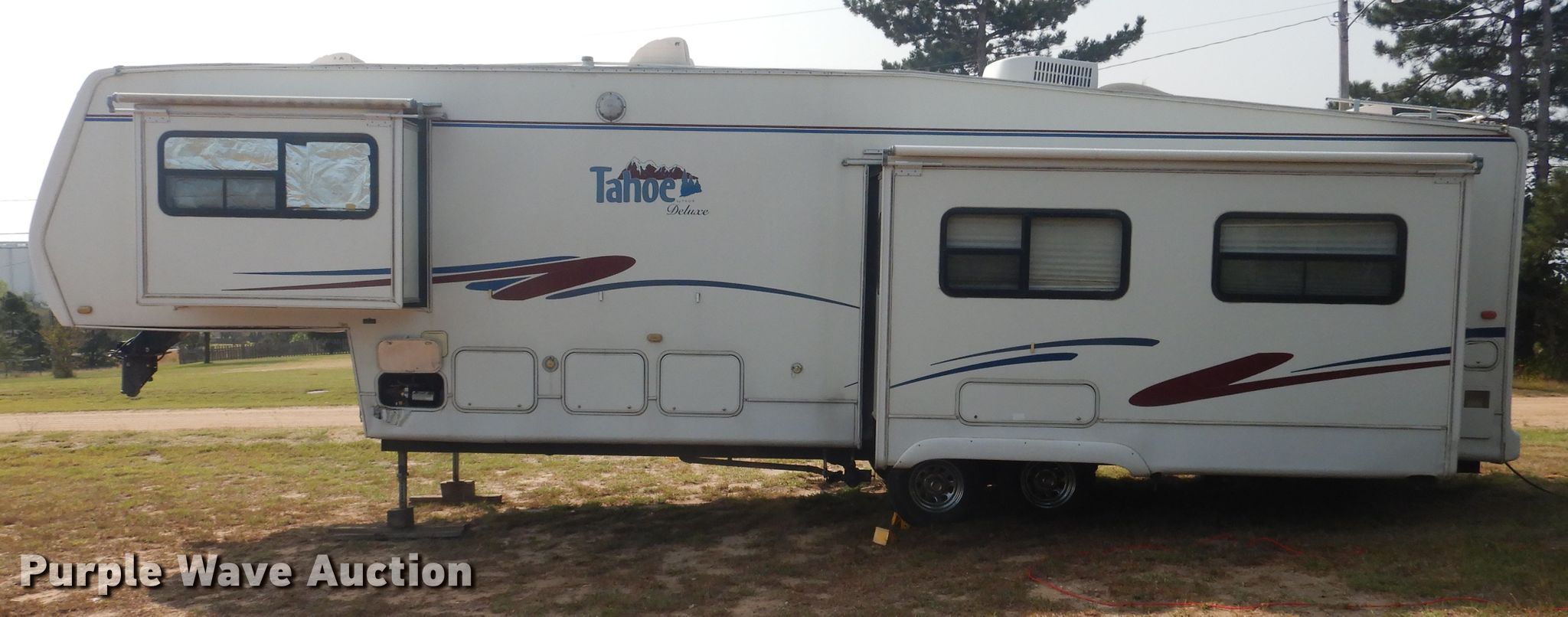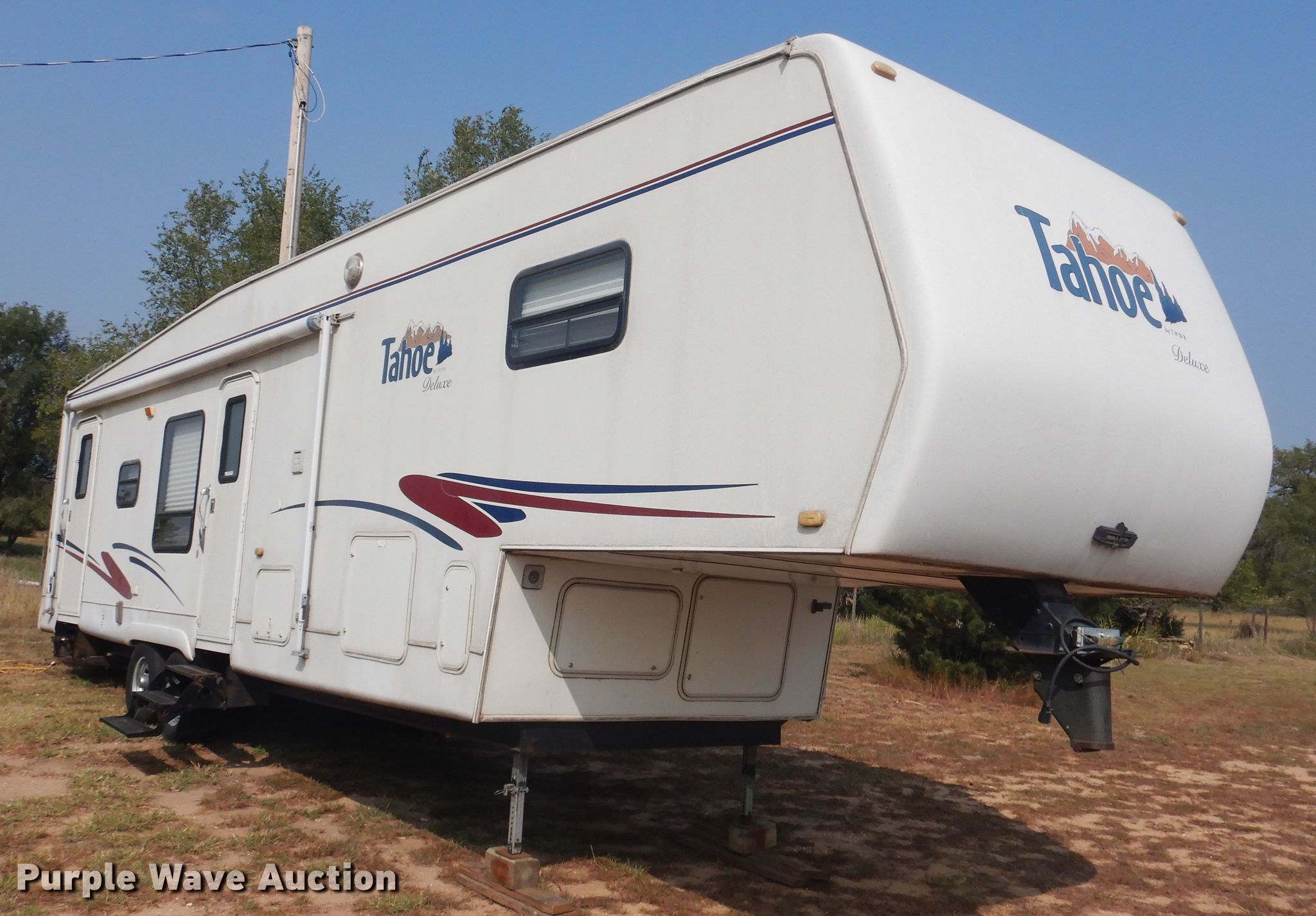 1999 Thor Tahoe camper. Camper length: 38'. Chassis Axles: Tandem, Suspension: Spring, Brakes: Electric. Interior Kitchen: Sink, Dishwasher, Refrigerator, Freezer, Microwave, Oven, Stove: Propane, Living room: Pull Out Couch, Bathroom, Beds: 2, Bed type: Queen, Sound system, AC units: 2. Operational Slide outs: 2, Awnings: 1, Type of awnings: Electric. Tires Tire size: 225/75R15. Notes Slide-out switch issues. Kansas title. 4XTFS3328XC115357. Coldwater, KS 67029