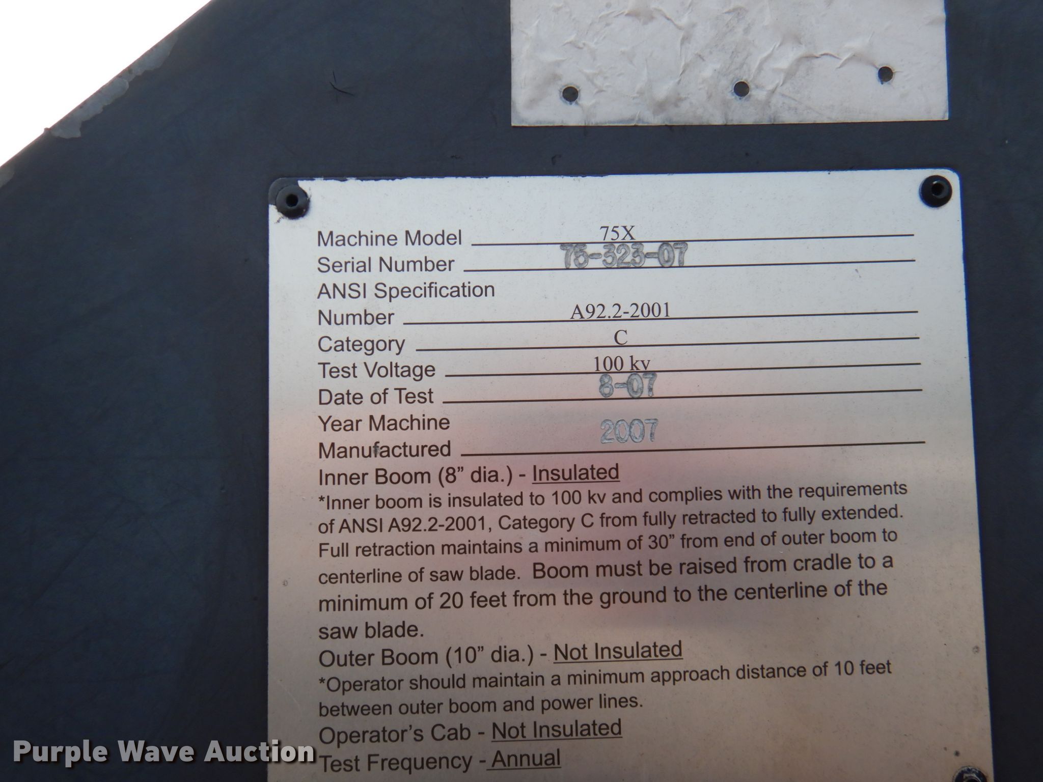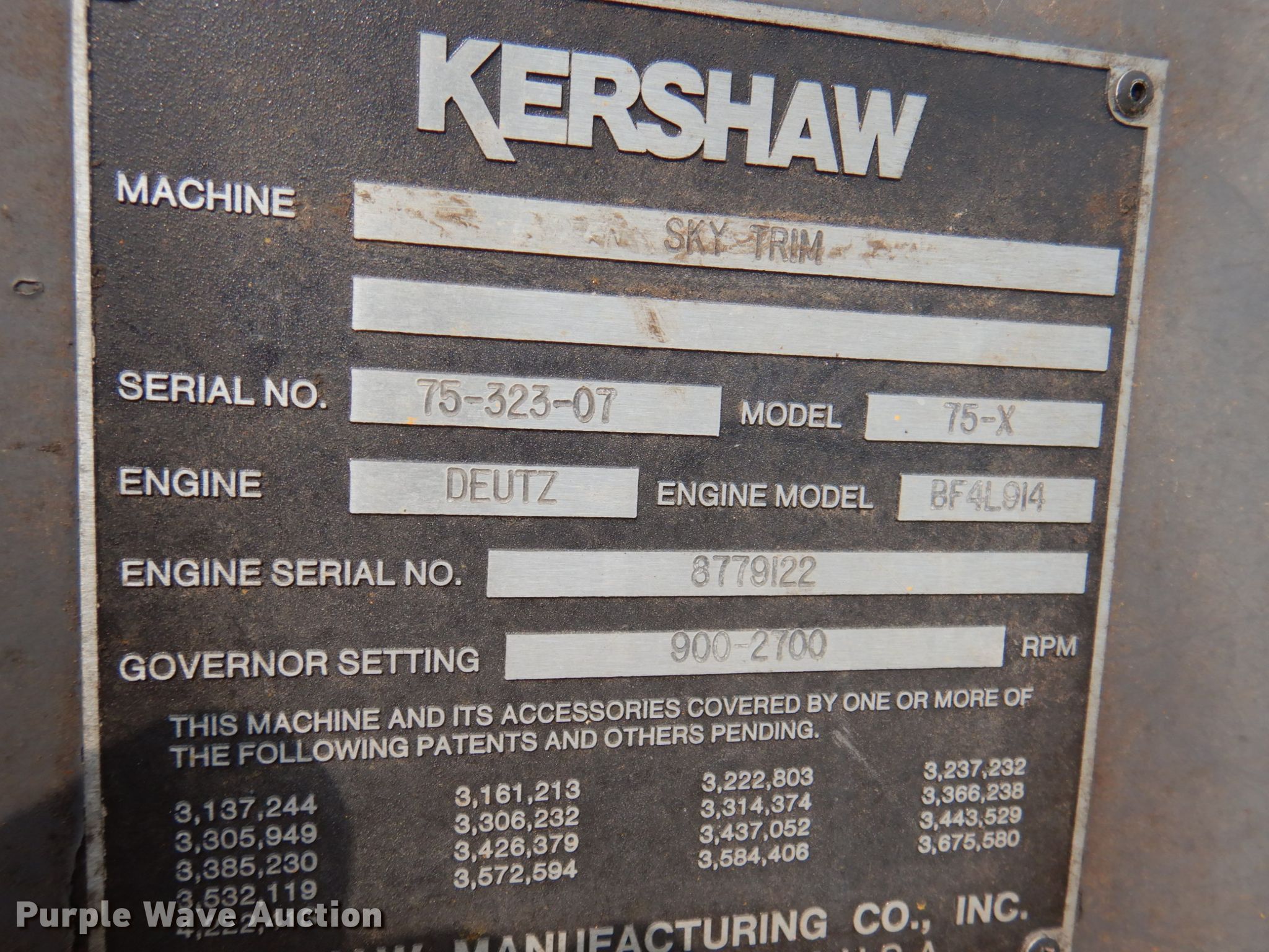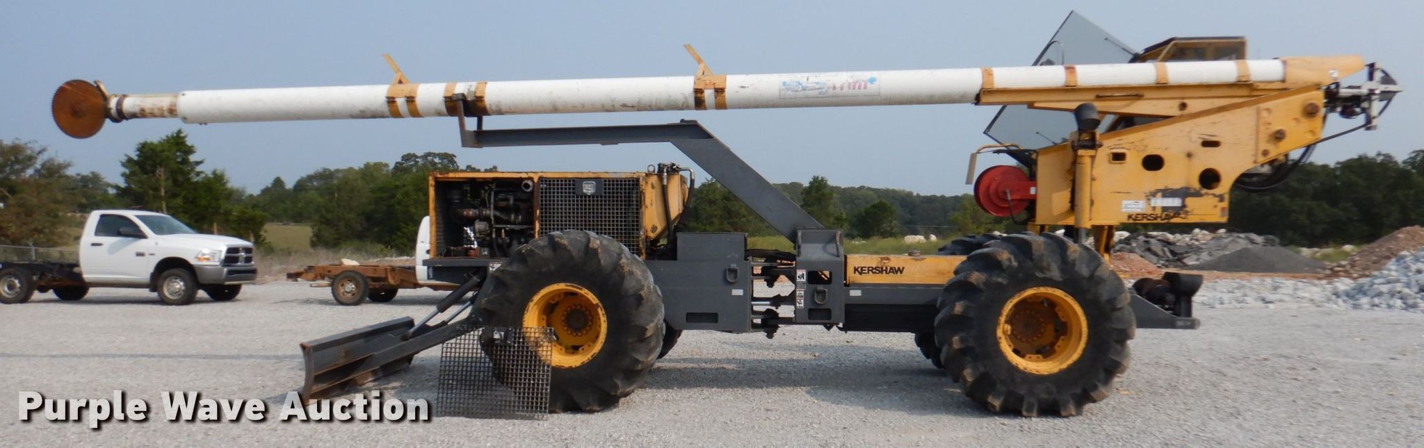 Purple Wave is selling a used Other Industrial or Business in Arkansas. This item is a 2007 Kershaw 75X trim saw with the following: 9,836 hours on meter, Deutz BFL914 4.31L four cylinder diesel engine, 96 HP, Hydrostatic transmission, Enclosed cab, AC and heat, Winch, Push blade, 75' maximum height capacity, 28L-26 tires