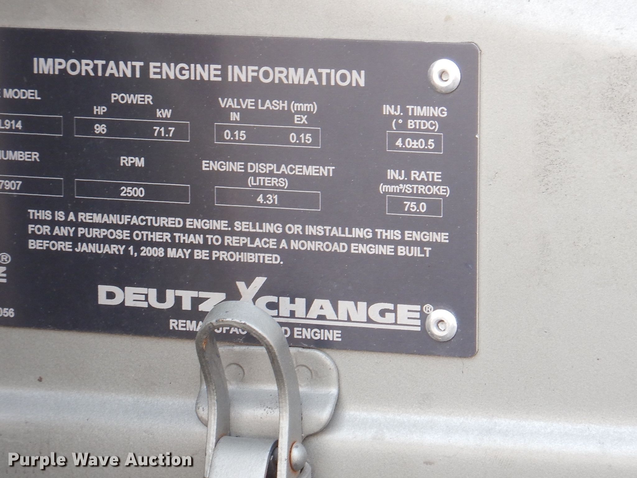 - Deutz BFL914 4.31L four cylinder diesel engine
