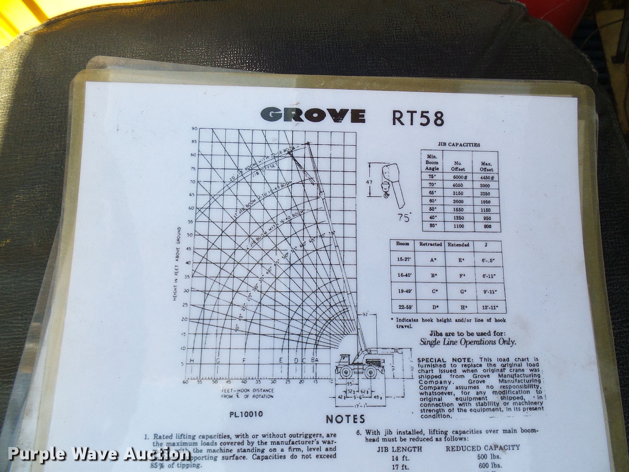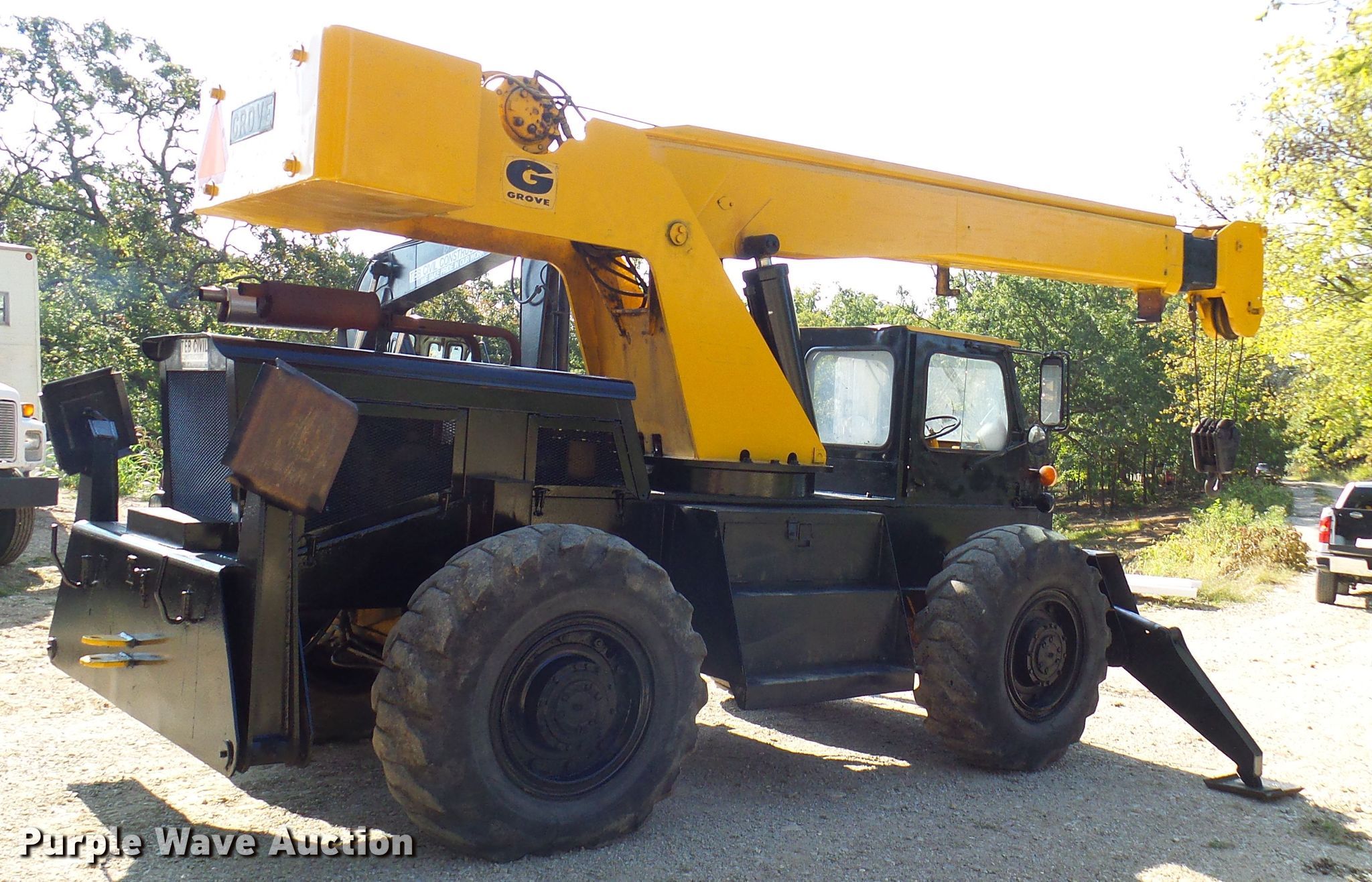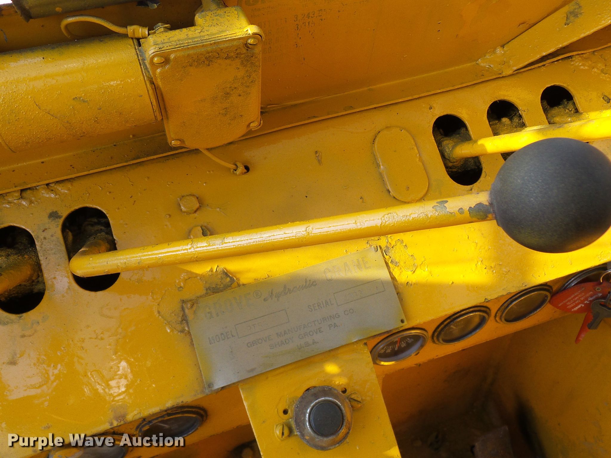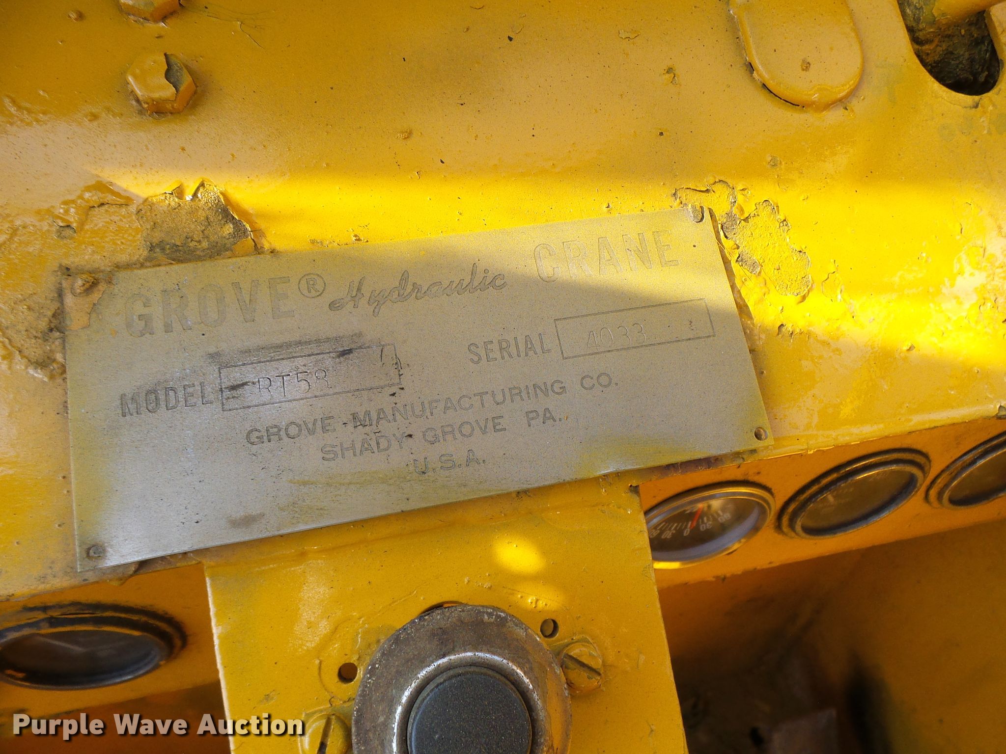 Purple Wave is selling a used Rough or All Terrain Crane in Missouri. This item is a Grove RT58 crane with the following: 2,428 hours on meter, Serial: 4033