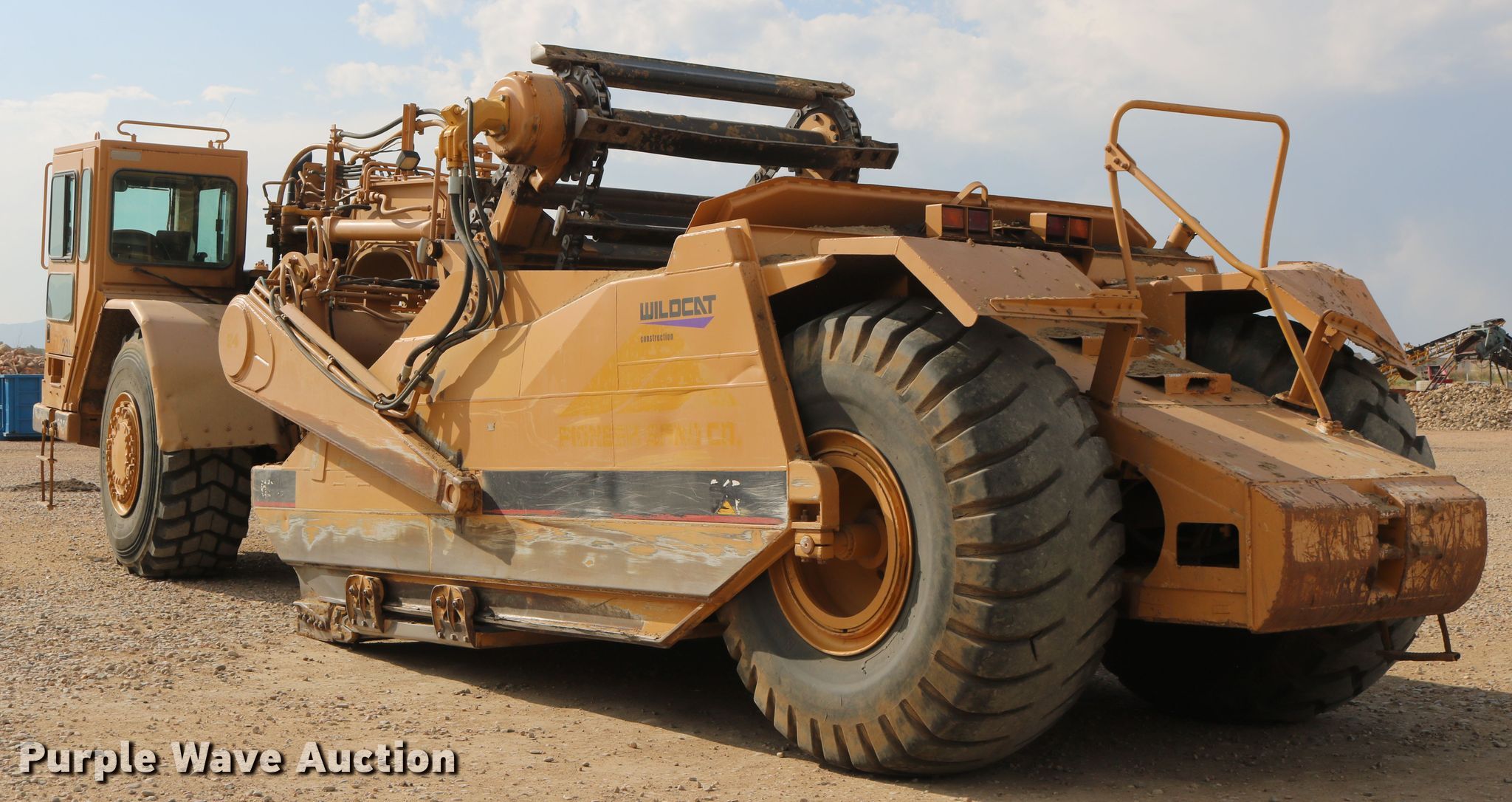 1997 Caterpillar 623F elevating scraper. 6,509 hours on meter, ECM hours: 25,248, Serial: 6BK00391, Unit #: 76.23L. Engine Caterpillar 3406, Serial: 41Z04324, Displacement: 14.6L, Cylinders: 6, Fuel type: Diesel, HP: 383. Transmission Powershift, 8F - 2R. Chassis Brakes: Air. Operators station Enclosed cab, AC, Heat. Operational Bowl capacity: 23.1 cu.yd., Cushion hitch, Elevator reverse, Hydraulic lift, Scraper controls: Lever controls. Tires Size: 29.5R29. Notes Unknown operating condition of AC. Wildcat Construction. 8335 Vollmer Rd. Colorado Springs, CO 80908