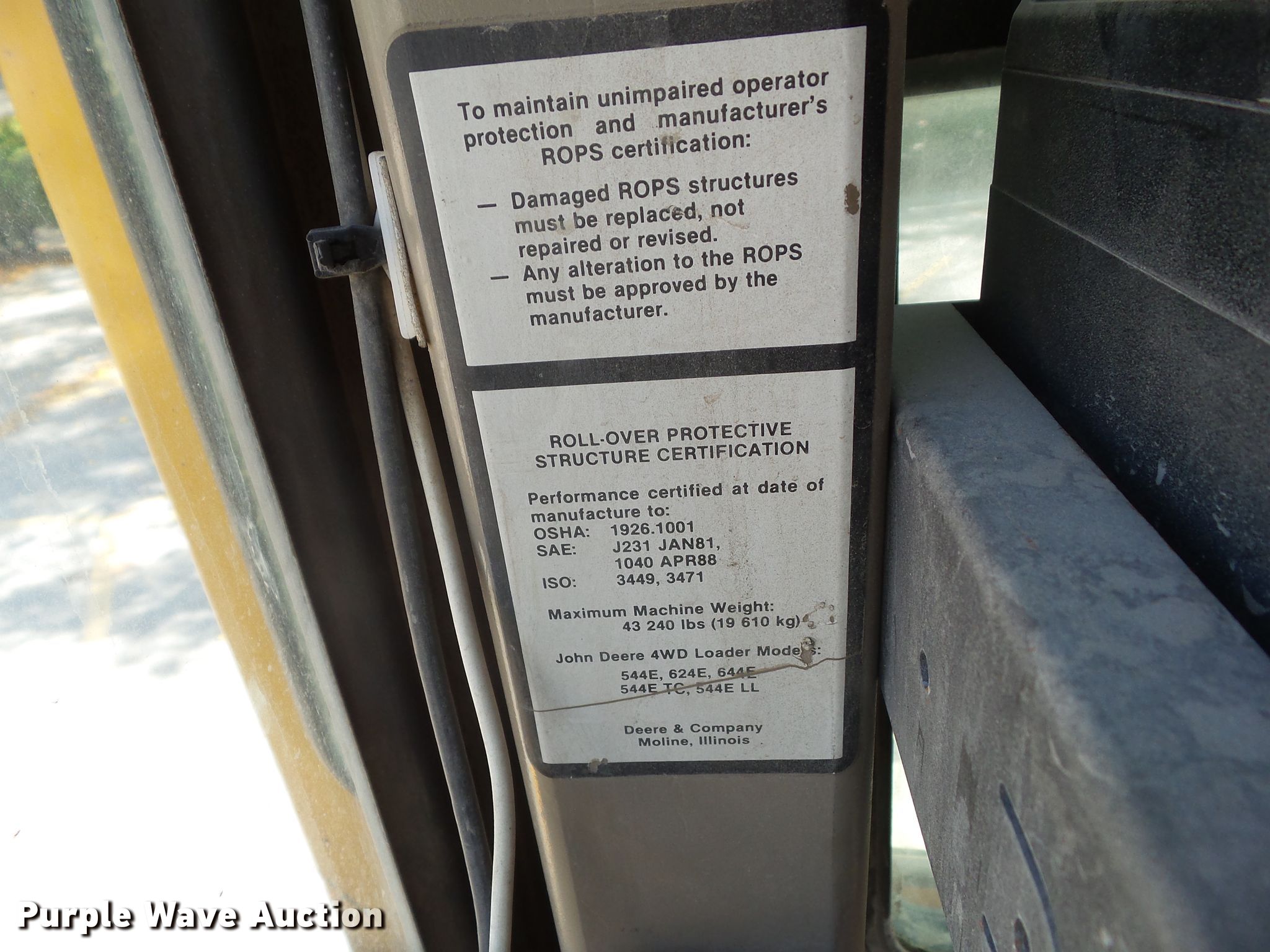 Purple Wave is selling a used Wheel Loader in Iowa. This item is a 1991 John Deere 544E wheel loader with the following: 6,411 hours on meter, Serial: DW544EB534692