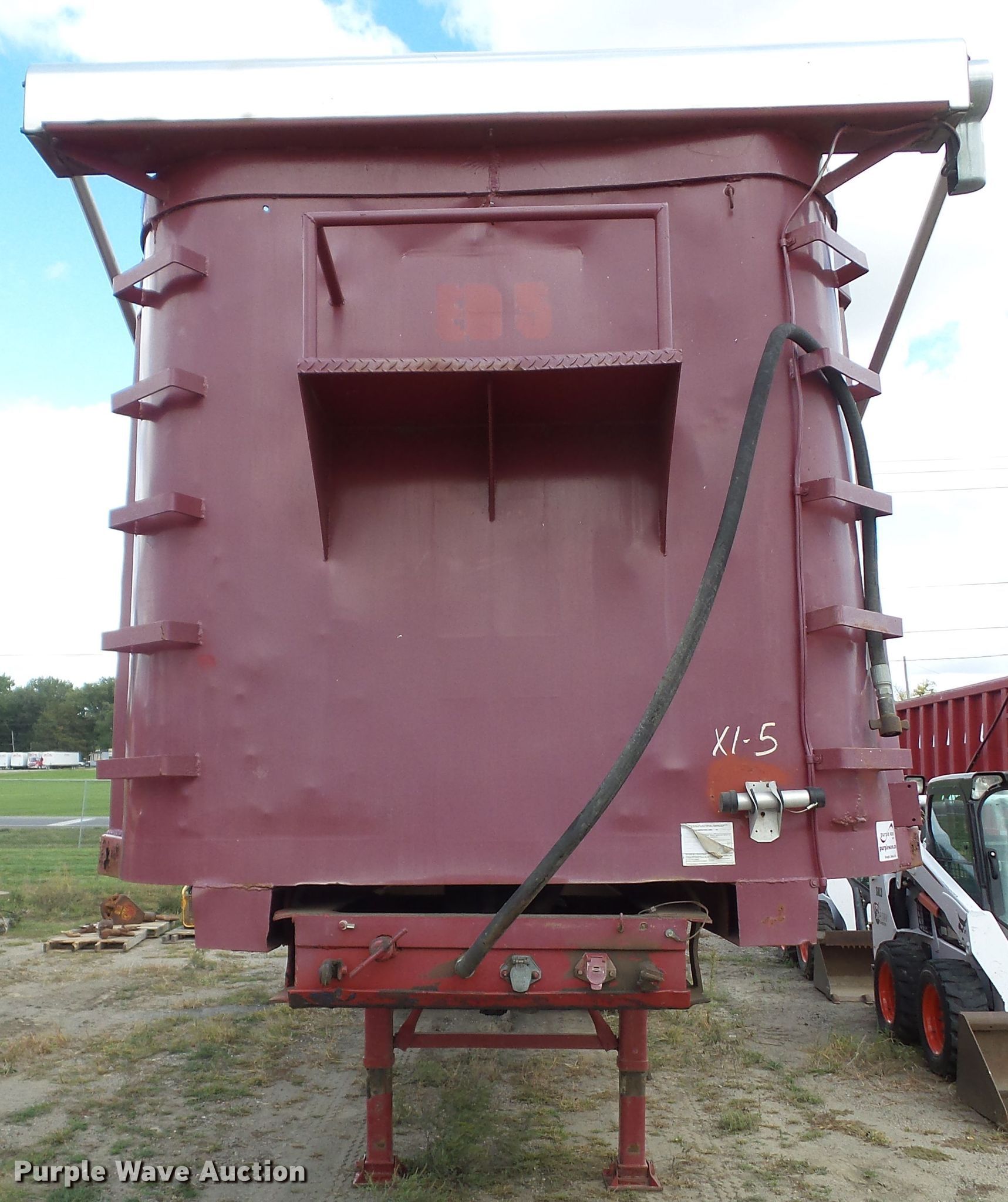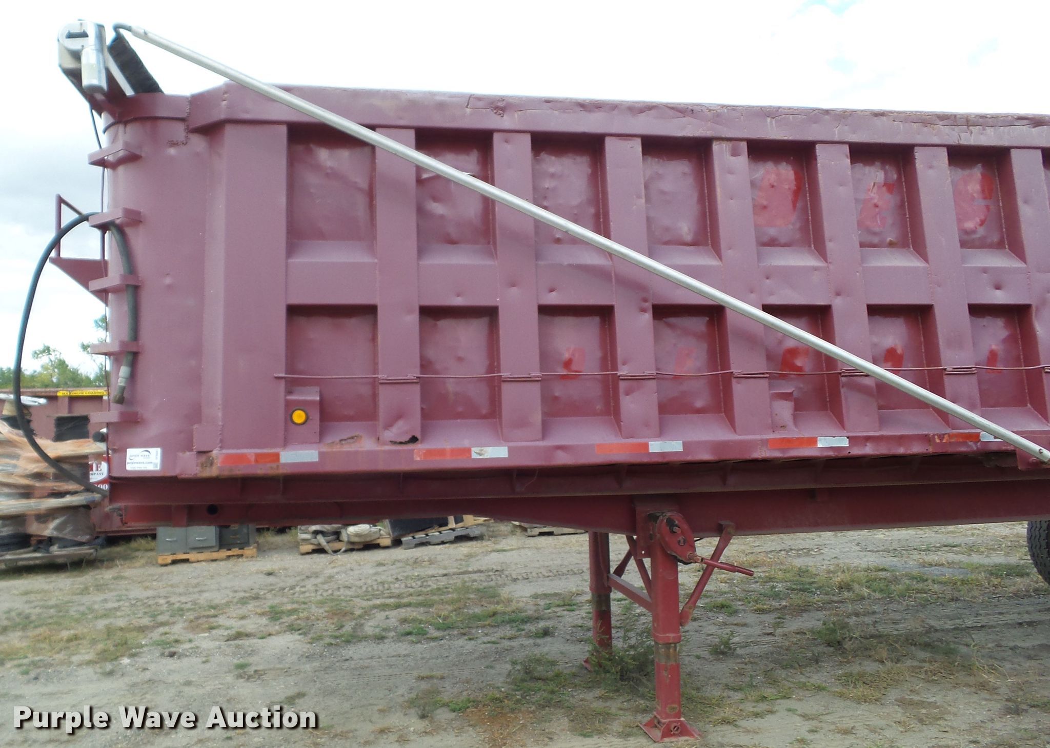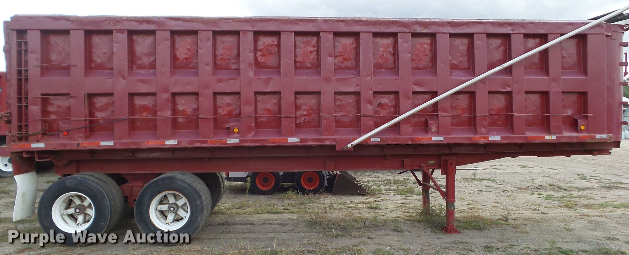 Purple Wave is selling a used End Dump Rock Trailer in Iowa. This item is a 1977 Steco ST end dump trailer with the following: 33'L x 8'W, 6'4" side height, 4'10" floor height, Single cylinder hoist, Manual operated end gate, Electric tarp, Steel construction, Dual leg landing gear, Spring suspension, Air brakes, Tandem axle, Steel wheels, 11R22.5 tires