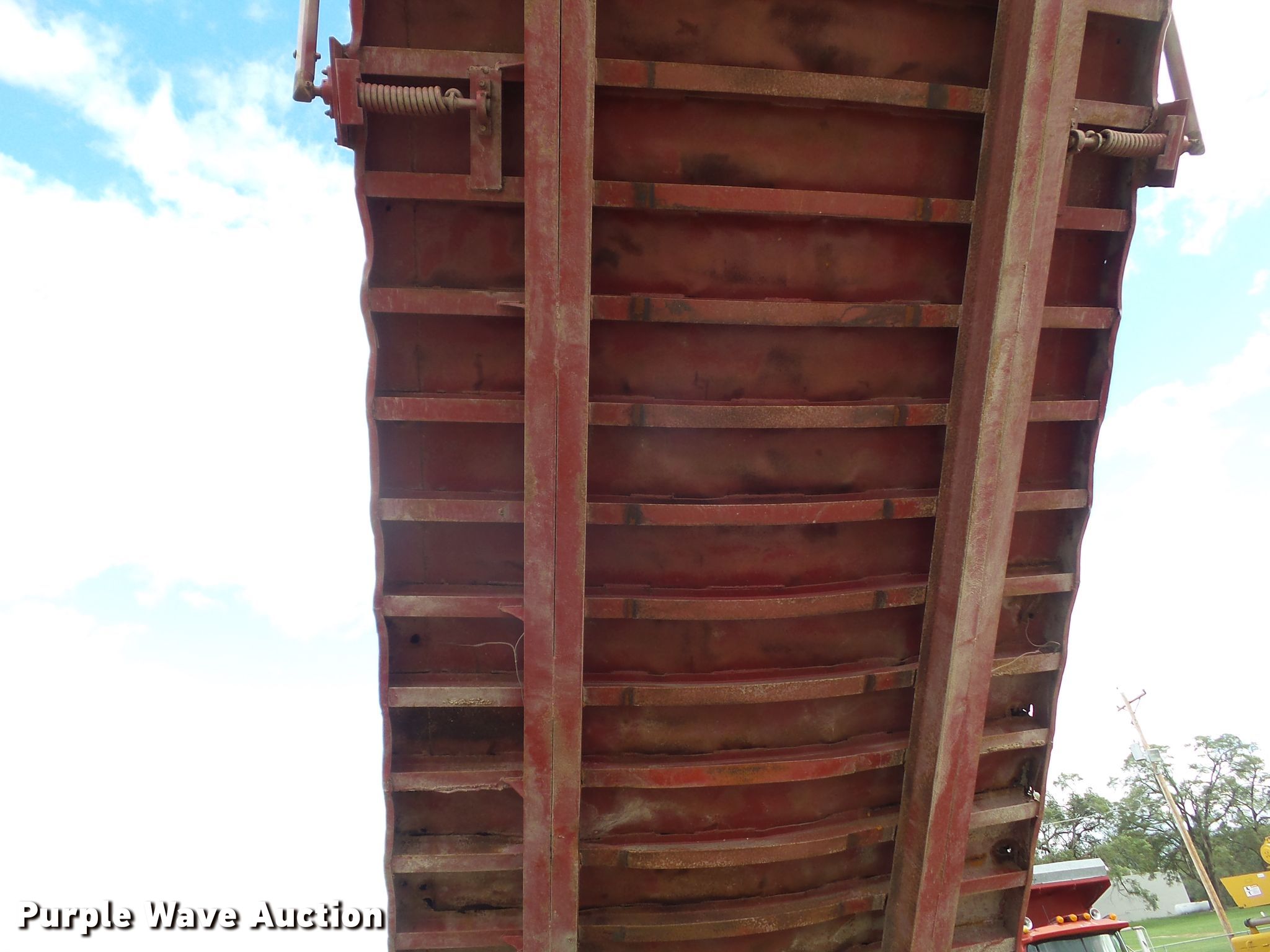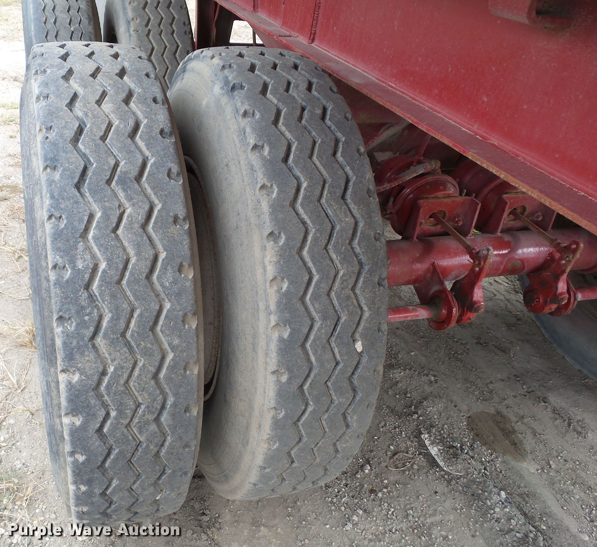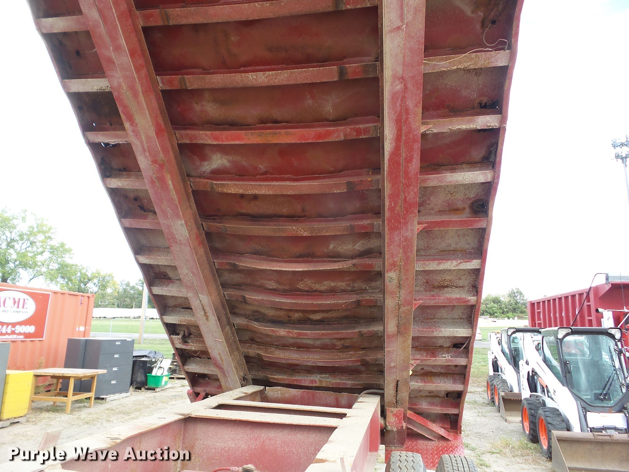 Purple Wave is selling a used End Dump Rock Trailer in Iowa. This item is a 1977 Steco ST end dump trailer with the following: 33'L x 8'W, 6'4" side height, 4'10" floor height, Single cylinder hoist, Manual operated end gate, Electric tarp, Steel construction, Dual leg landing gear, Spring suspension, Air brakes, Tandem axle, Steel wheels, 11R22.5 tires